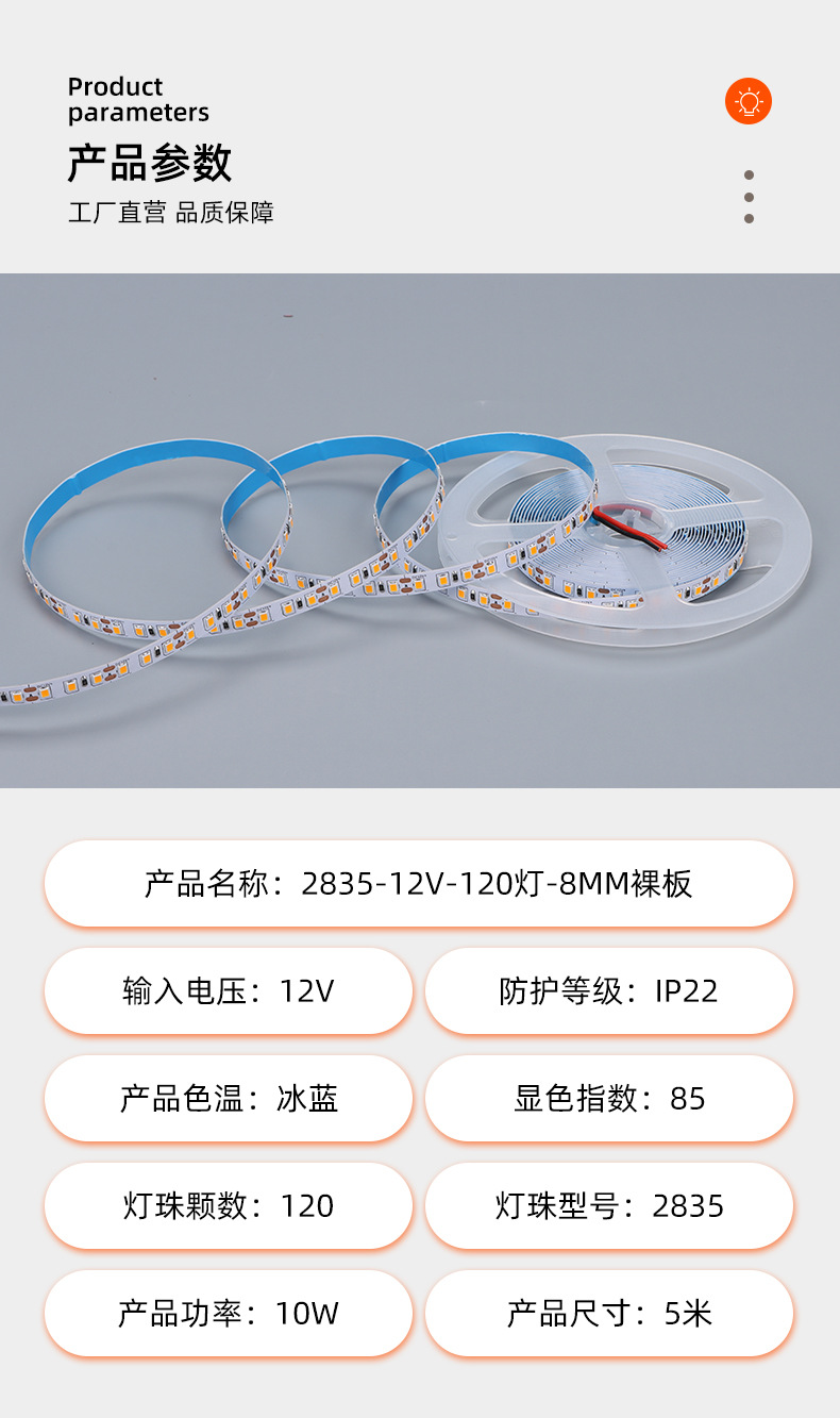 灯带裸板彩光120灯8mm氛围灯条低压12v高亮2835贴片LED灯带批发