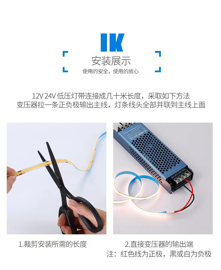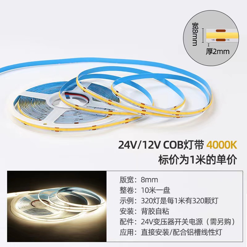爆款COB灯带批发12V24V320珠/米ledcob自粘背胶低压灯条LED发光条