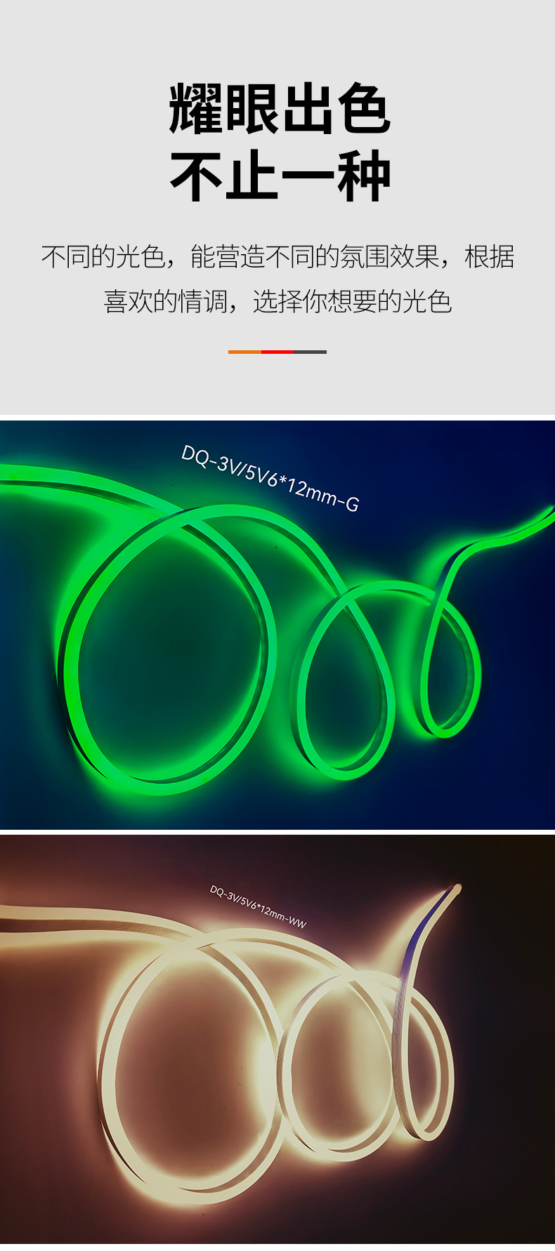 LED低压霓虹灯带 3V/5V柔性硅胶软灯条客厅家用工程防水霓虹灯带
