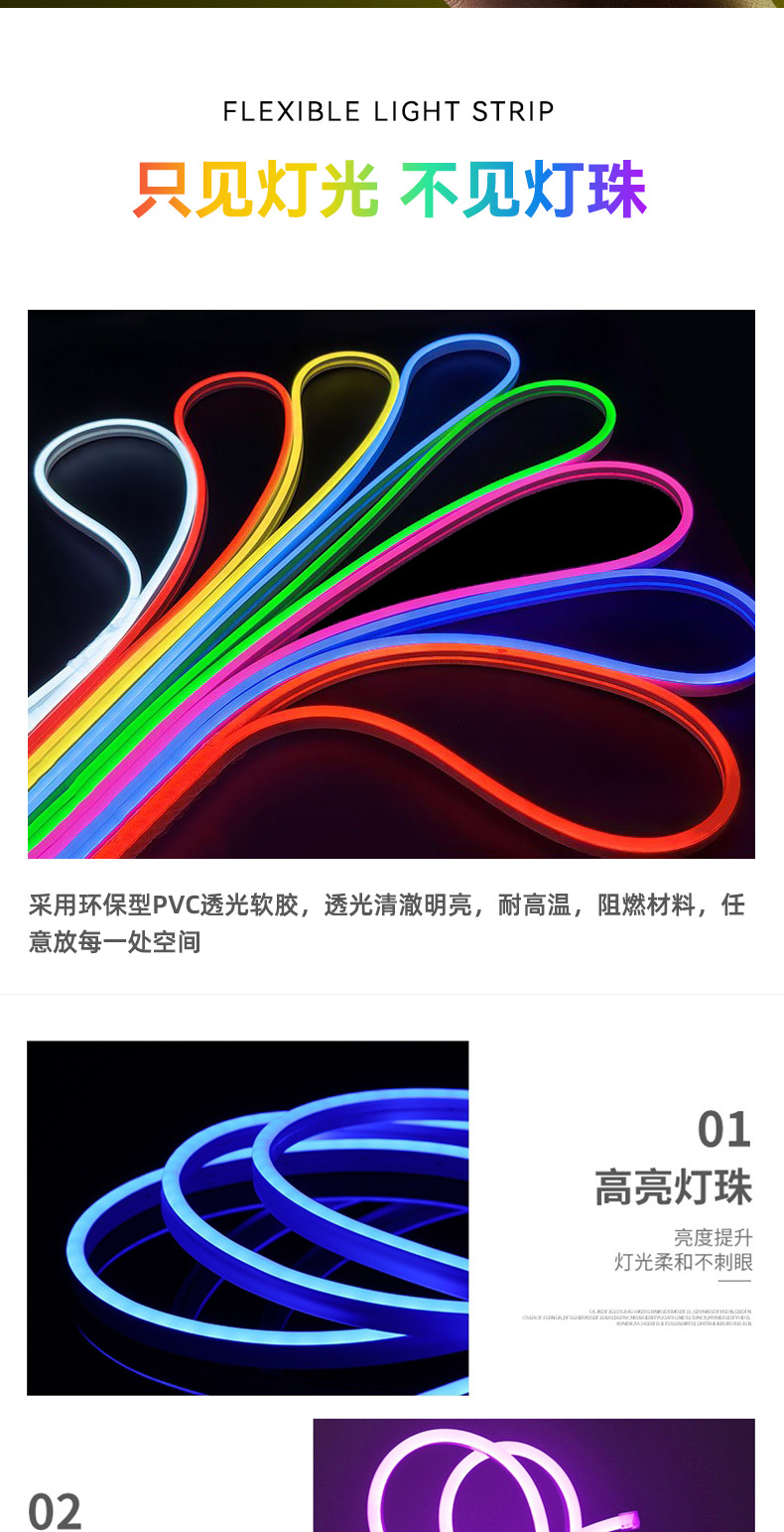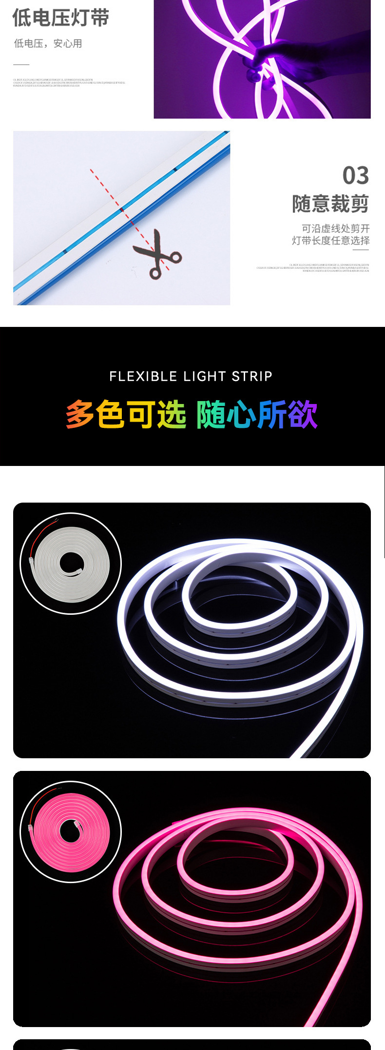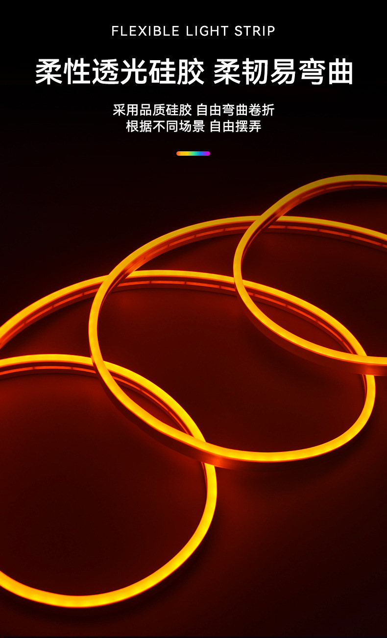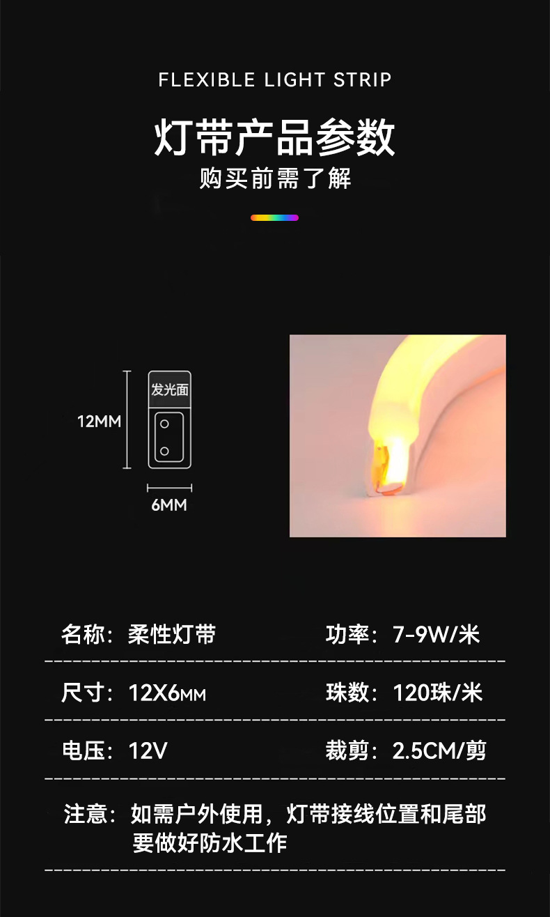 2835柔性硅胶灯带DC12/24V低压灯带广告招牌户外防水6*12霓虹灯带