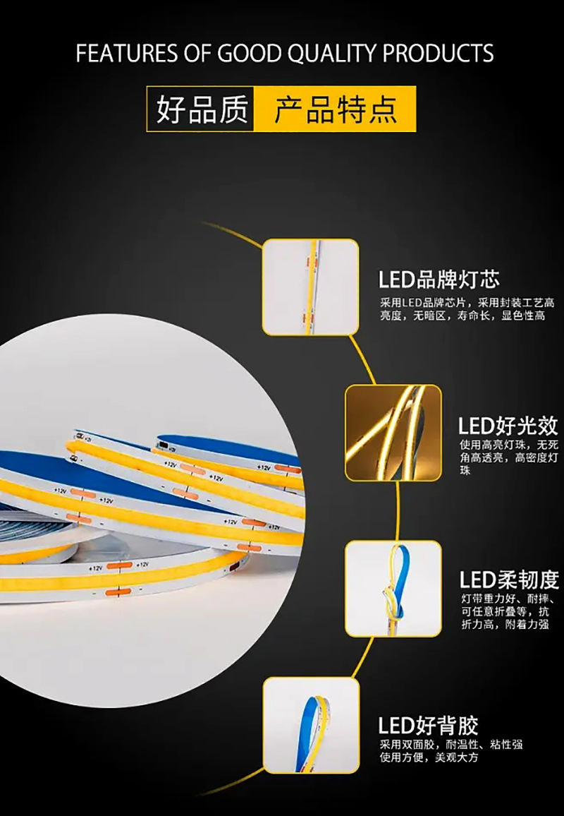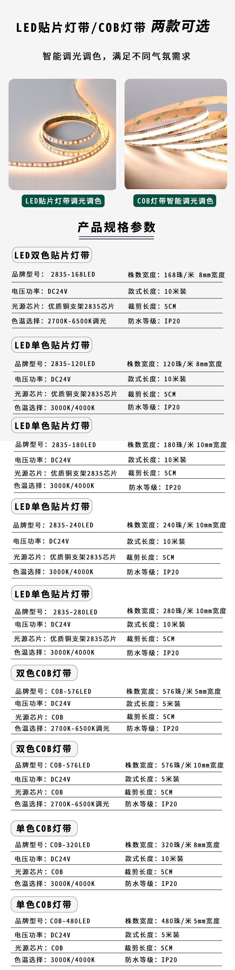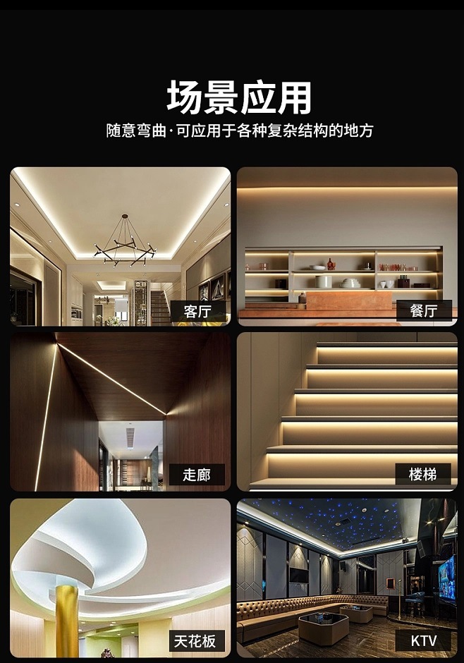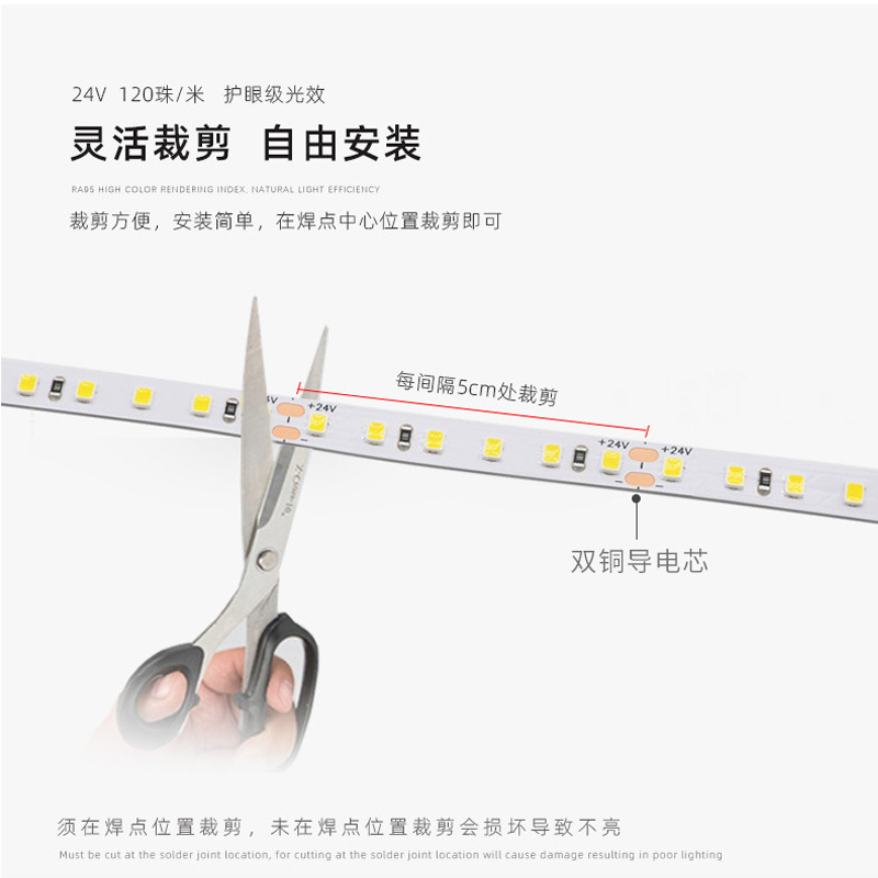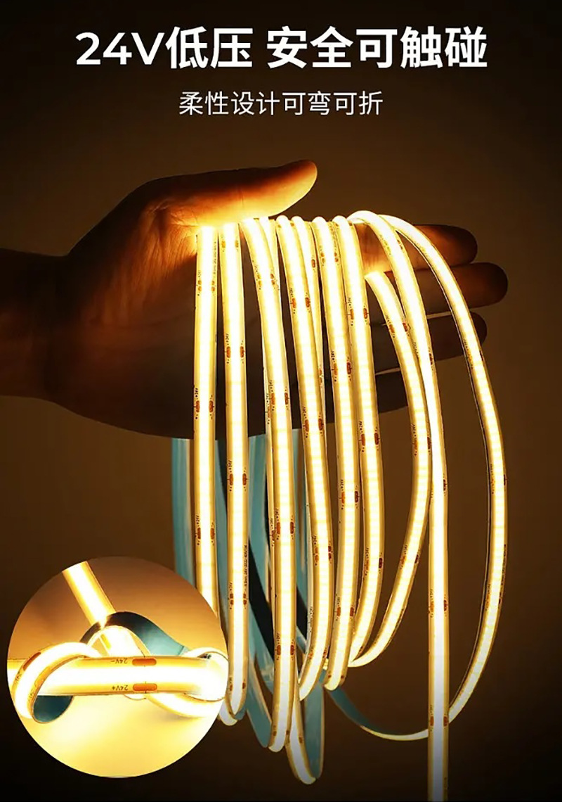 led灯带自粘灯条24v低压柔性2835灯条硅胶线条灯家装吊顶cob灯带