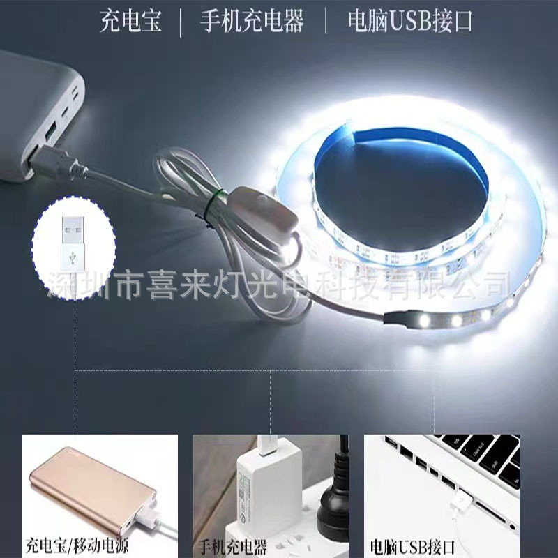 led低压usb开关5v发光画装饰不防水软灯带8mm单色2835单面板60灯