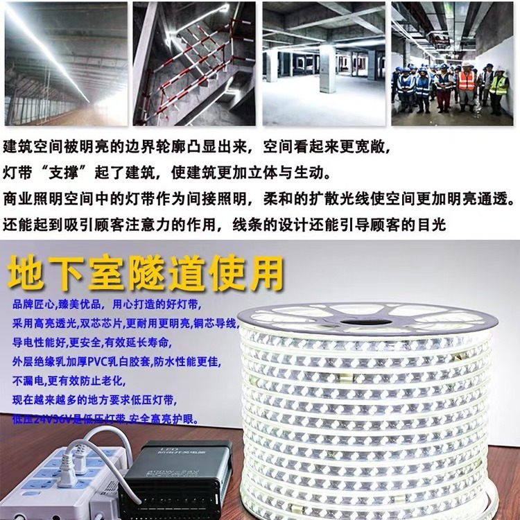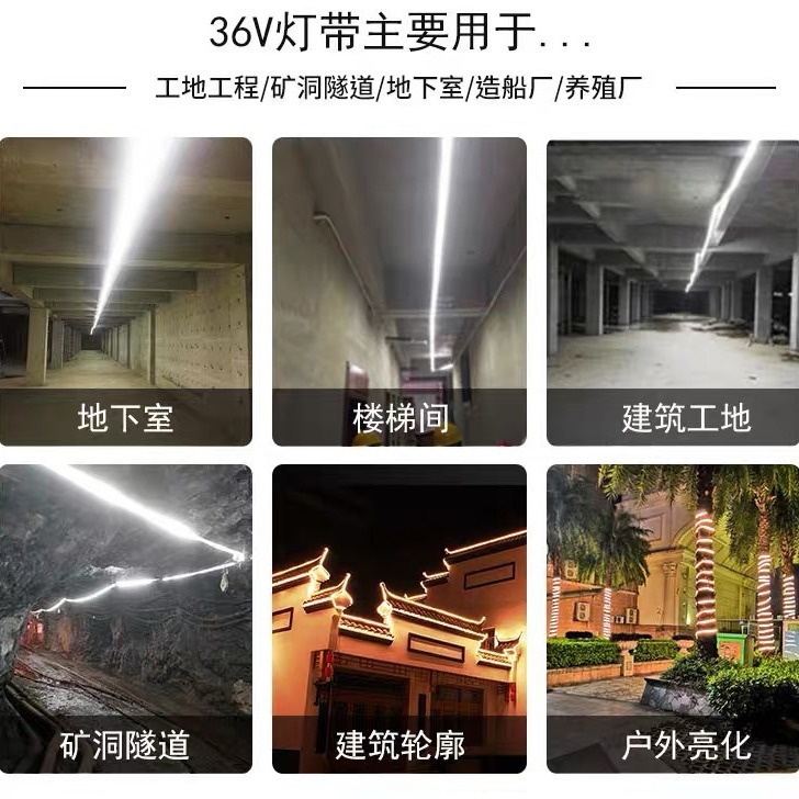 36V低压户外防水led灯带24V高亮工程隧道地下室塔吊亮化照明灯条