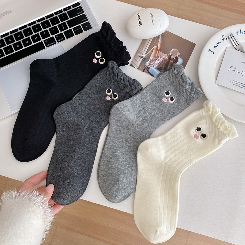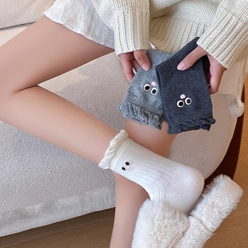 袜子女中筒袜可爱泡泡口大眼睛日韩卡通袜学院风ins潮流女生长袜