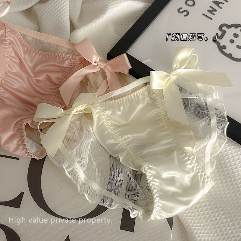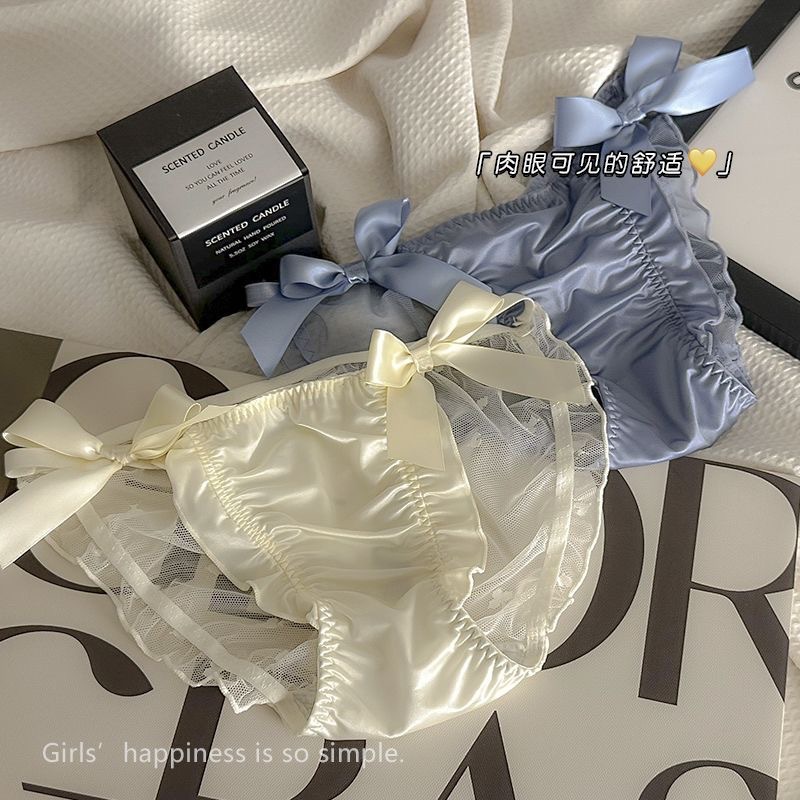 蕾丝三角裤 网纱内裤女 蝴蝶结三角裤纯棉裆透气速干缕空性感诱惑