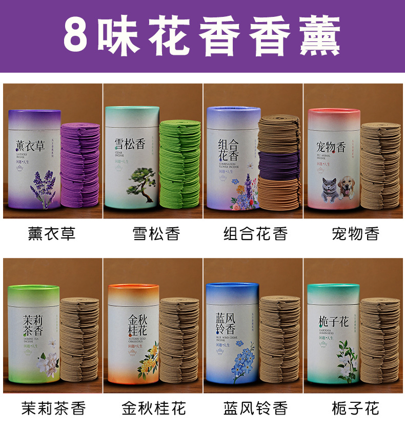 | eight-color box 240 single plate (lavender + bluebell fragrance) send kiln baked incense burner (including fireproof cotton + incense holder)(八彩盒240单盘(薰衣草+蓝风铃香)送窑变香炉(含防火棉+香插)) | USD $2.91 | 2989 box available |