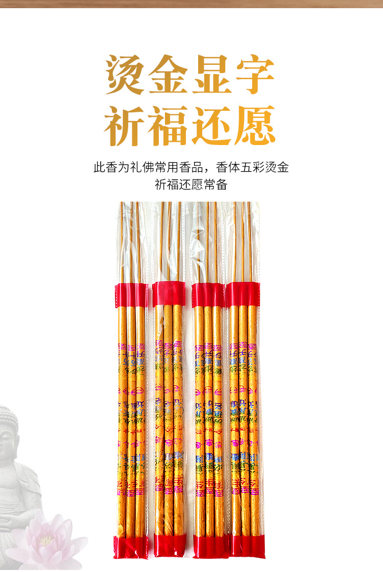 烫金显字香 礼佛竹签香寺庙家用高香棒香祈福还愿供佛香 厂家批发
