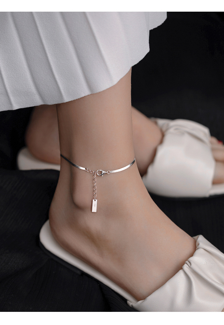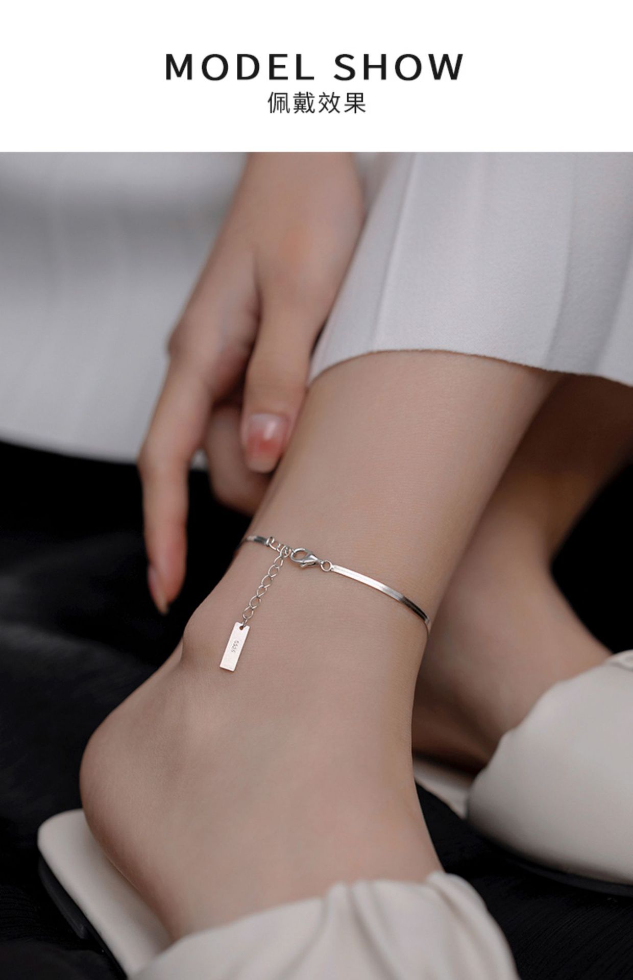 纯银蛇骨链脚链刀片链扁平蛇骨链脚链女孩高级感冷淡风足链性感