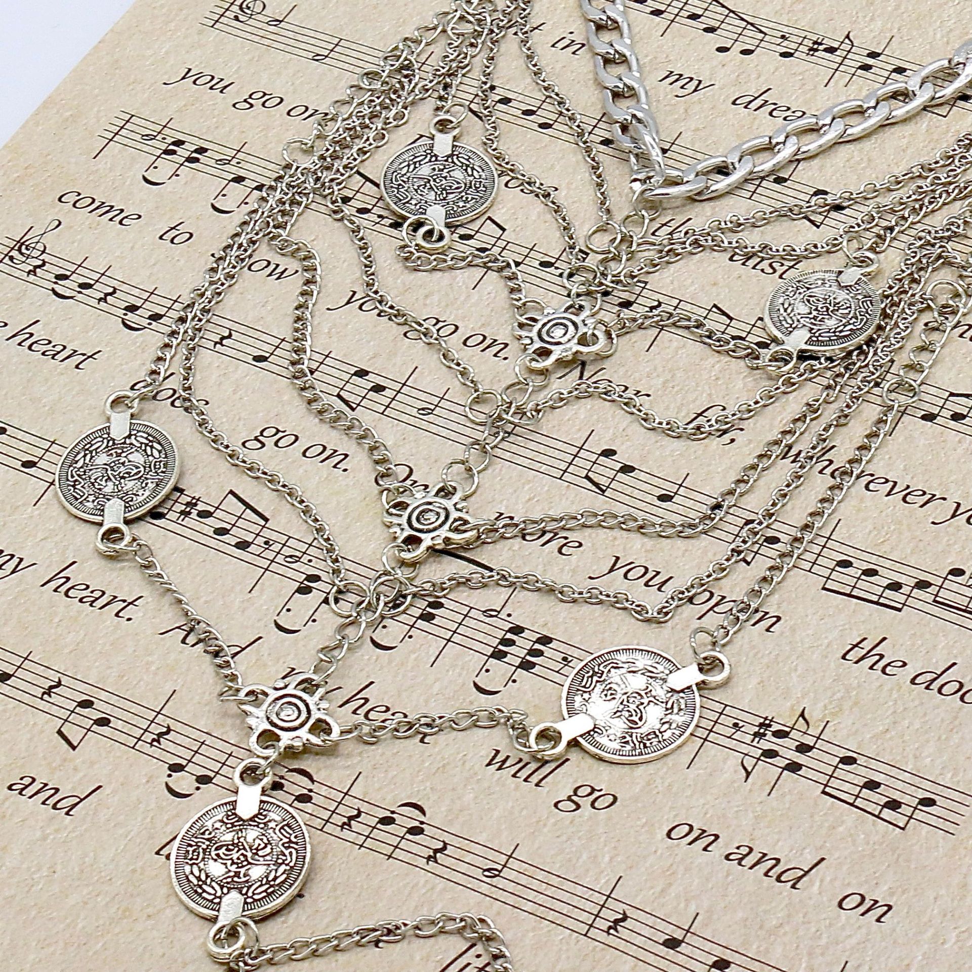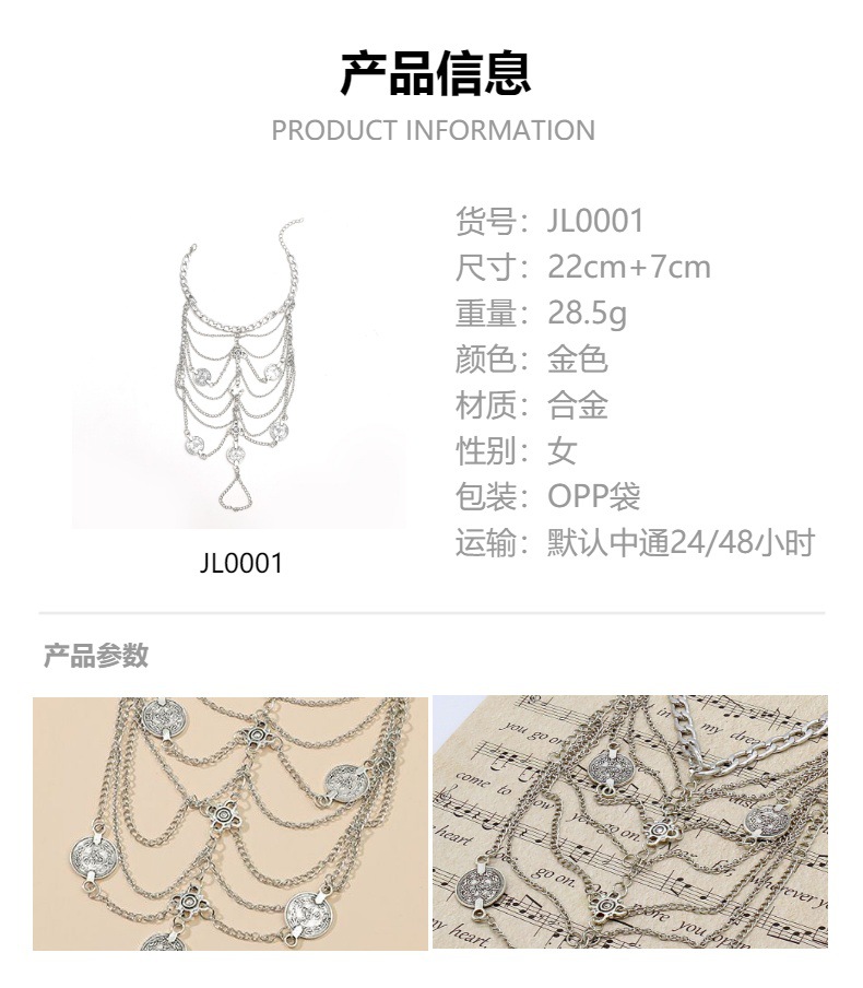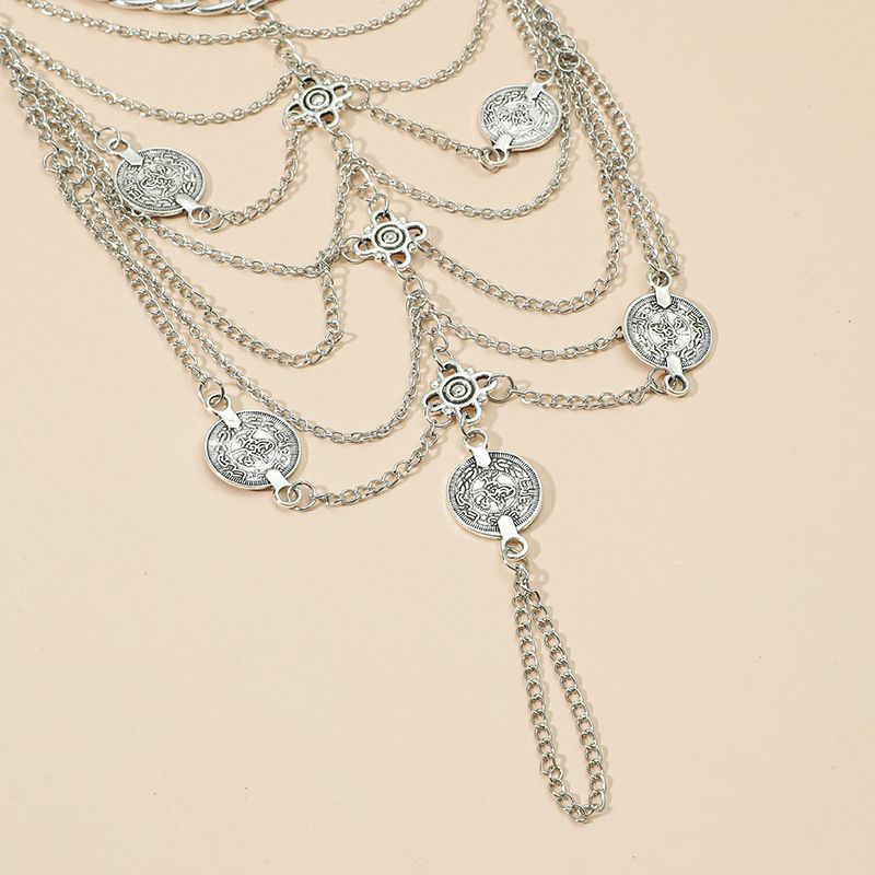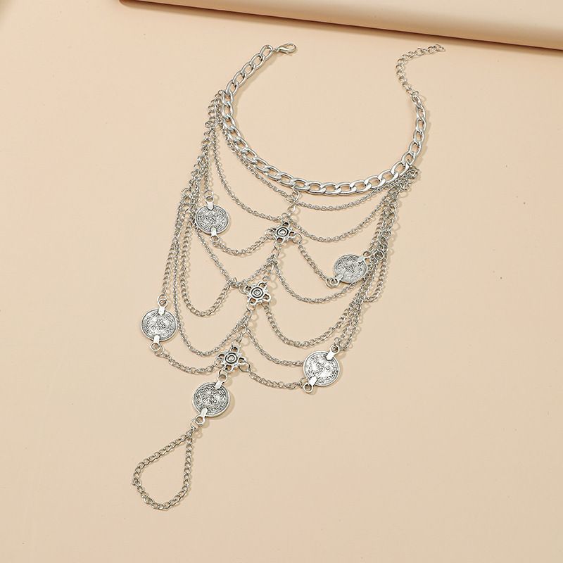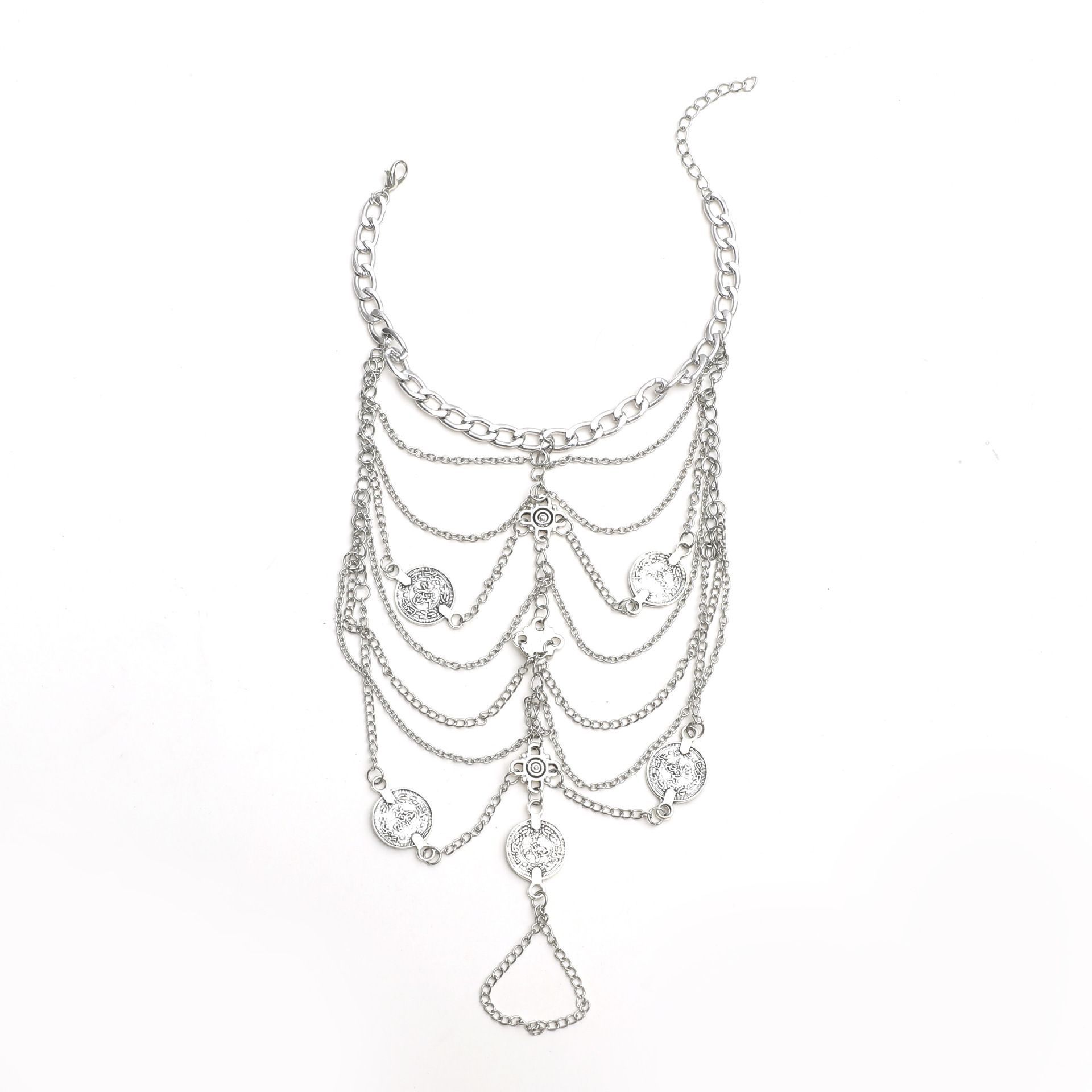 欧美跨境波西米亚复古风金属朋克重工多层链条流苏钱币脚链脚饰女