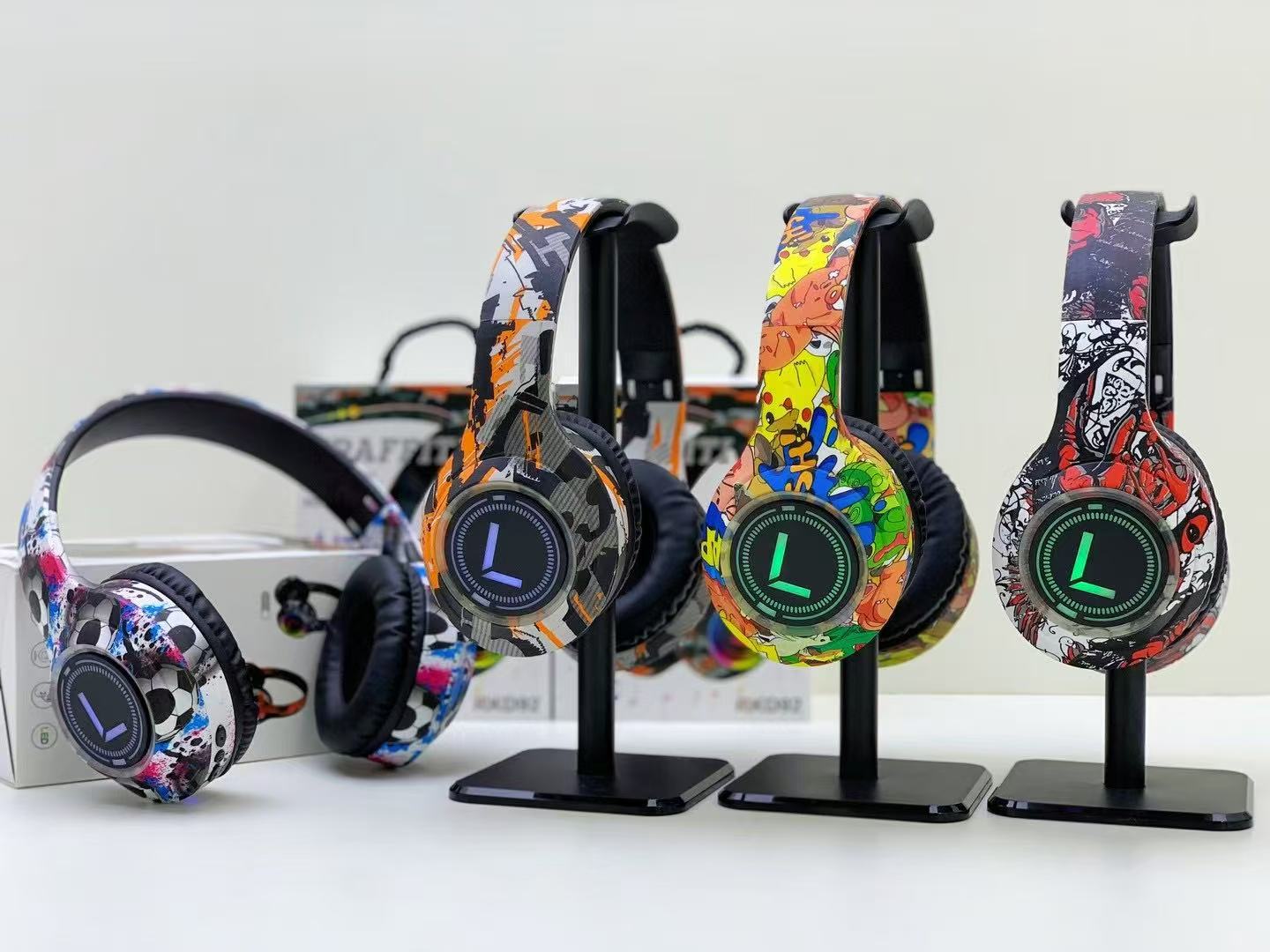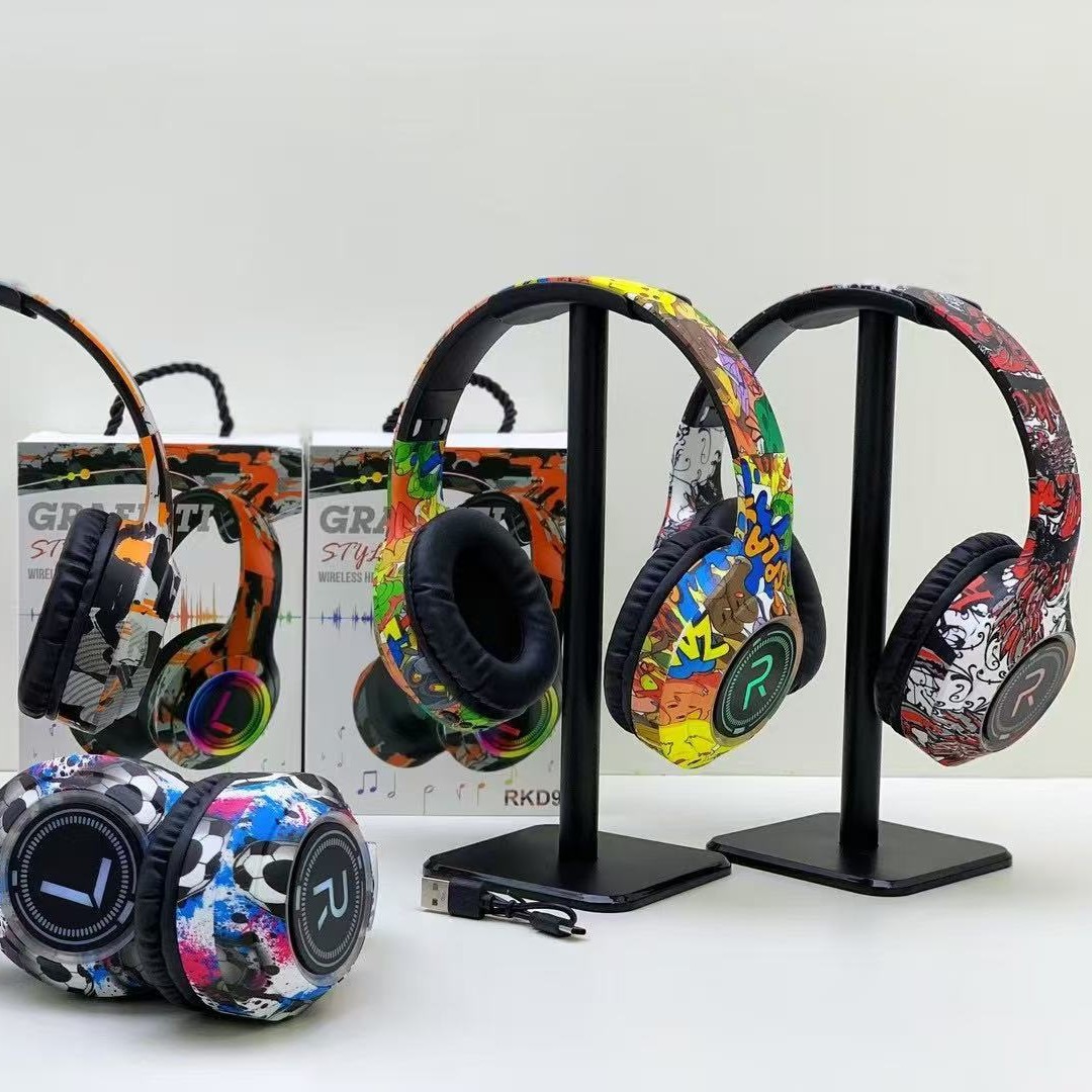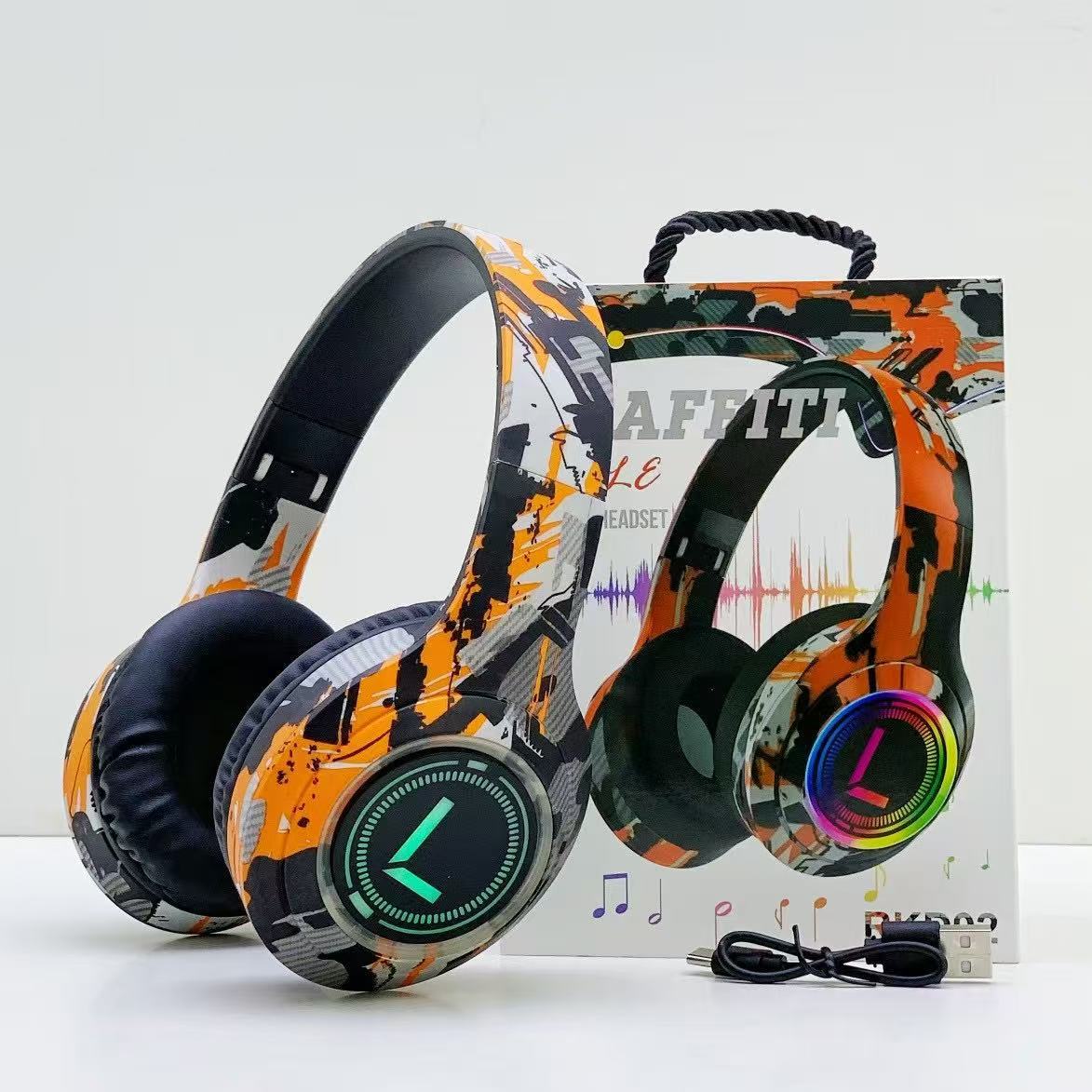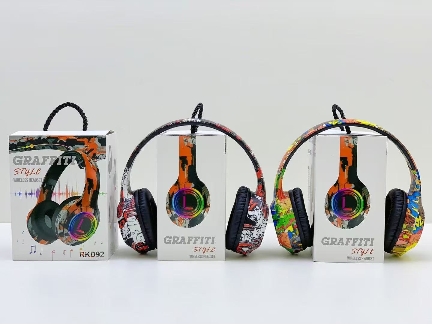 RKD92 蓝牙耳机头戴式无线彩绘涂鸦炫彩发光跨境爆款重低音可折叠