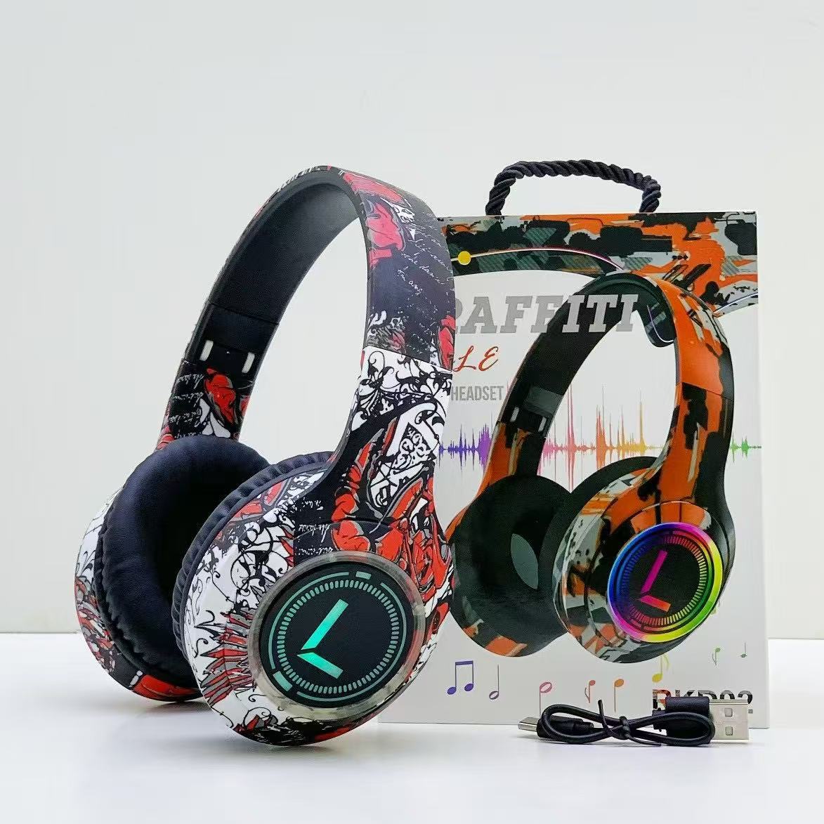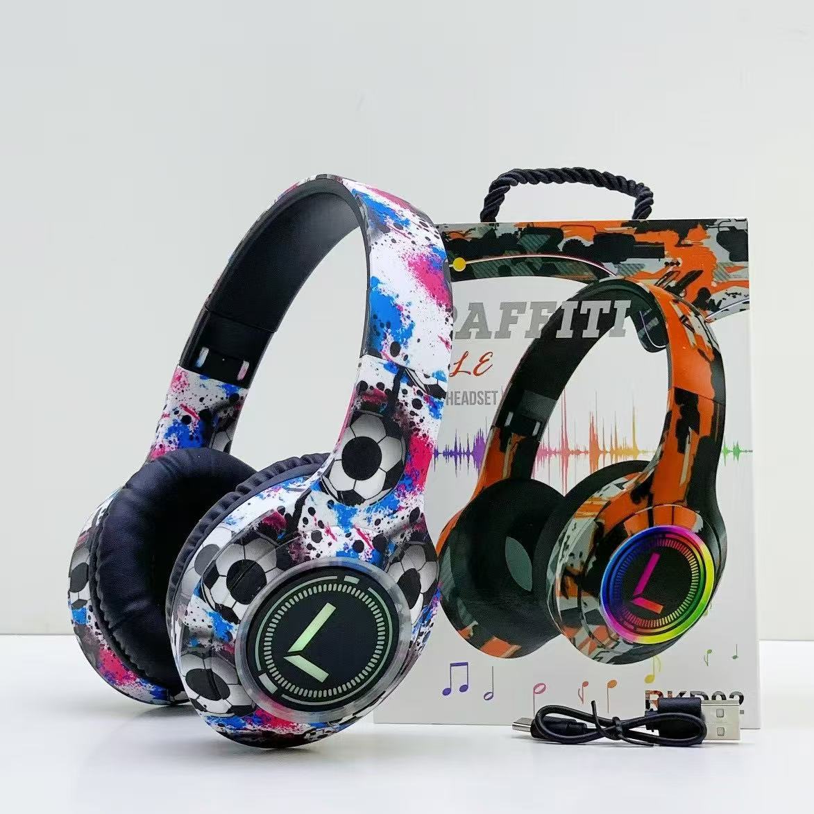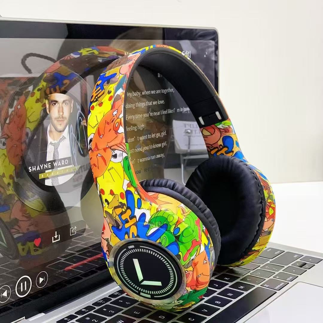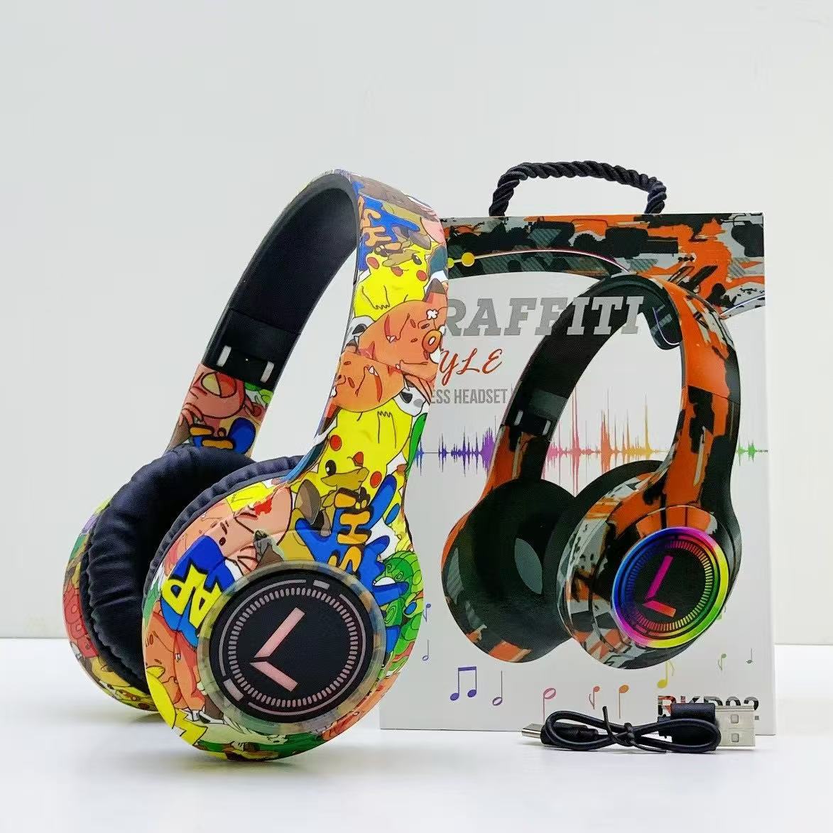 RKD92 蓝牙耳机头戴式无线彩绘涂鸦炫彩发光跨境爆款重低音可折叠