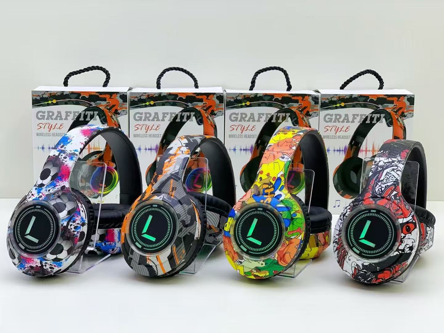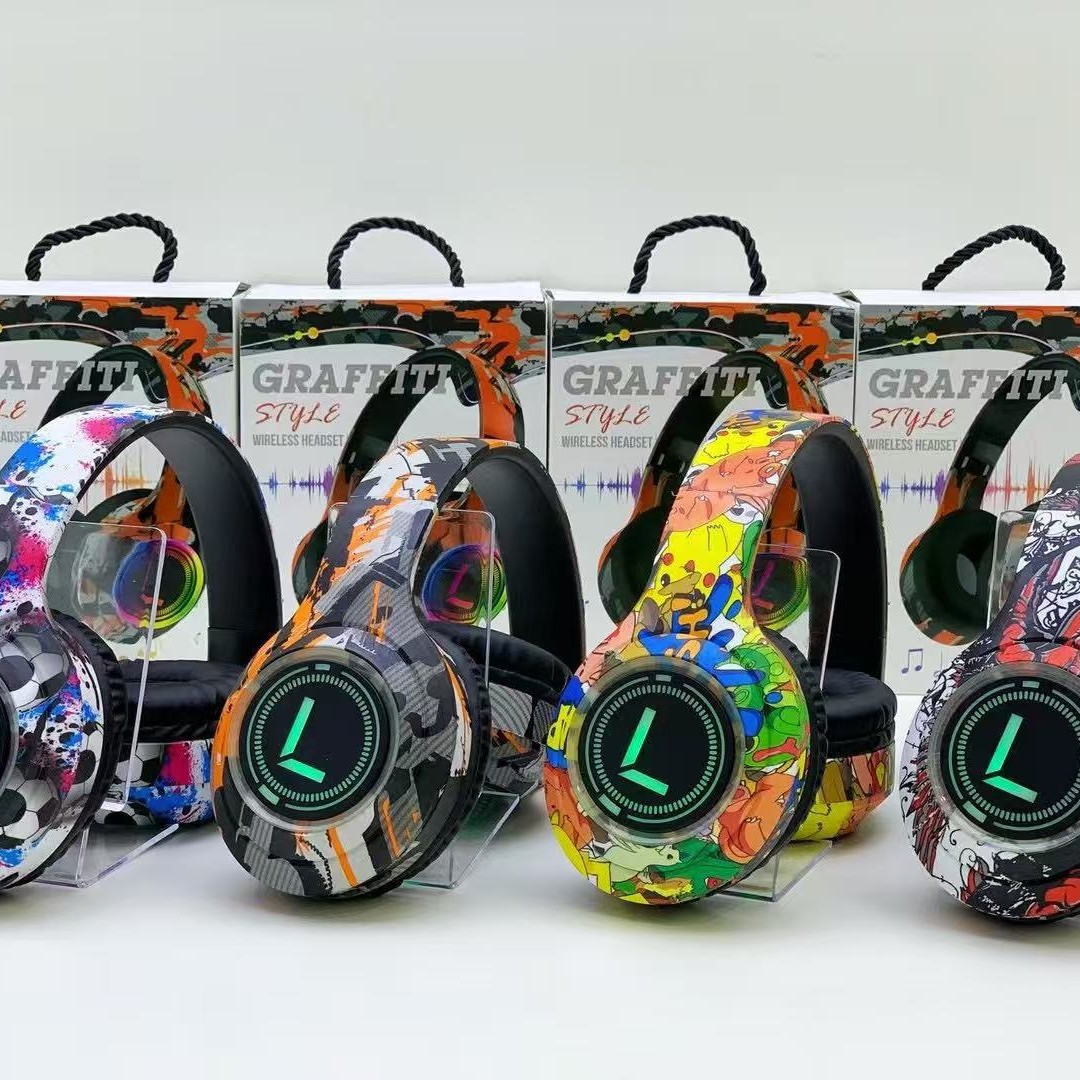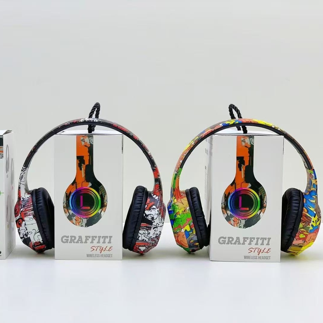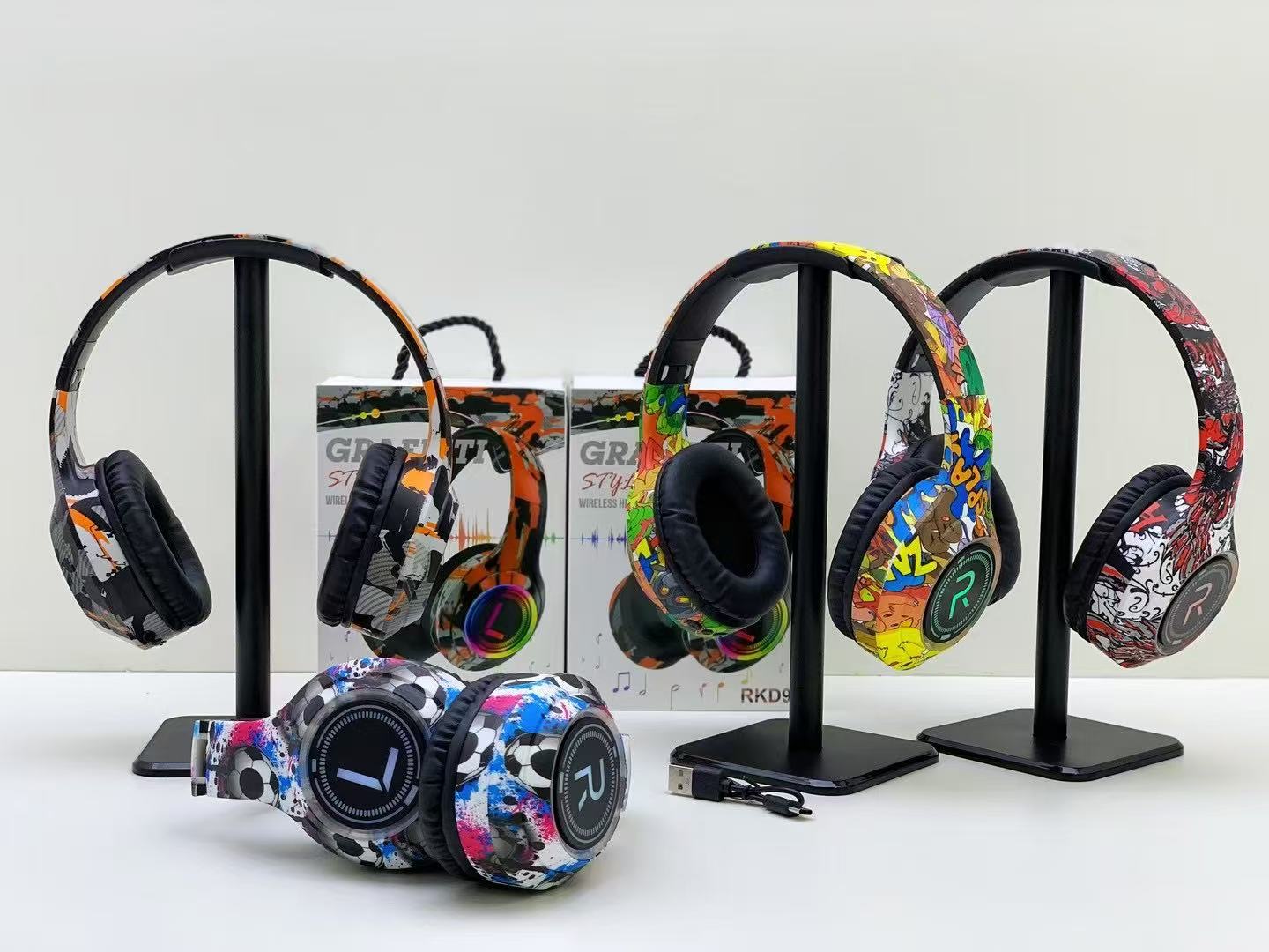 RKD92 蓝牙耳机头戴式无线彩绘涂鸦炫彩发光跨境爆款重低音可折叠