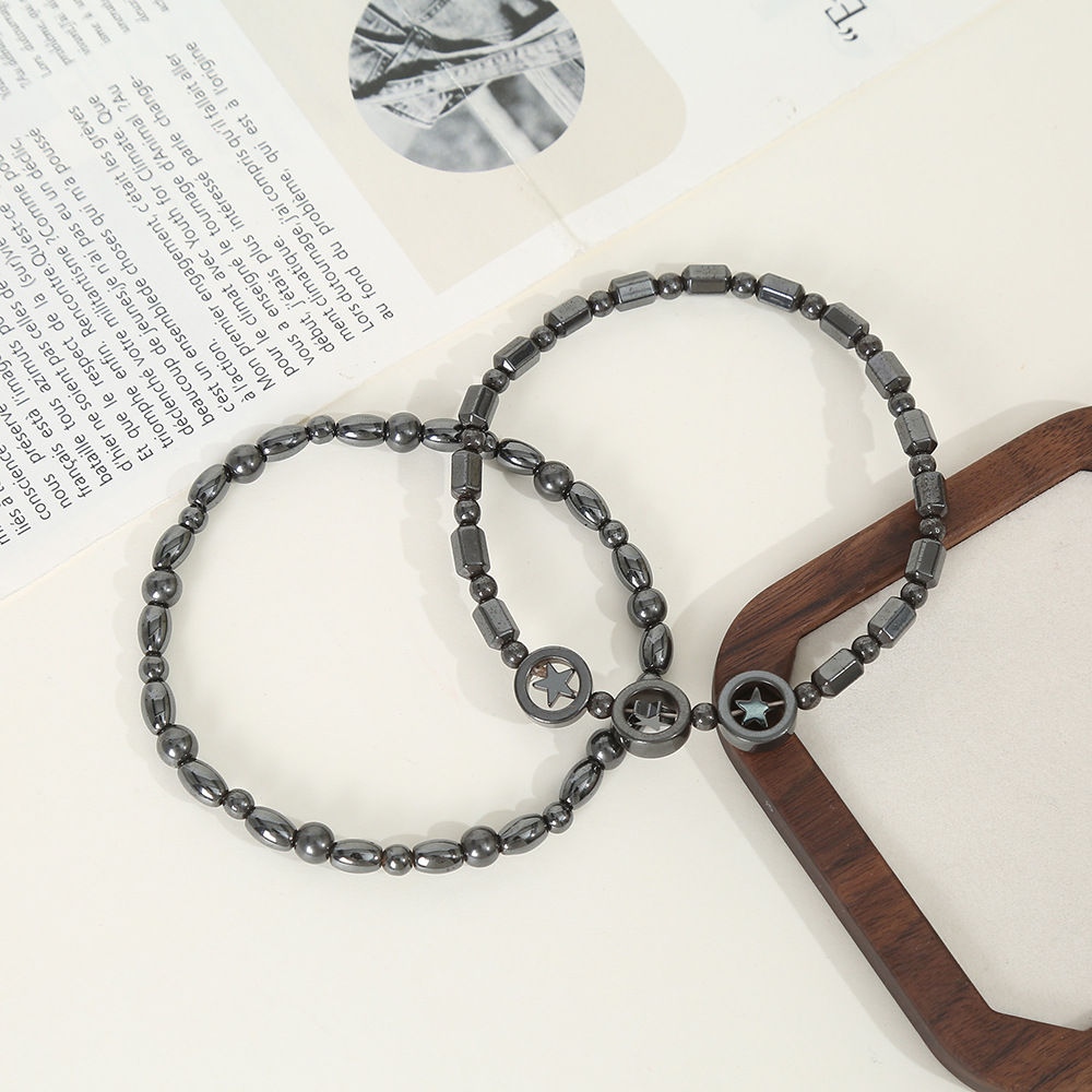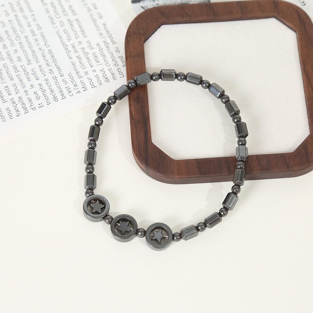 星星脚链黑胆石几何形配饰欧美黑色脚链手工串珠弹力脚链镂空