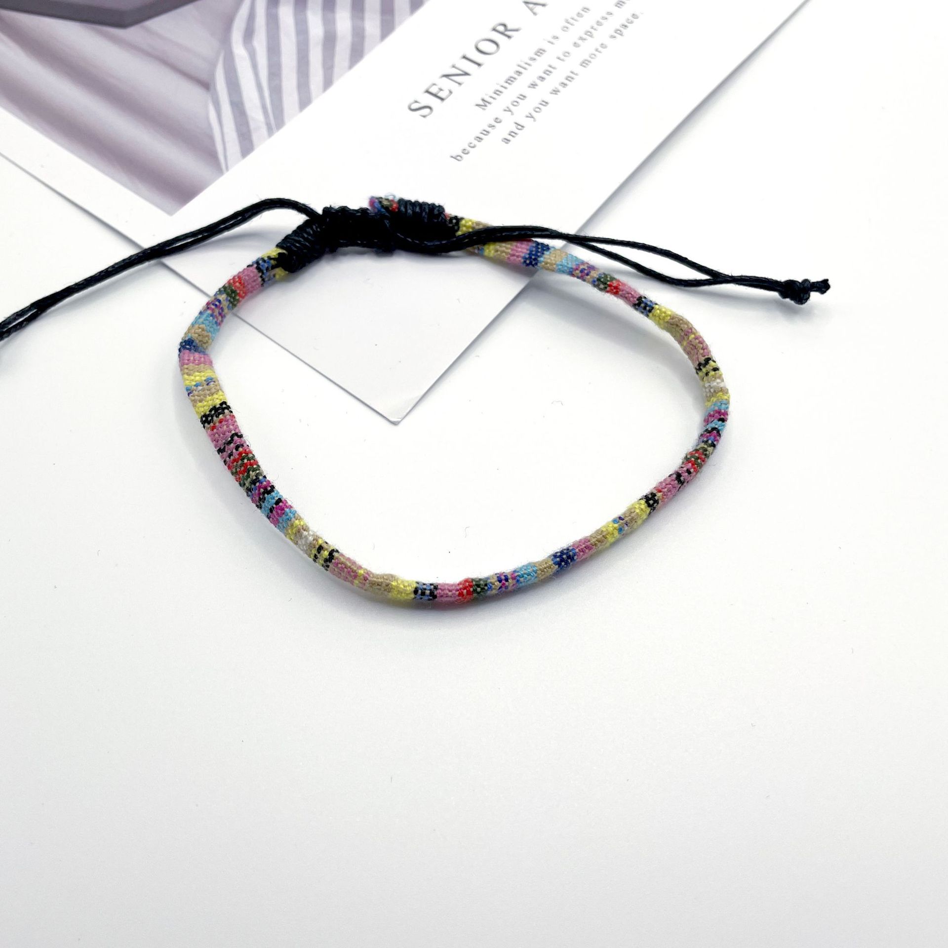 亚马逊热尼泊尔风棉麻编织布艺彩虹手链 脚链百搭彩色可调节脚裸