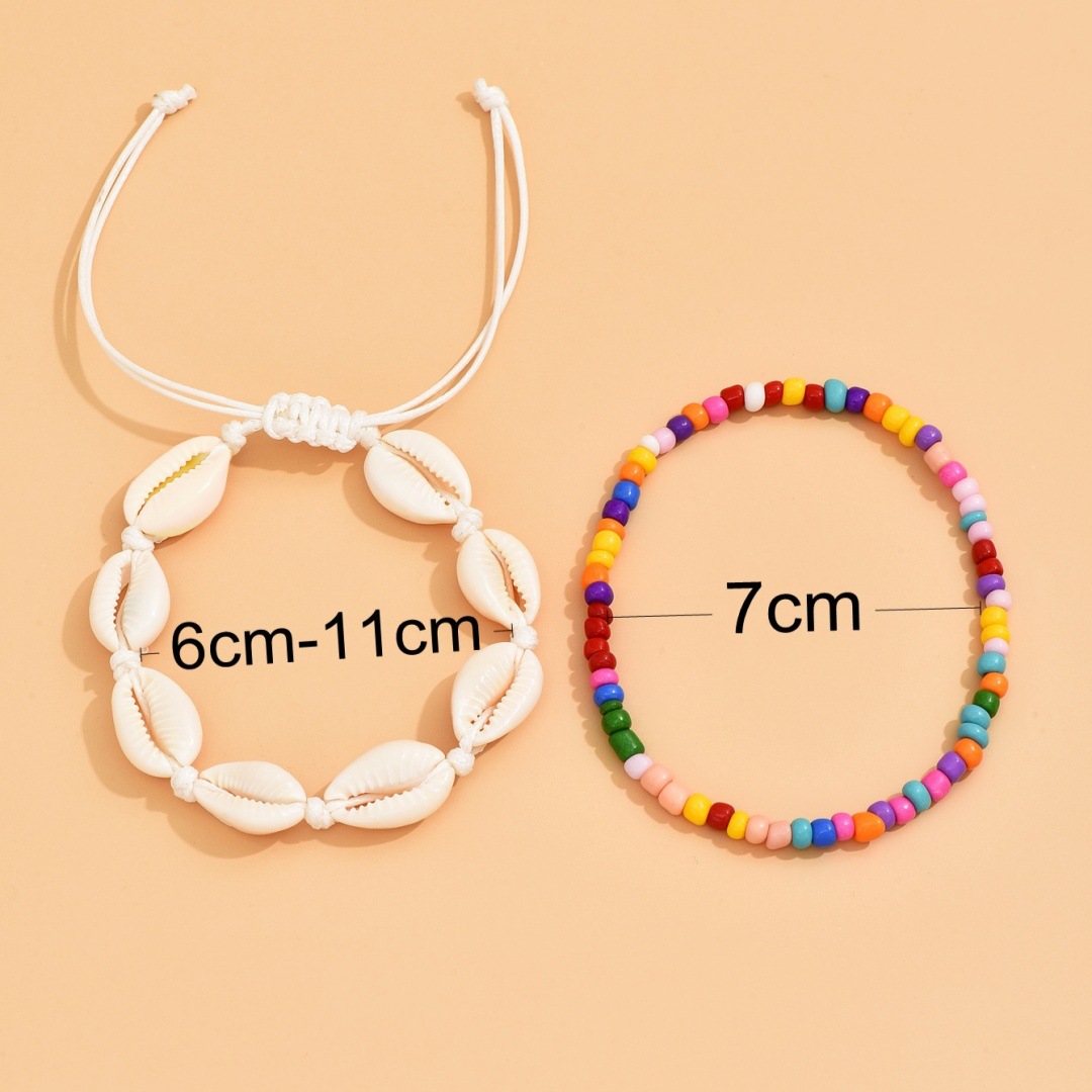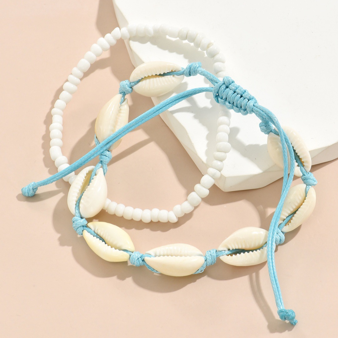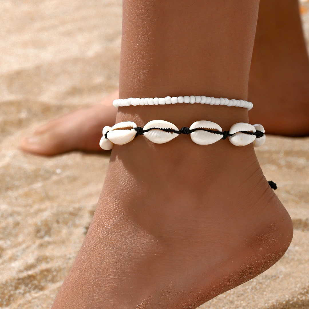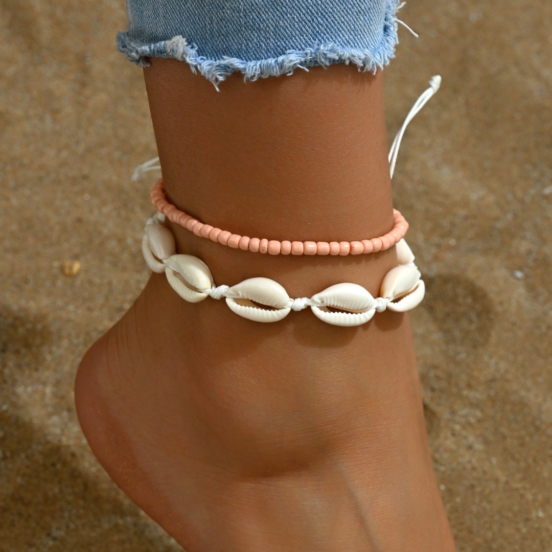 夏季沙滩度假欧美跨境脚链时尚米珠手工编织贝壳调节叠戴男女脚饰