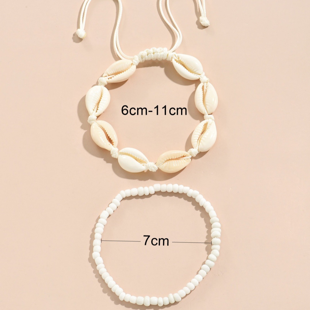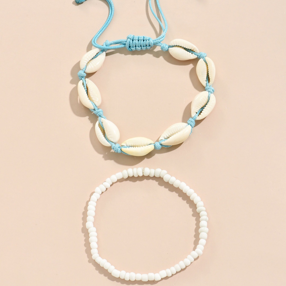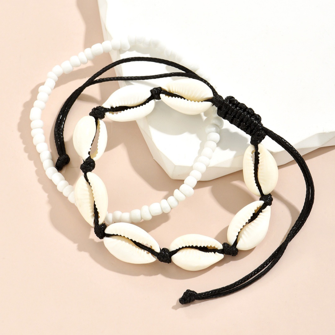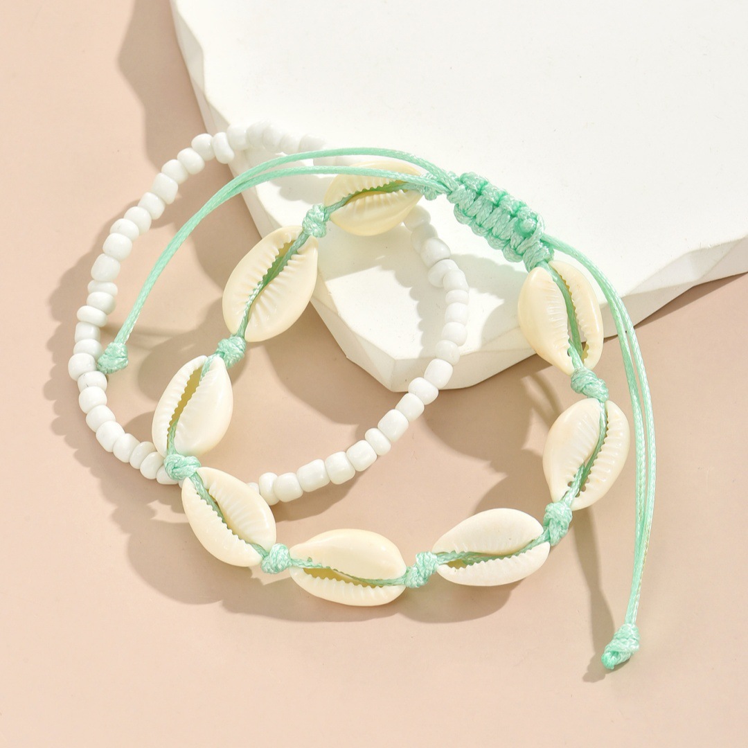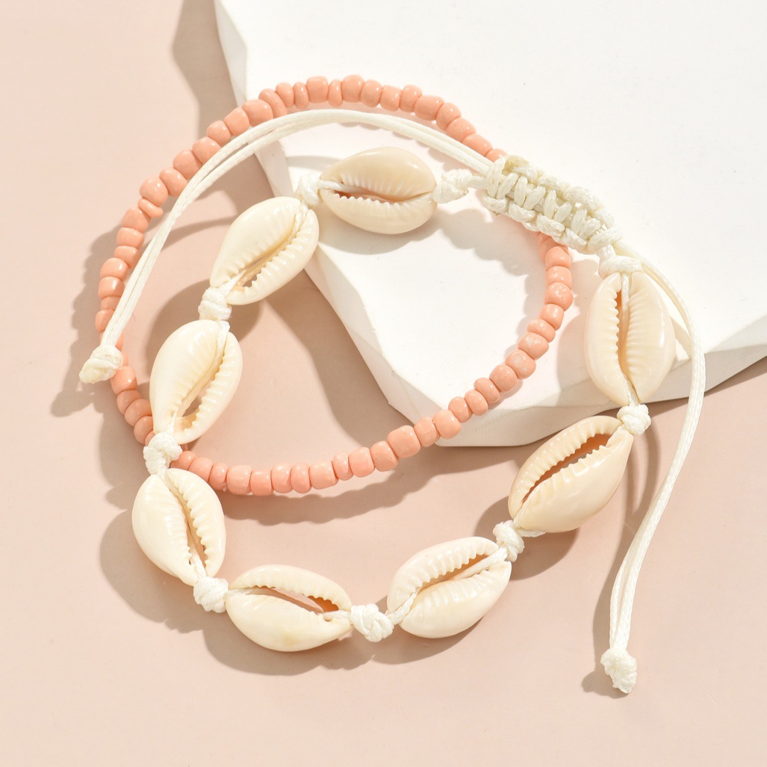 夏季沙滩度假欧美跨境脚链时尚米珠手工编织贝壳调节叠戴男女脚饰