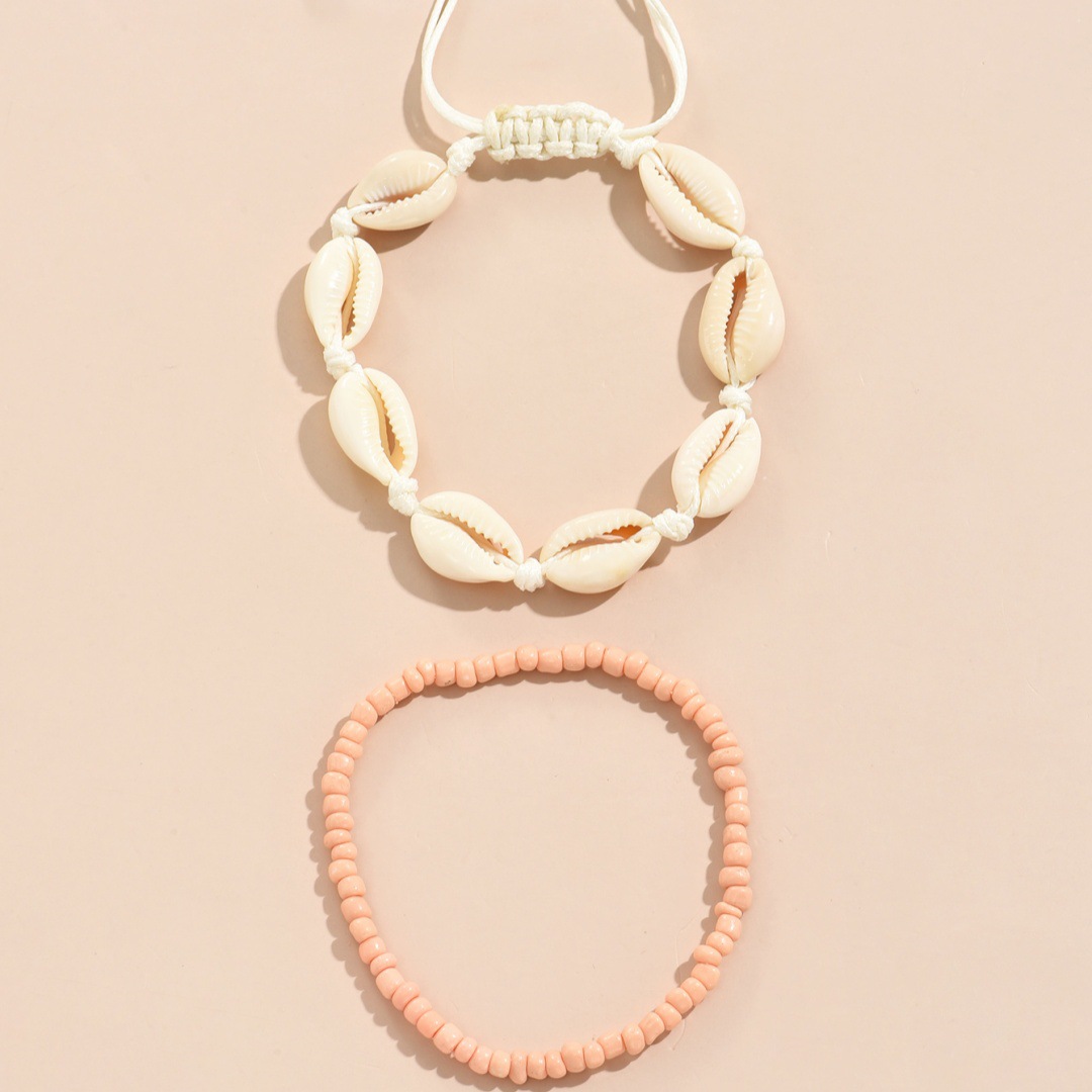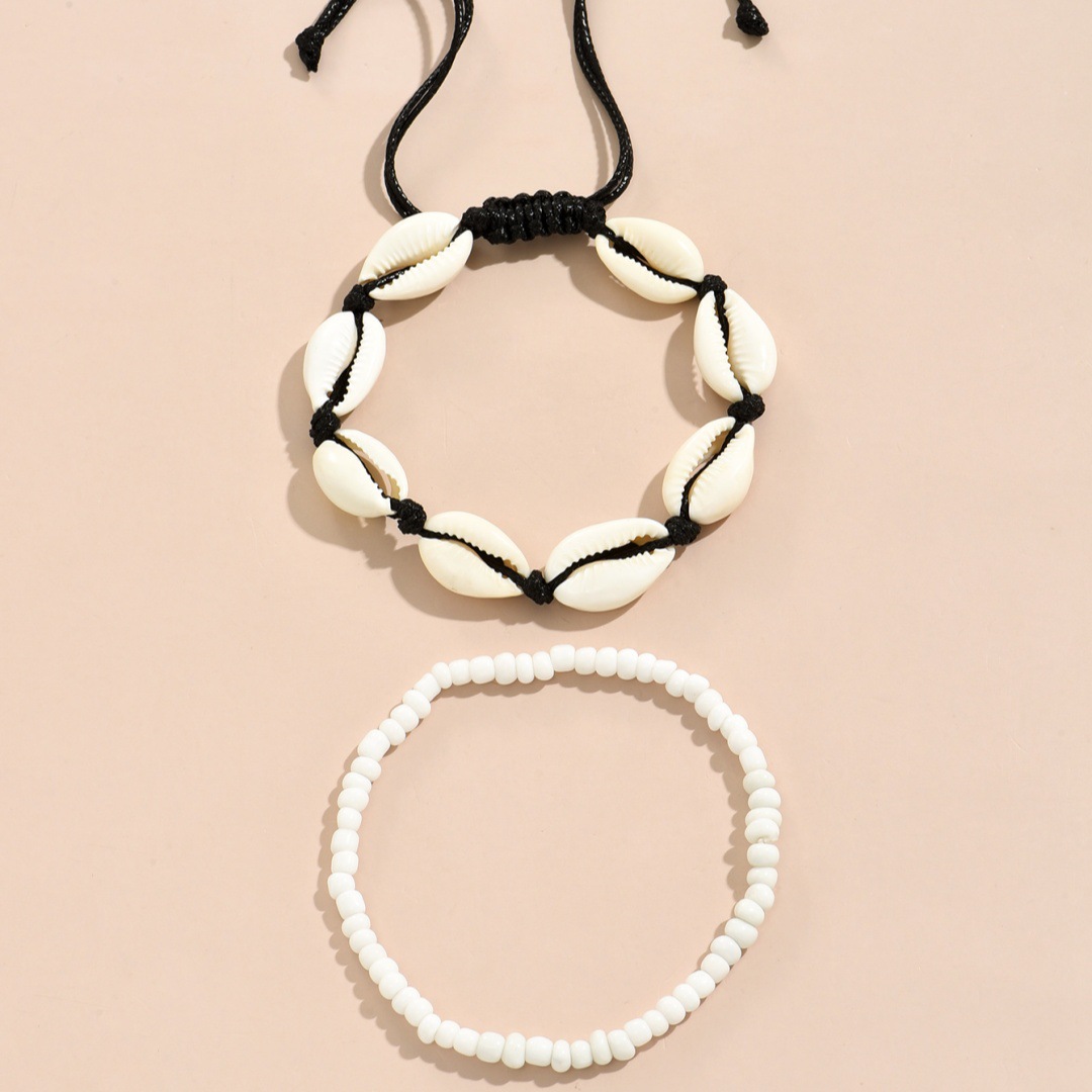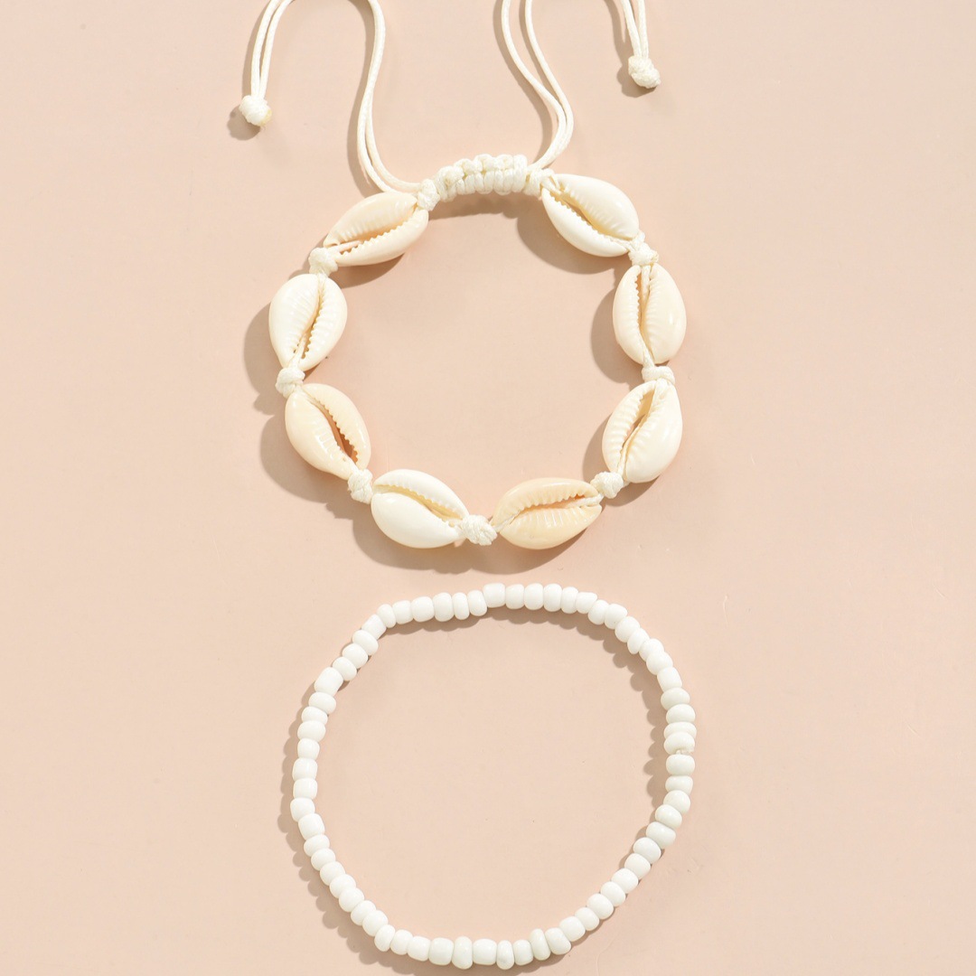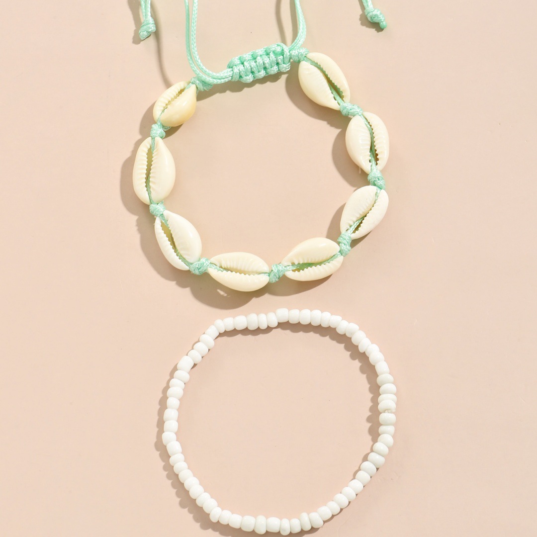 夏季沙滩度假欧美跨境脚链时尚米珠手工编织贝壳调节叠戴男女脚饰