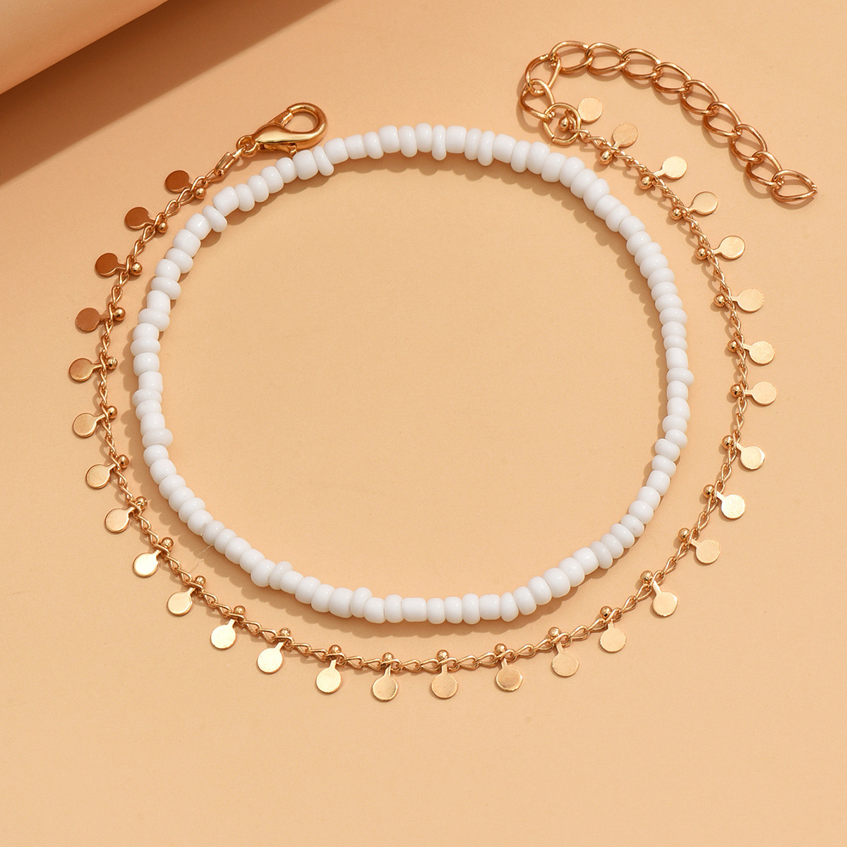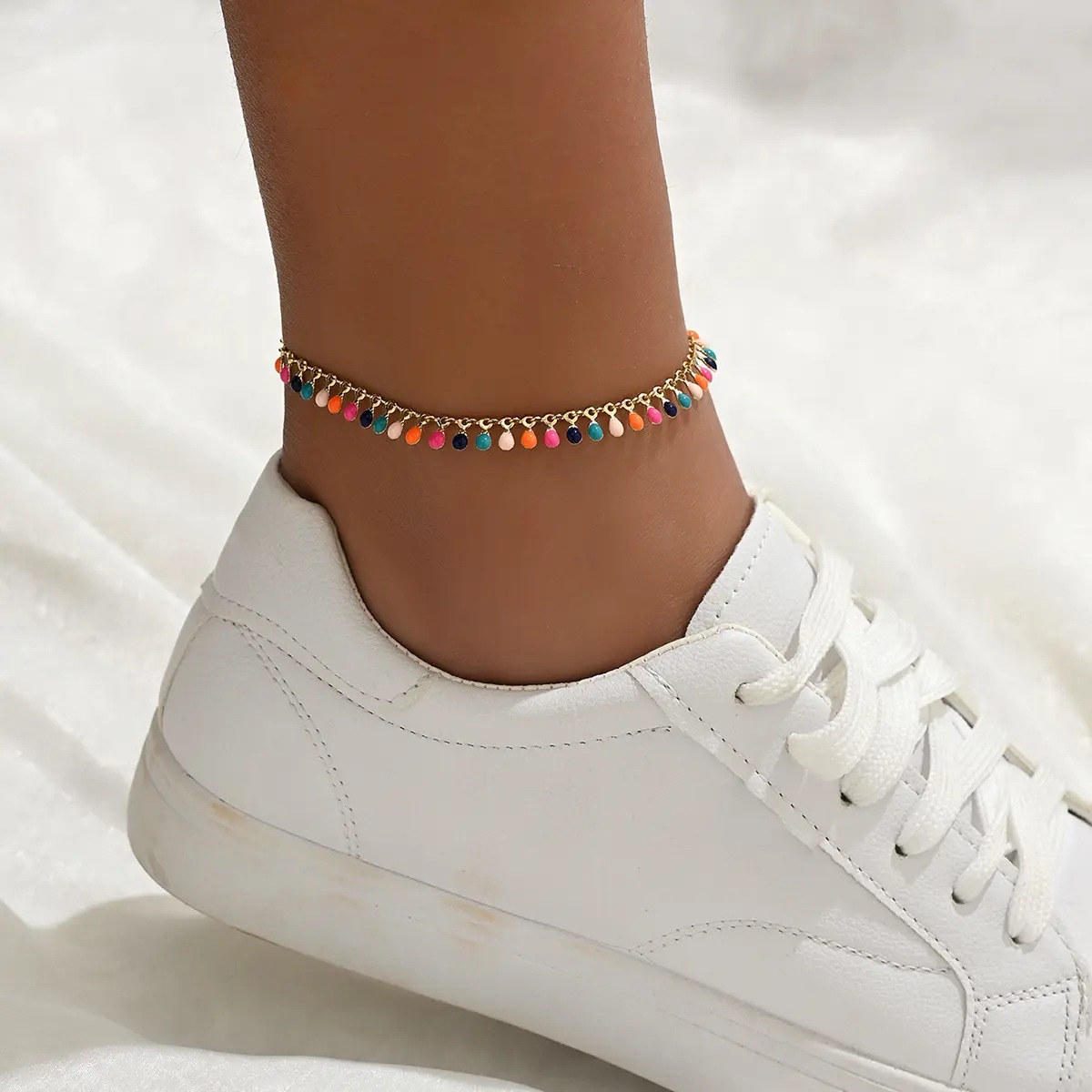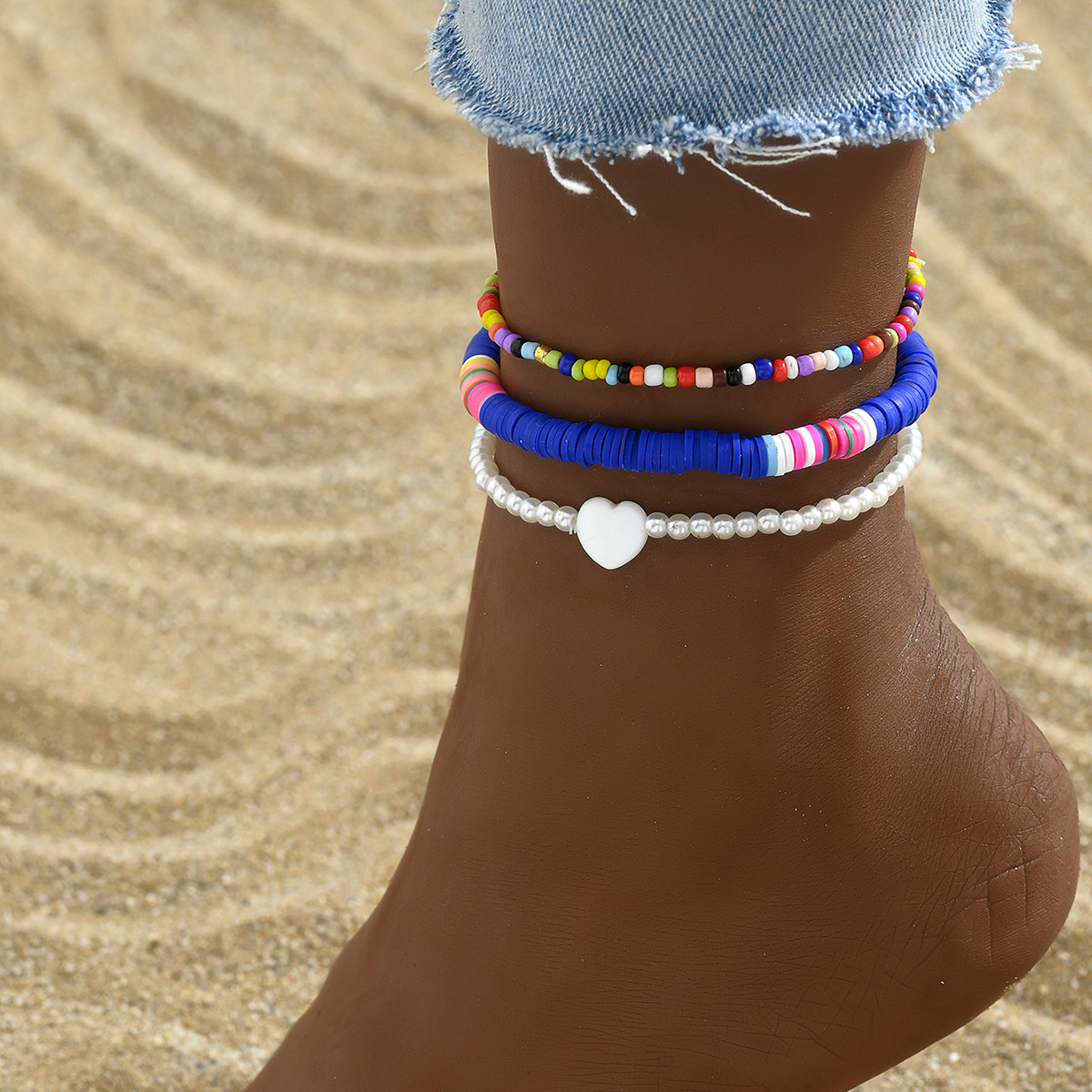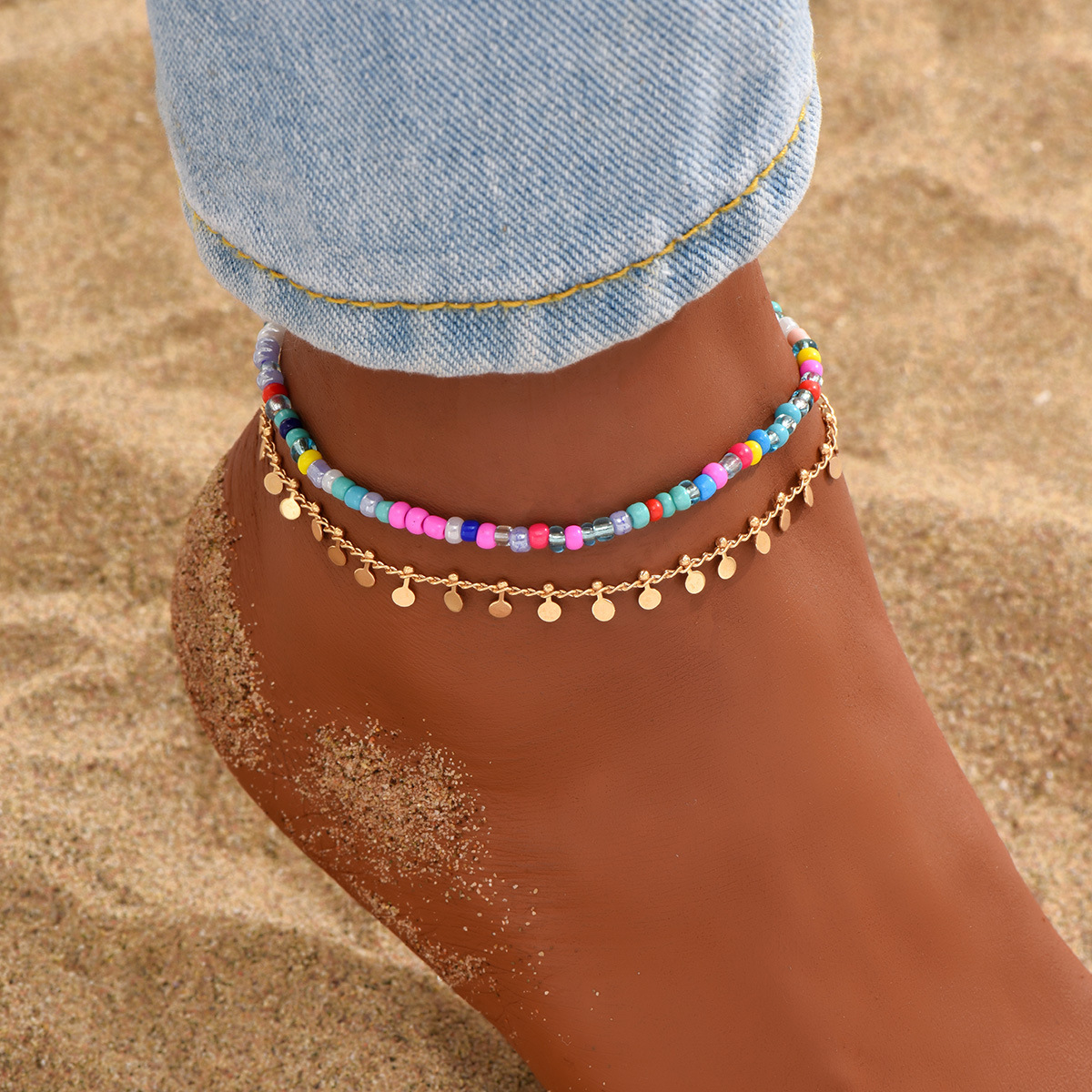 欧美波西米亚沙滩风个性脚饰简约金属松石米珠水钻软陶多款式脚链