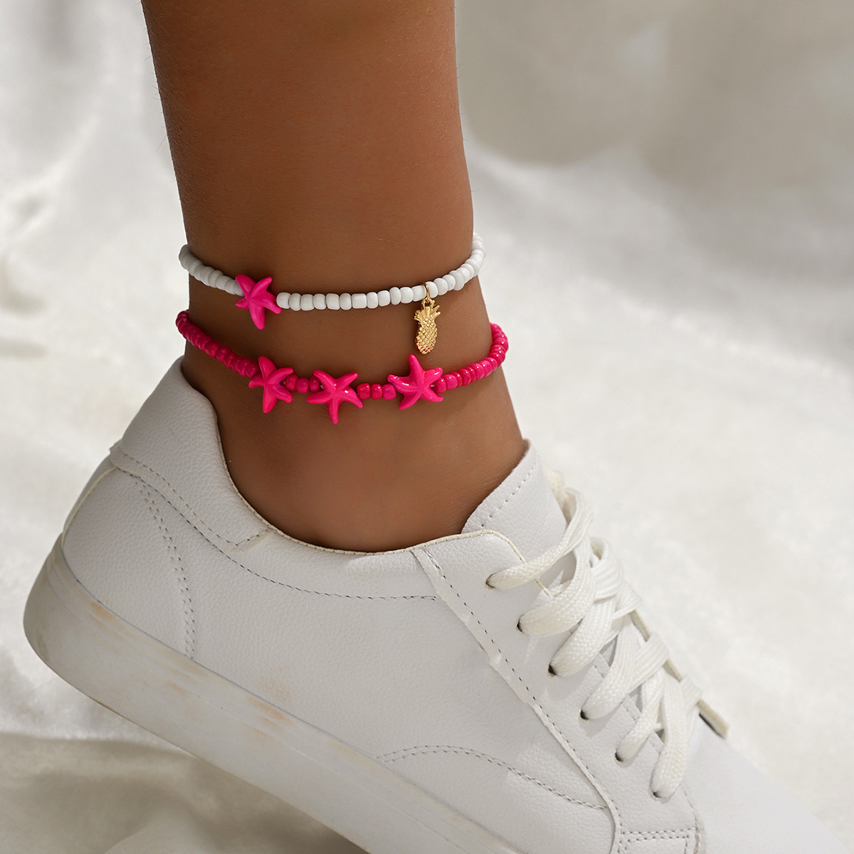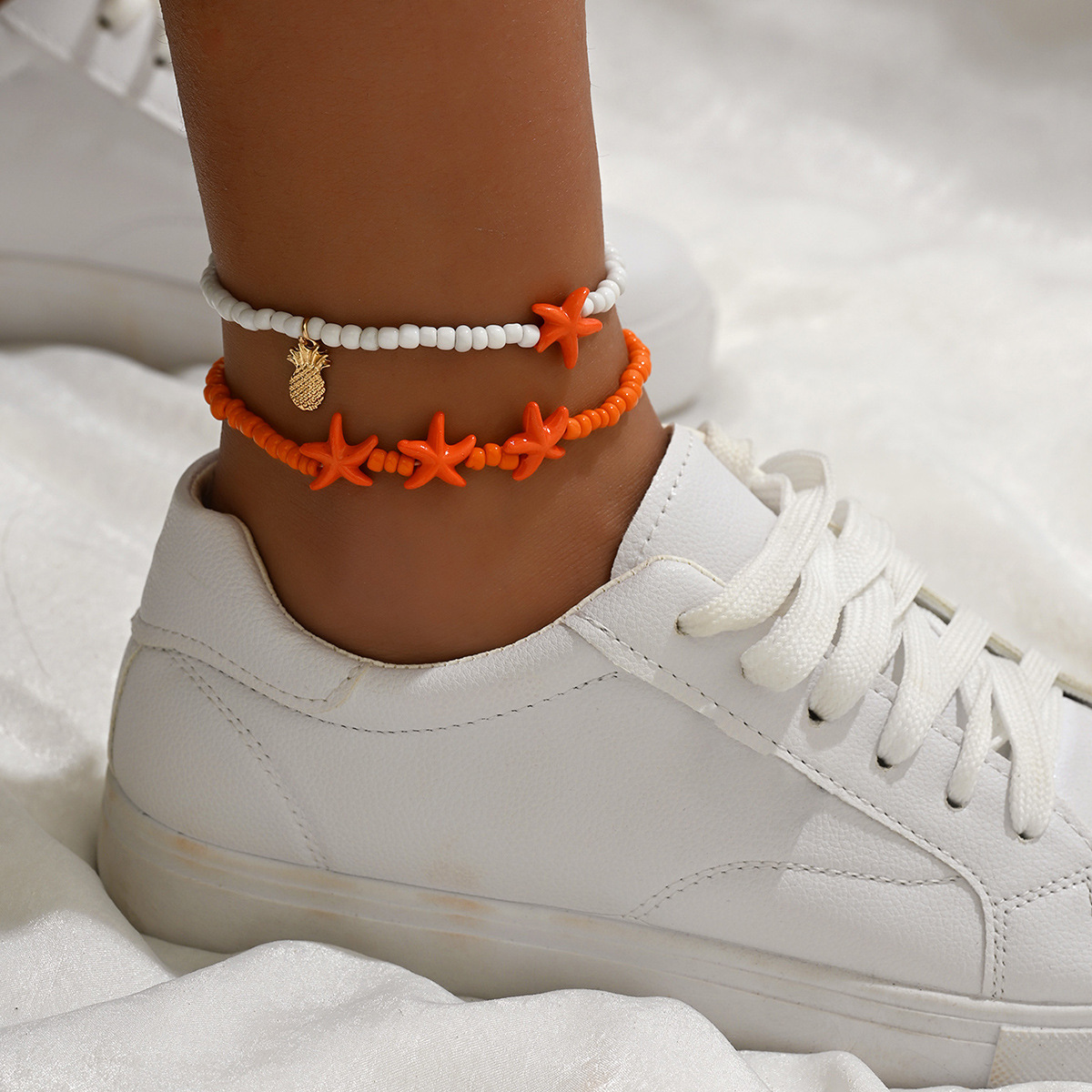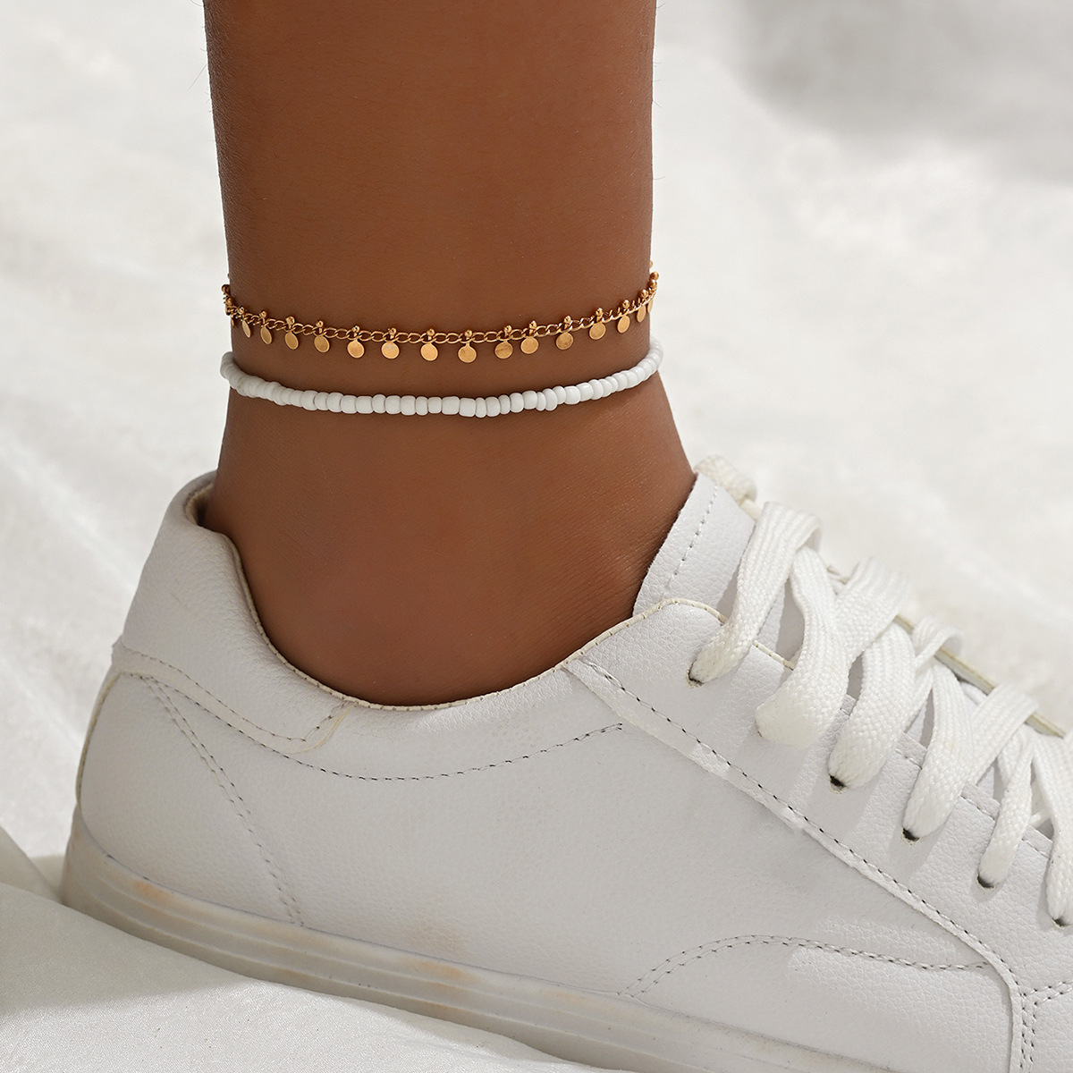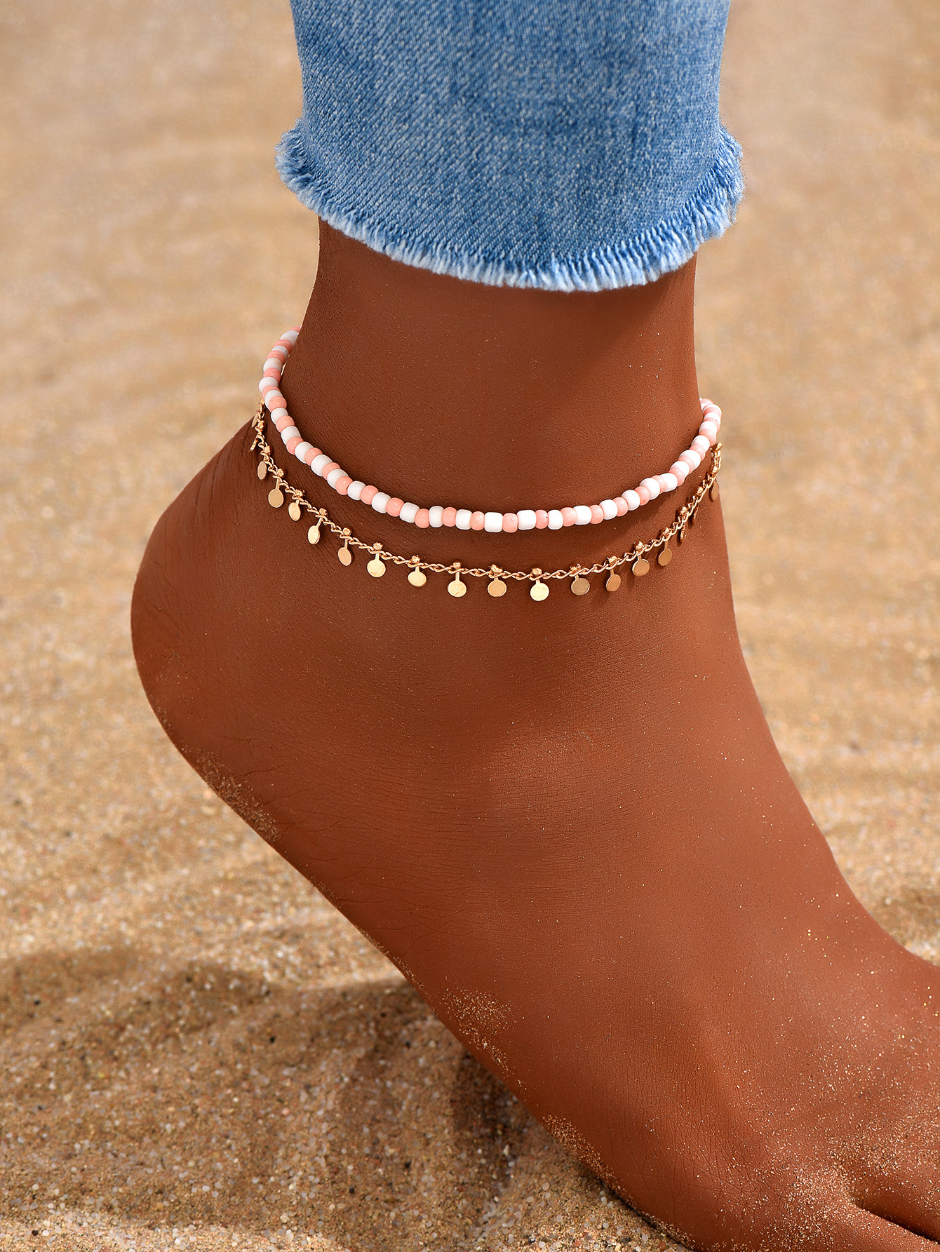 欧美波西米亚沙滩风个性脚饰简约金属松石米珠水钻软陶多款式脚链