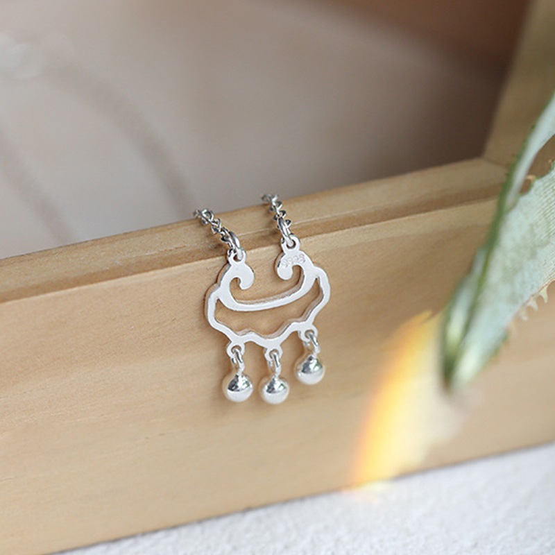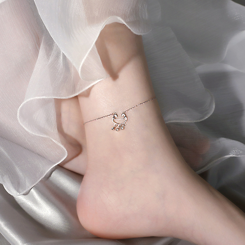 日韩风银长命锁脚链 女简约个性流苏铃铛脚链 气质网红脚饰批发
