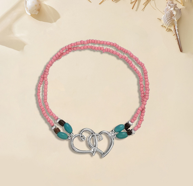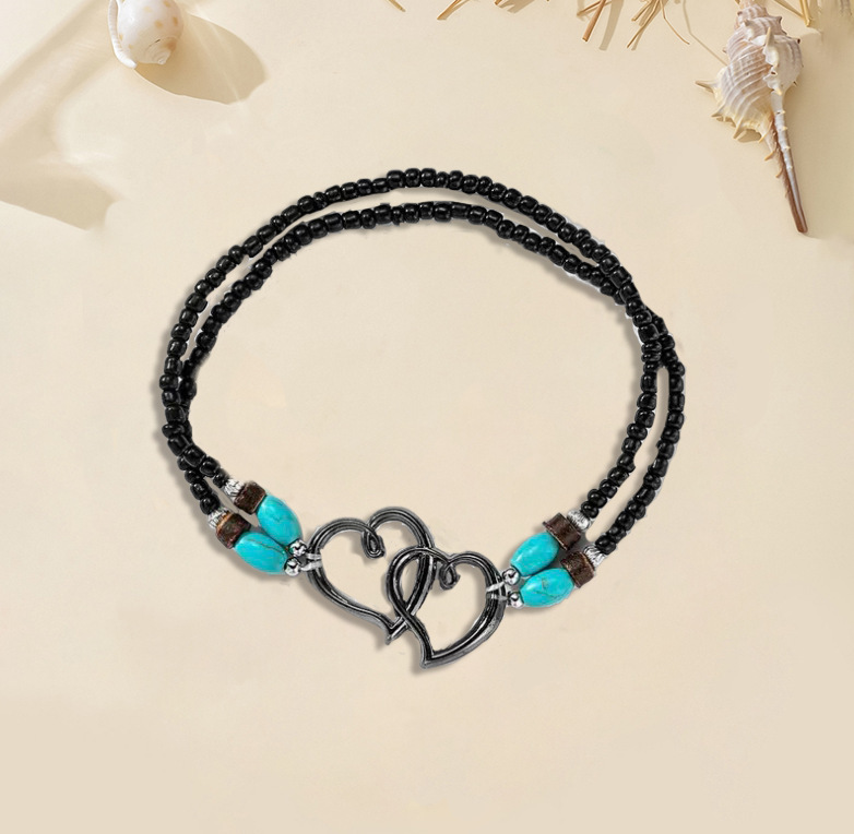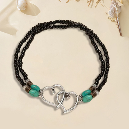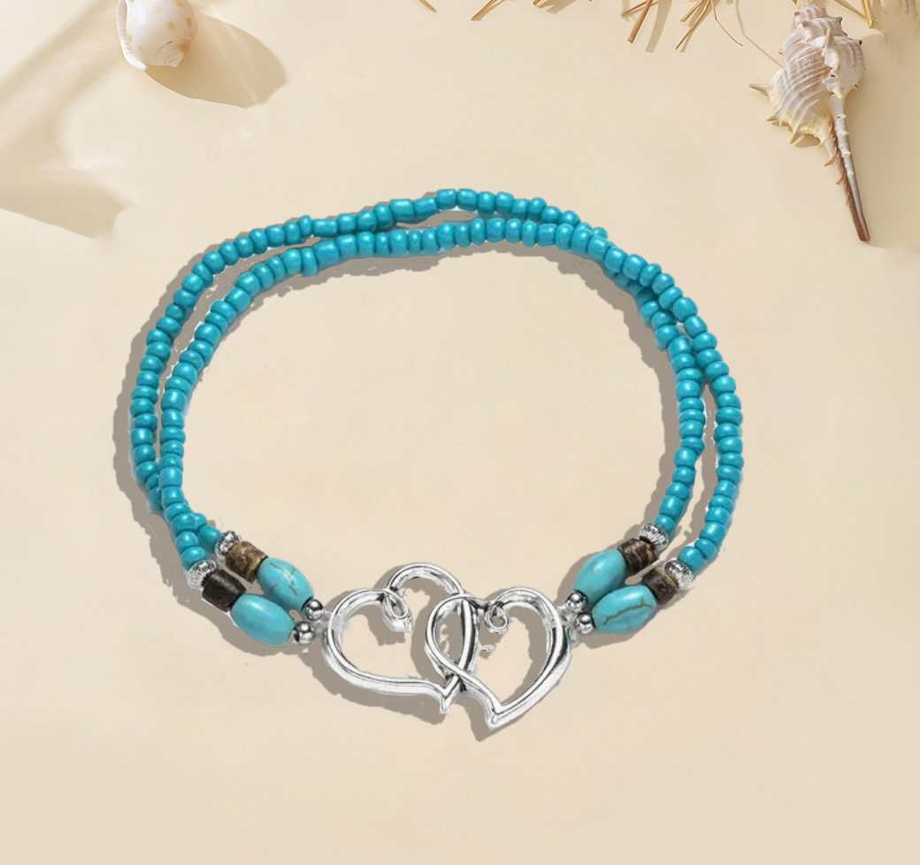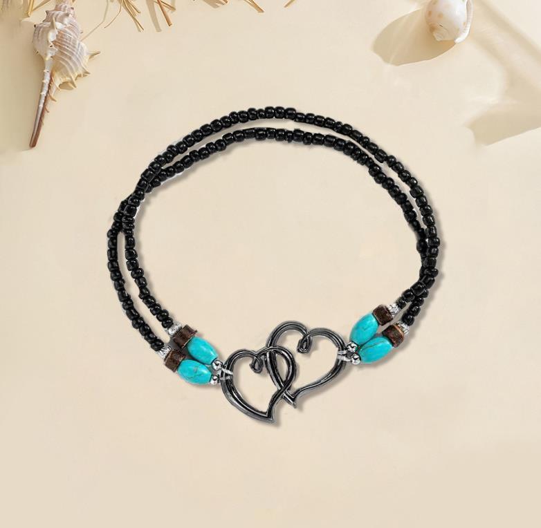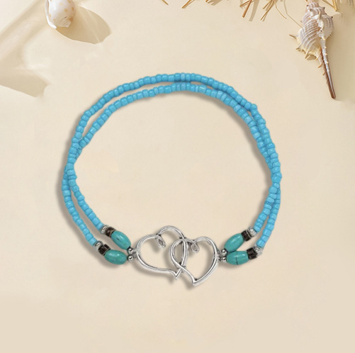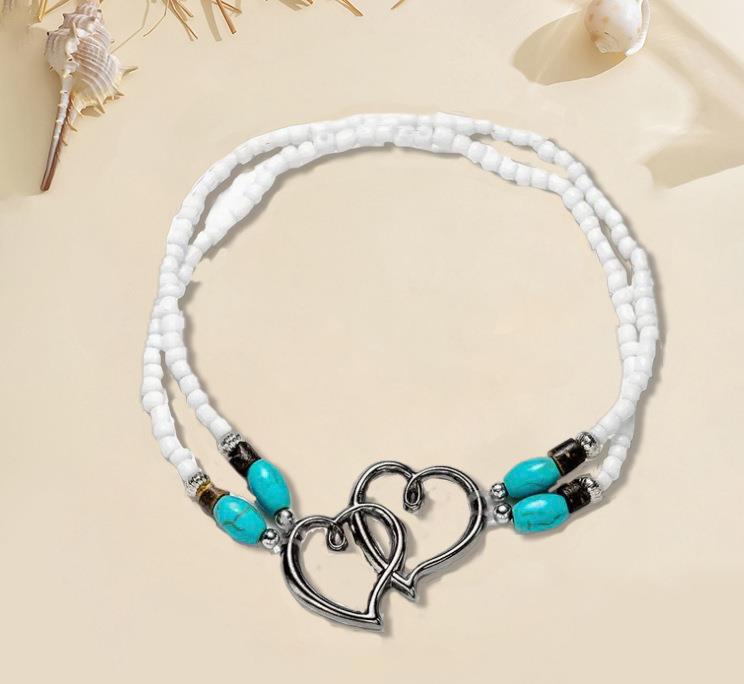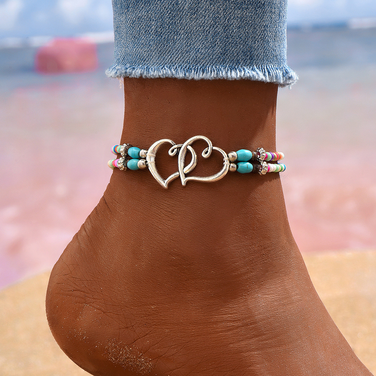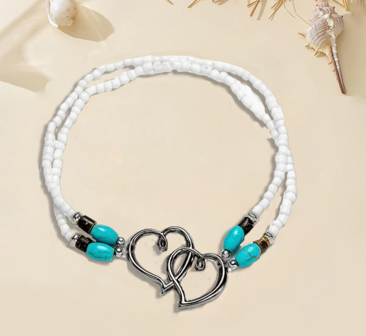 跨境欧美沙滩风脚饰时尚叠戴式爱心米珠脚链心连心松石椰壳脚链女