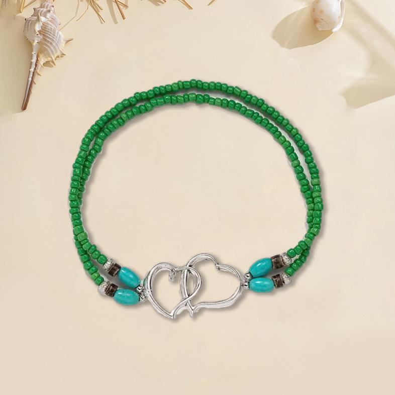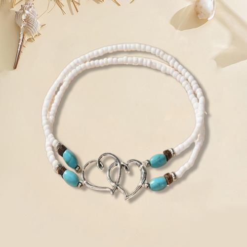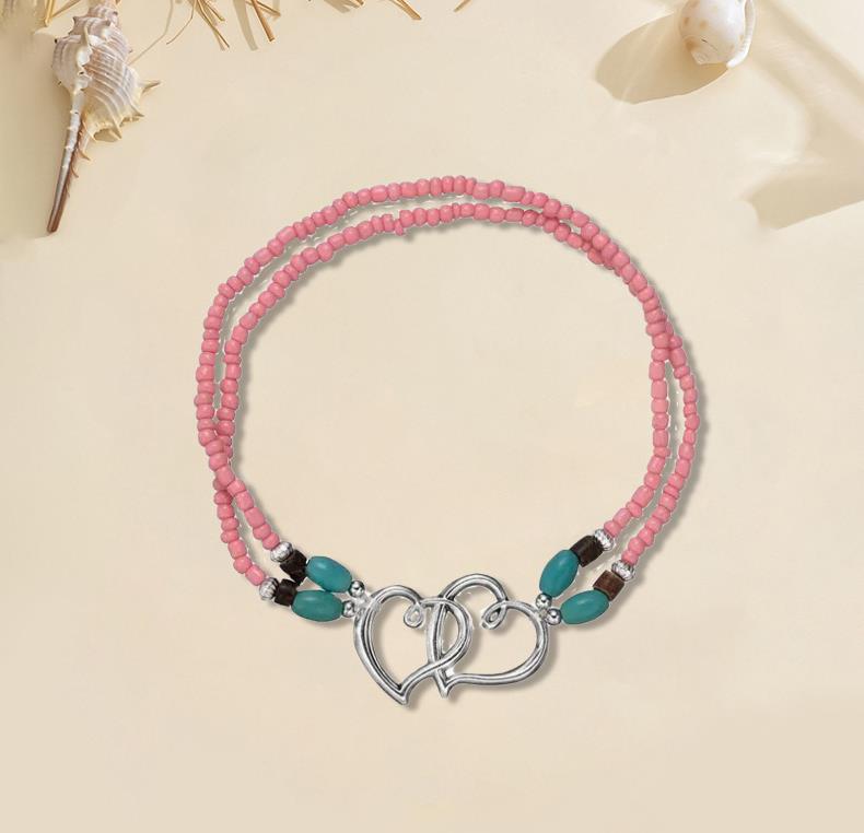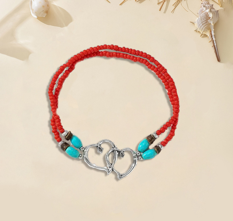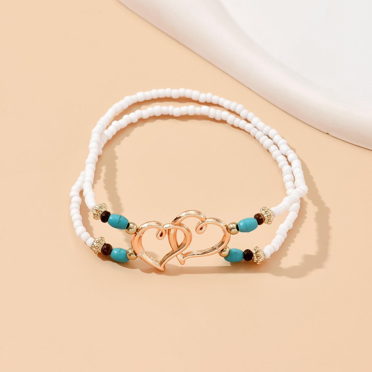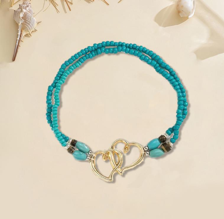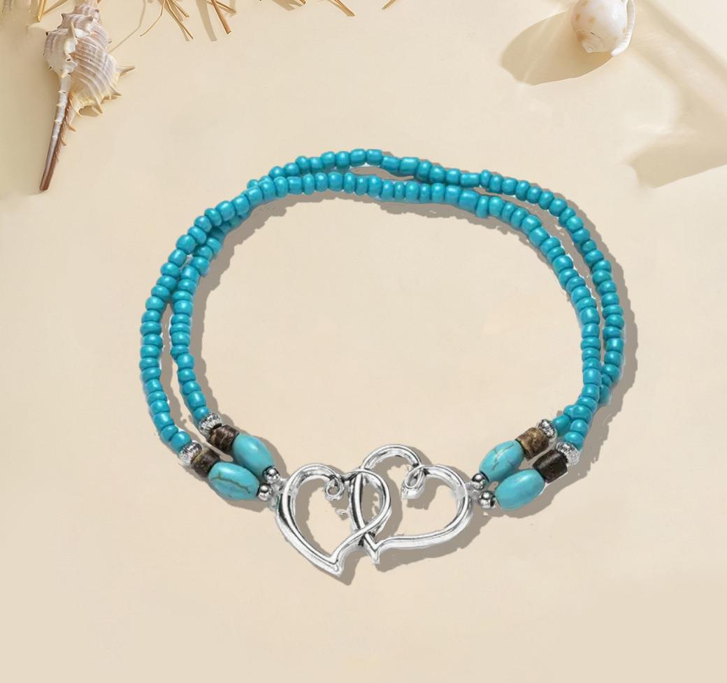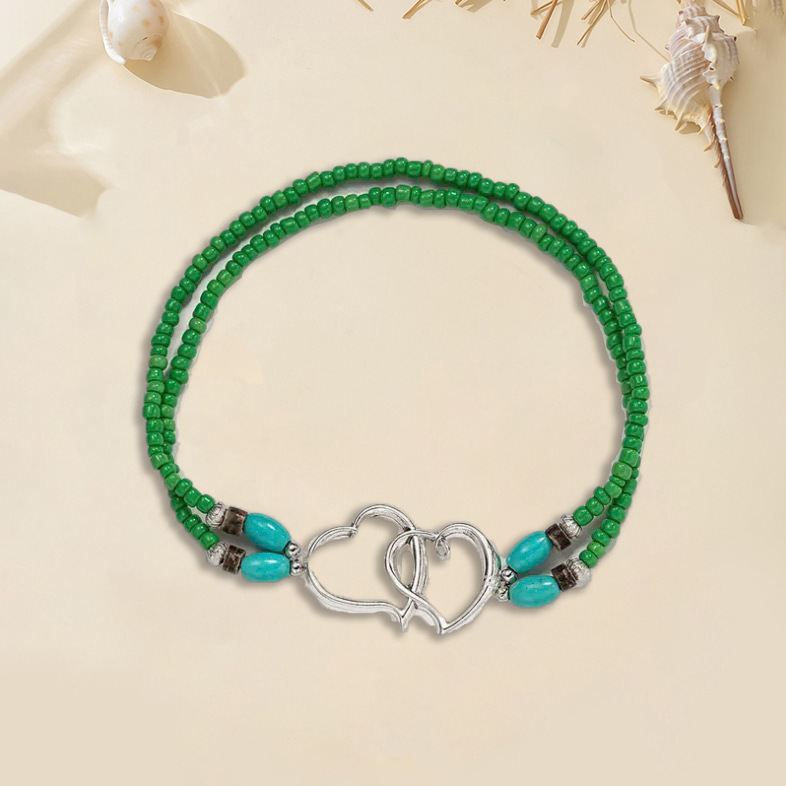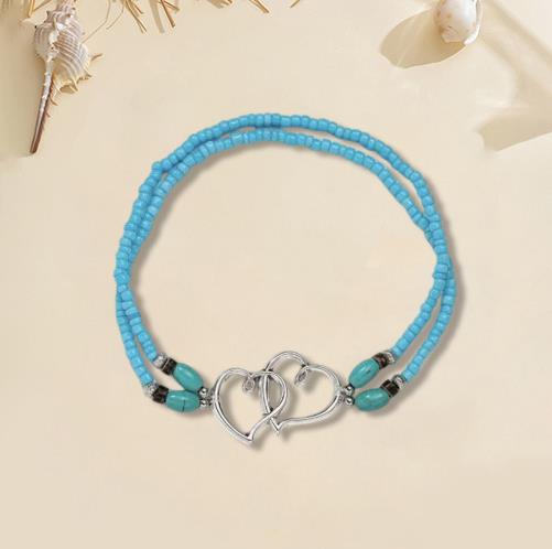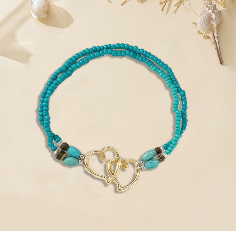 跨境欧美沙滩风脚饰时尚叠戴式爱心米珠脚链心连心松石椰壳脚链女