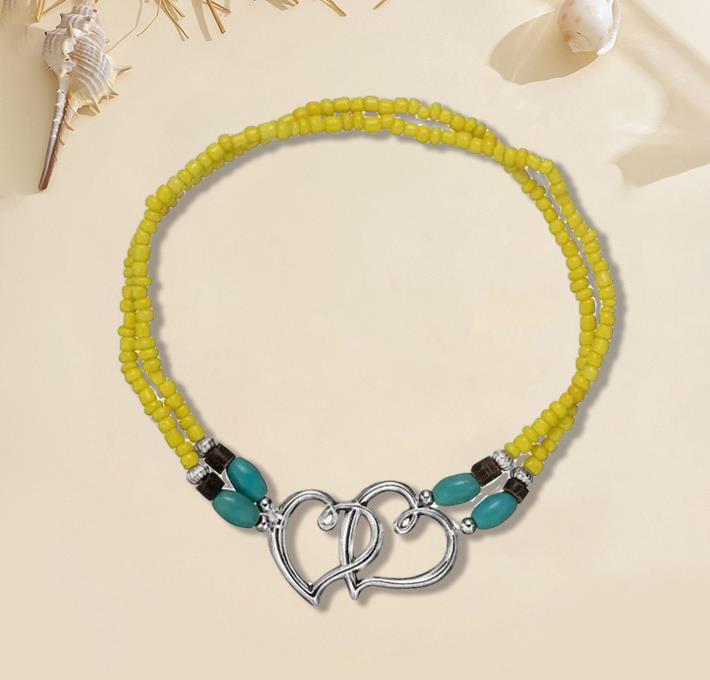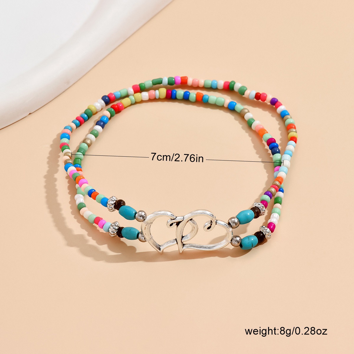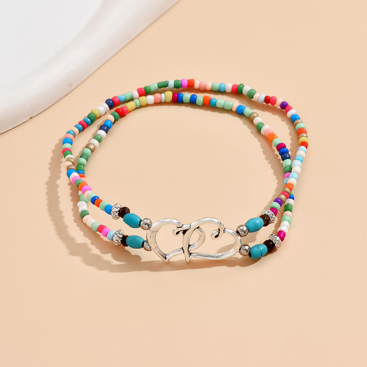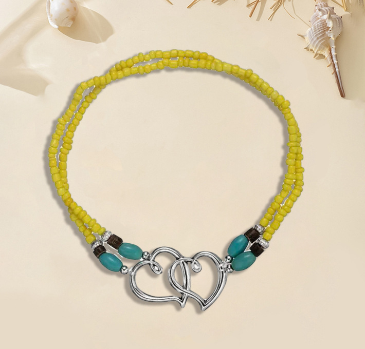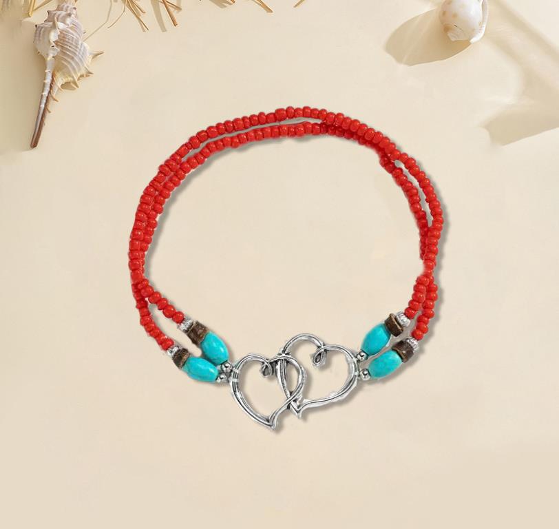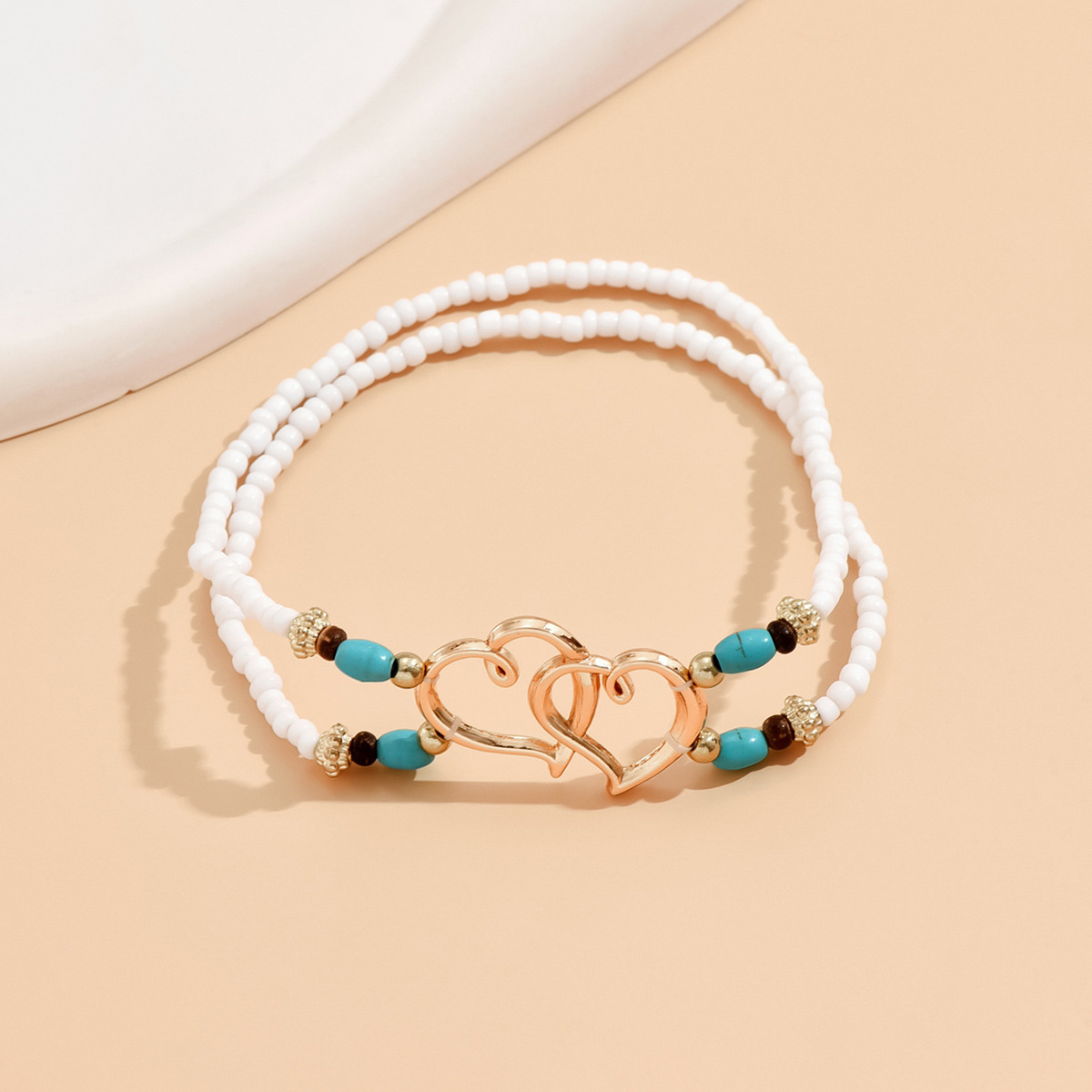 跨境欧美沙滩风脚饰时尚叠戴式爱心米珠脚链心连心松石椰壳脚链女