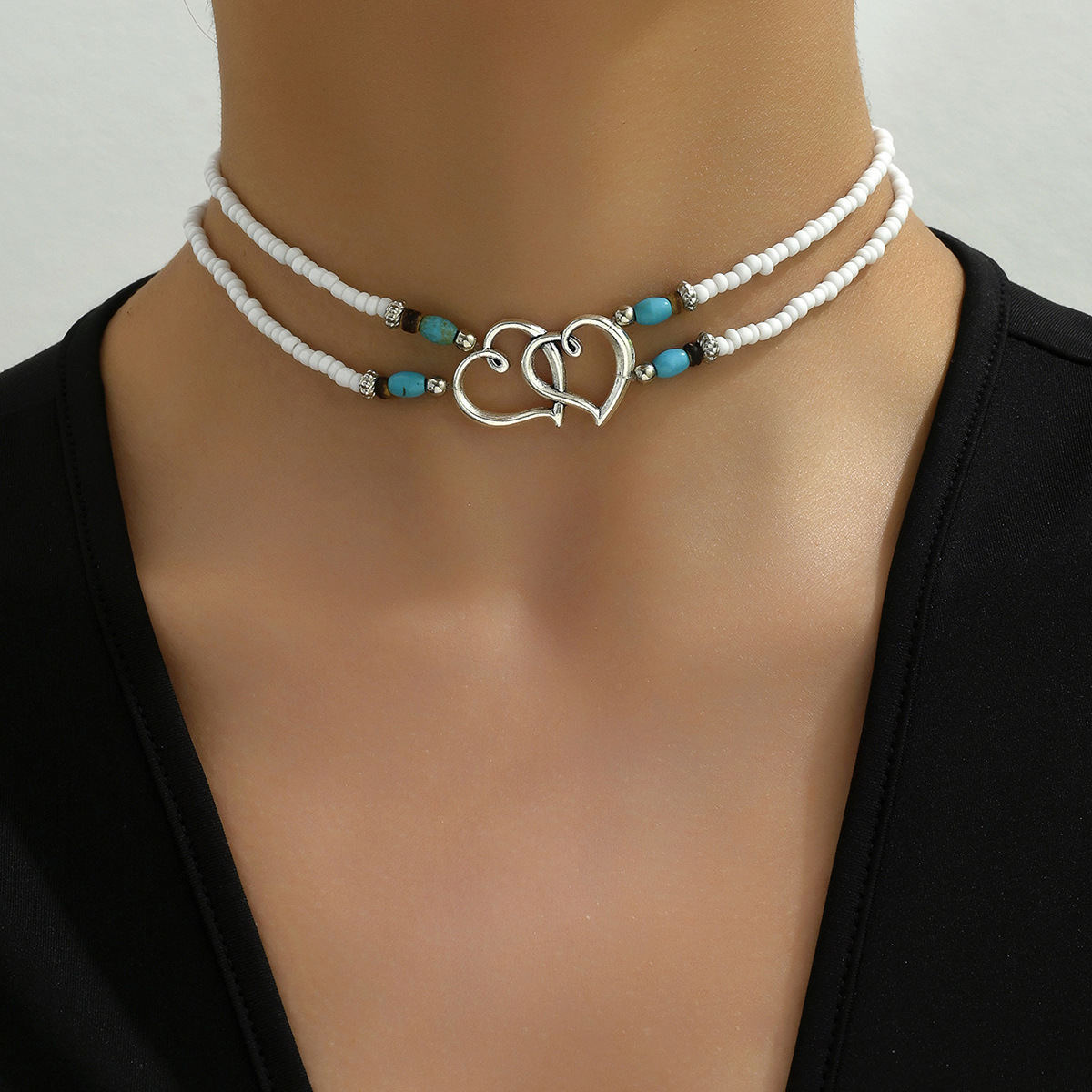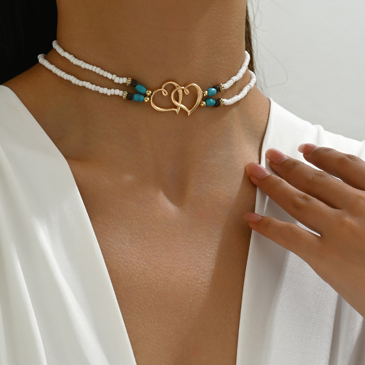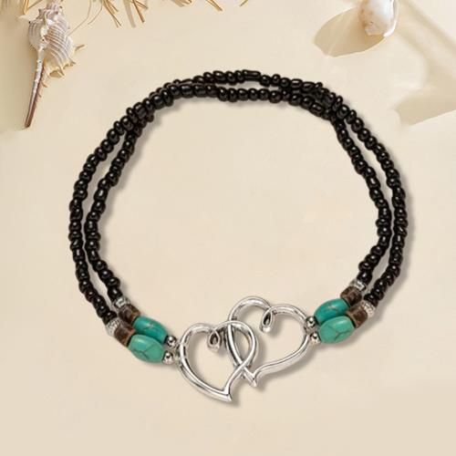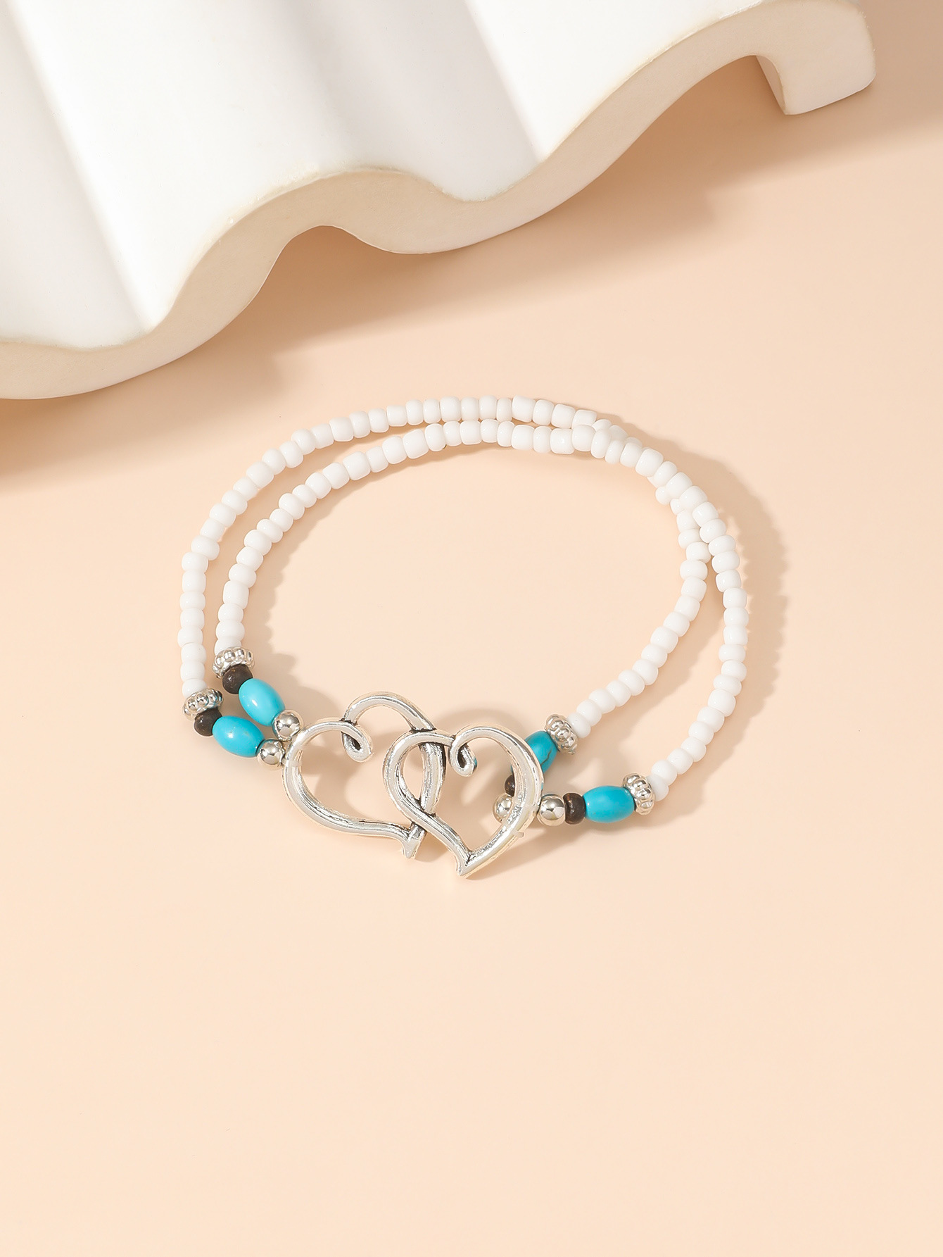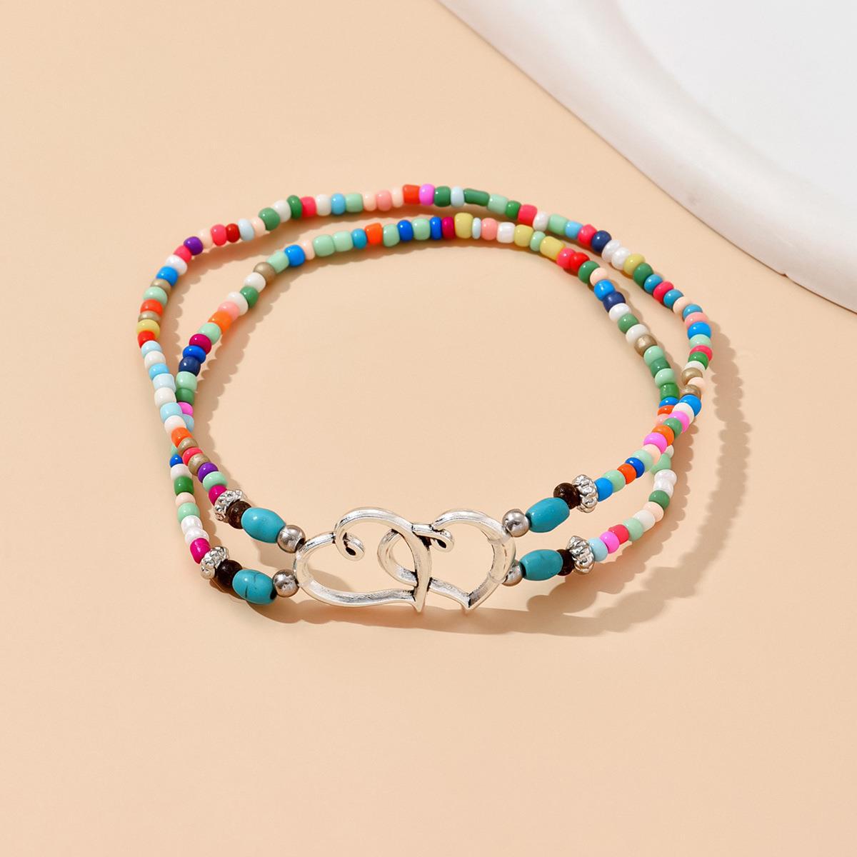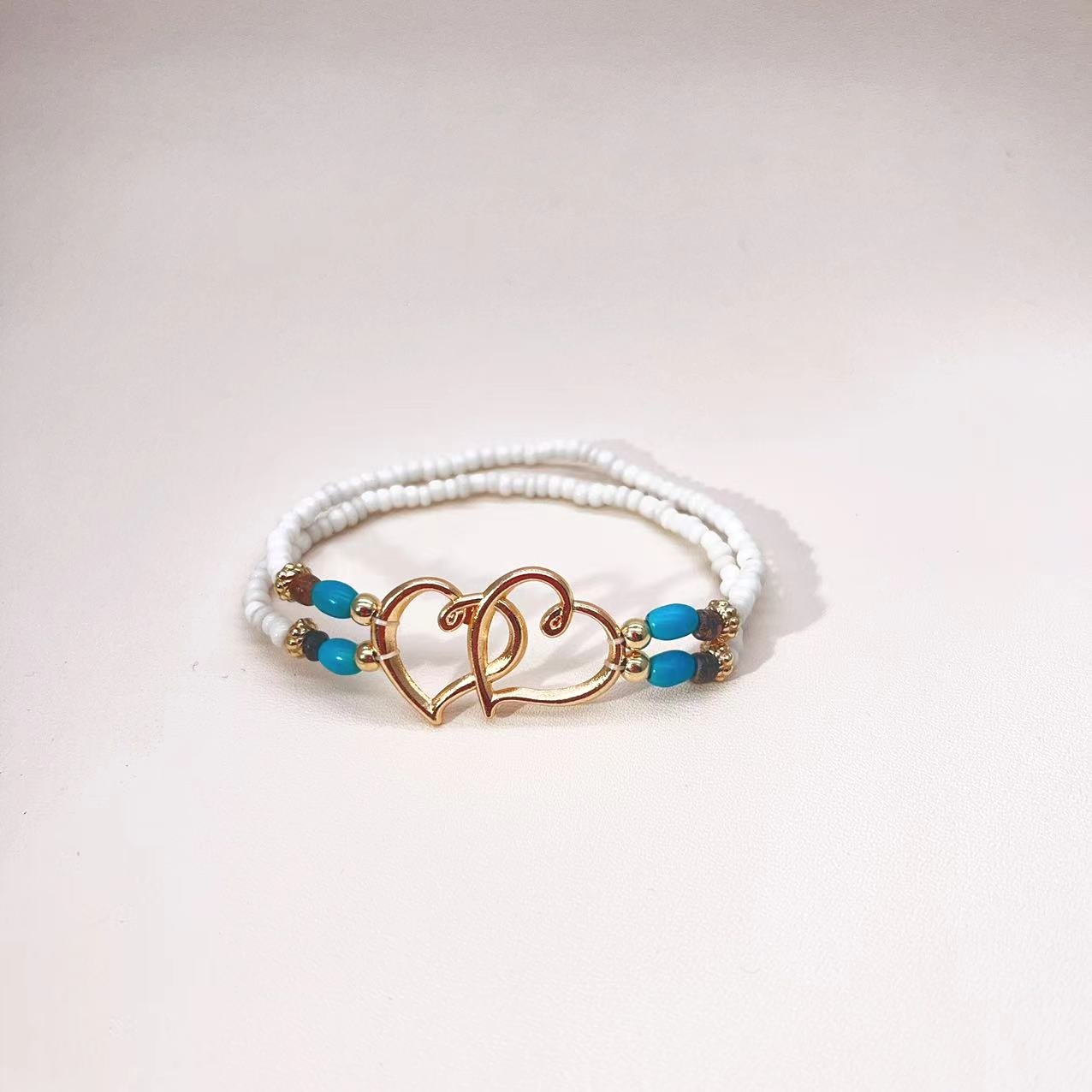 跨境欧美沙滩风脚饰时尚叠戴式爱心米珠脚链心连心松石椰壳脚链女