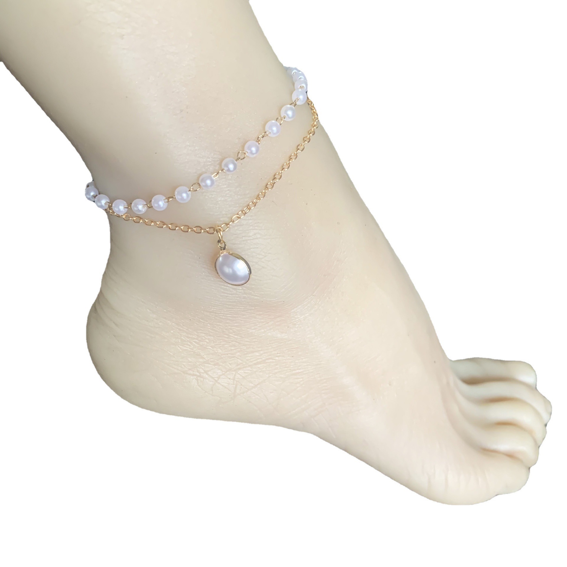 韩版ins超仙小众设计女性时尚气质饰品厂家直供 双层珍珠吊坠脚链