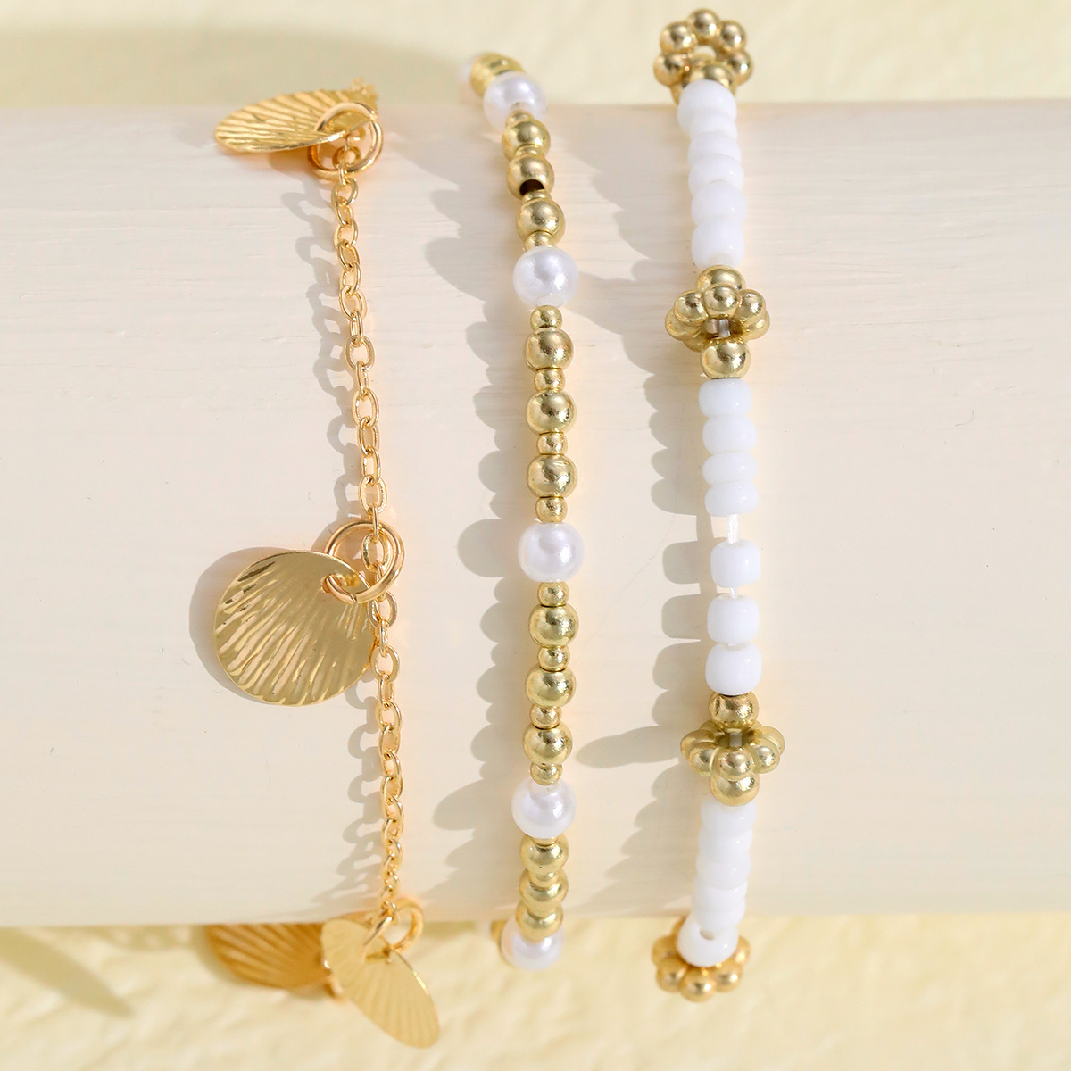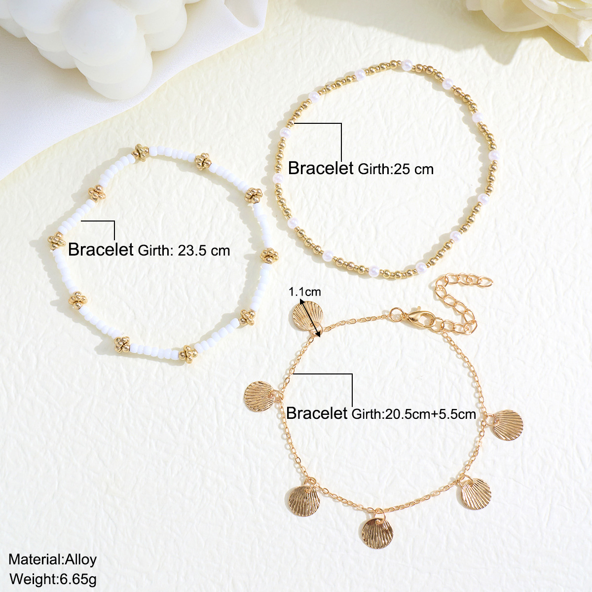 跨境热销波西米亚沙滩度假风米珠贝壳多层脚链套装3件套temu热卖