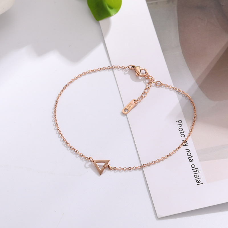 跨境热卖三角形双环手链时尚气质流行个性钛钢脚链女不掉色批发