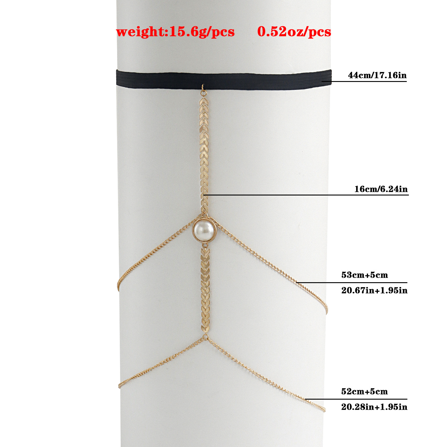 欧美风性感弹力带飞机链条沙滩腿环身体链简约多层珍珠流苏大腿链