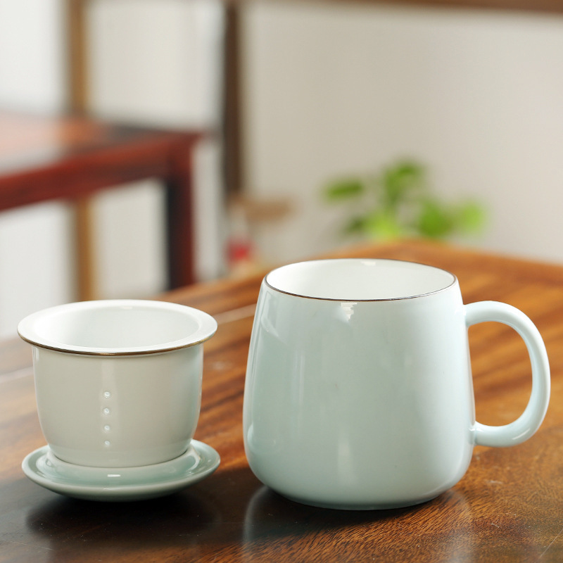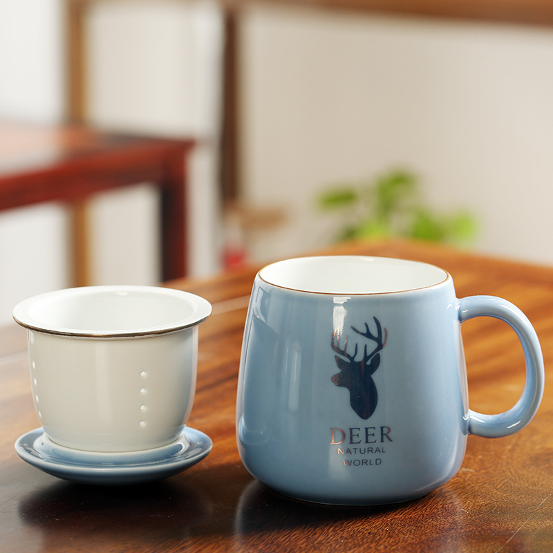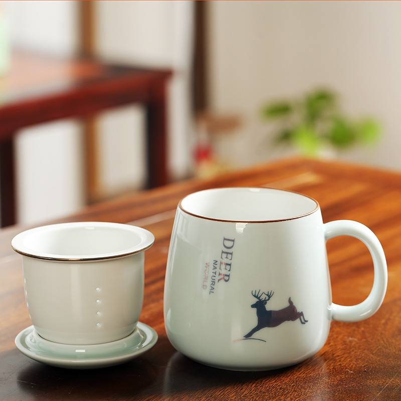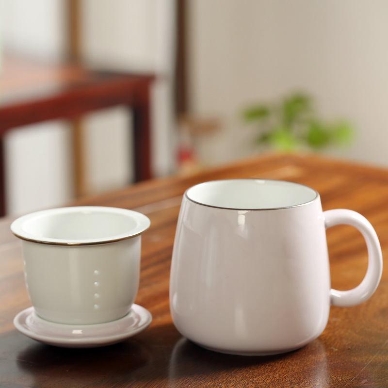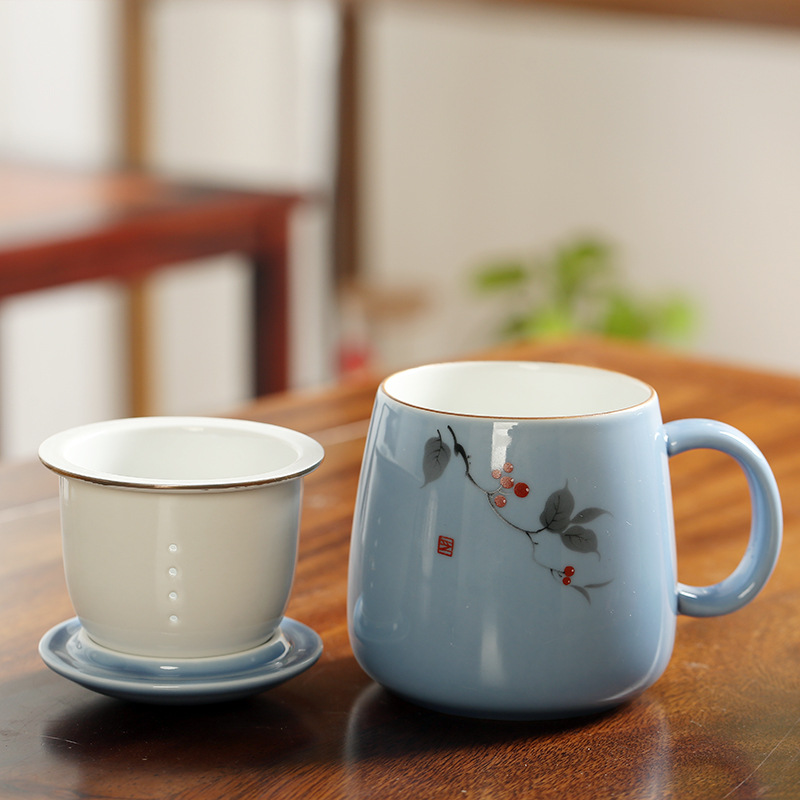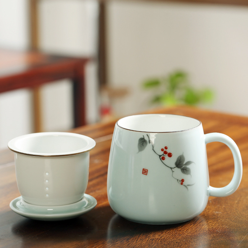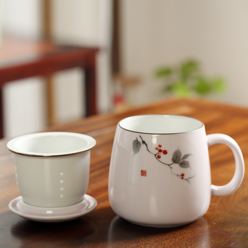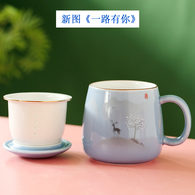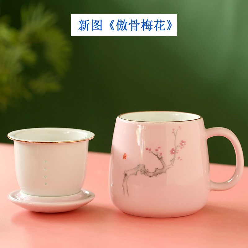 陶瓷花茶水杯女茶水分离杯马克杯带过滤办公室泡茶杯刻字印制logo