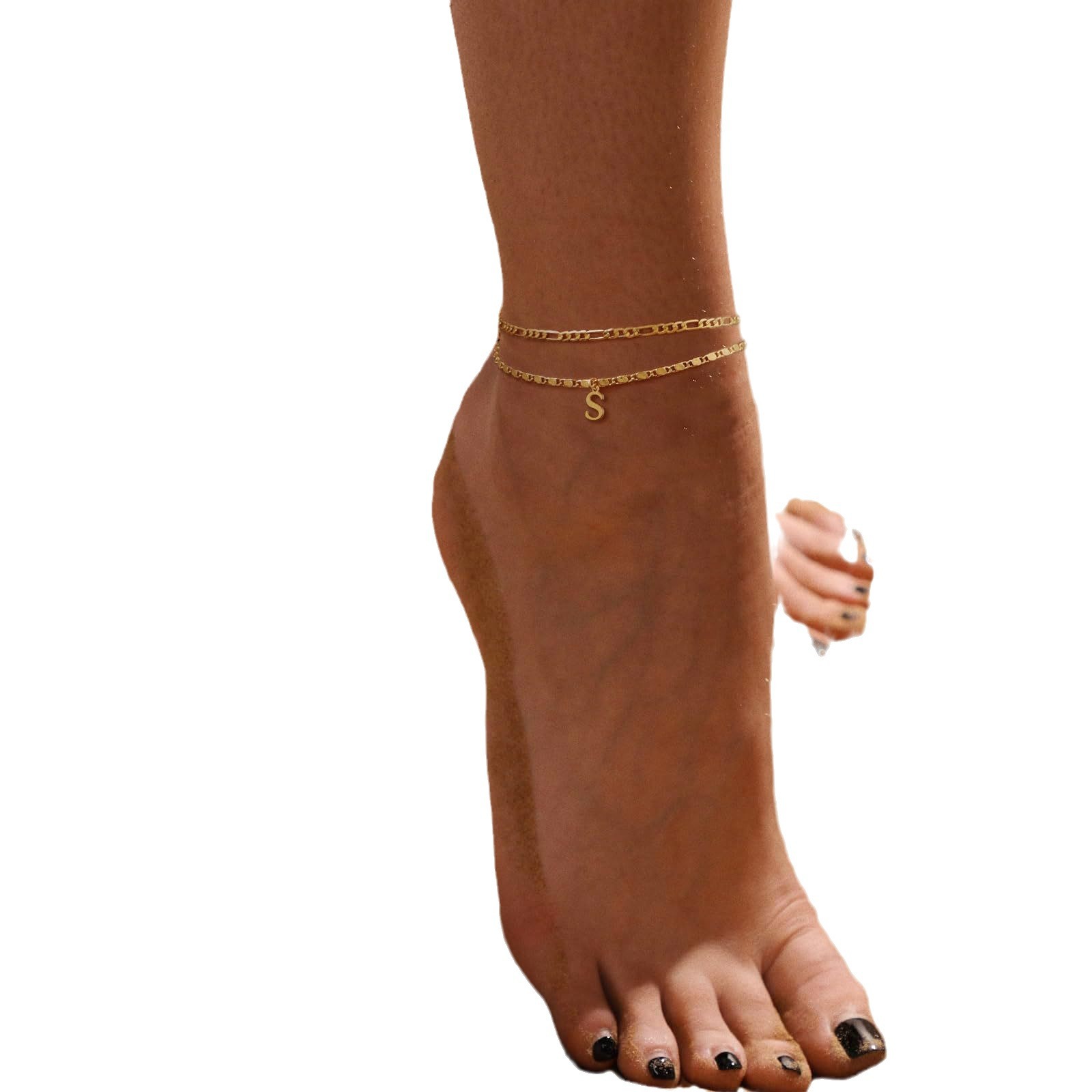 新款亚马逊热卖夏日沙滩风26个字母脚链套装 金色女士百搭脚链款