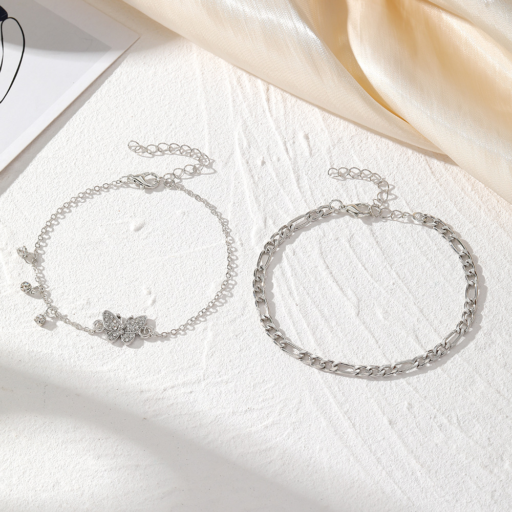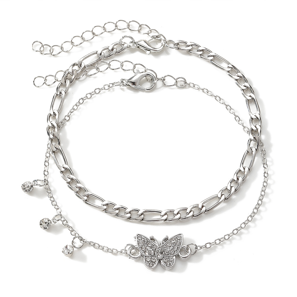 跨境新款复古个性蝴蝶沙滩脚链套装女 欧美风小众时尚高级感脚饰