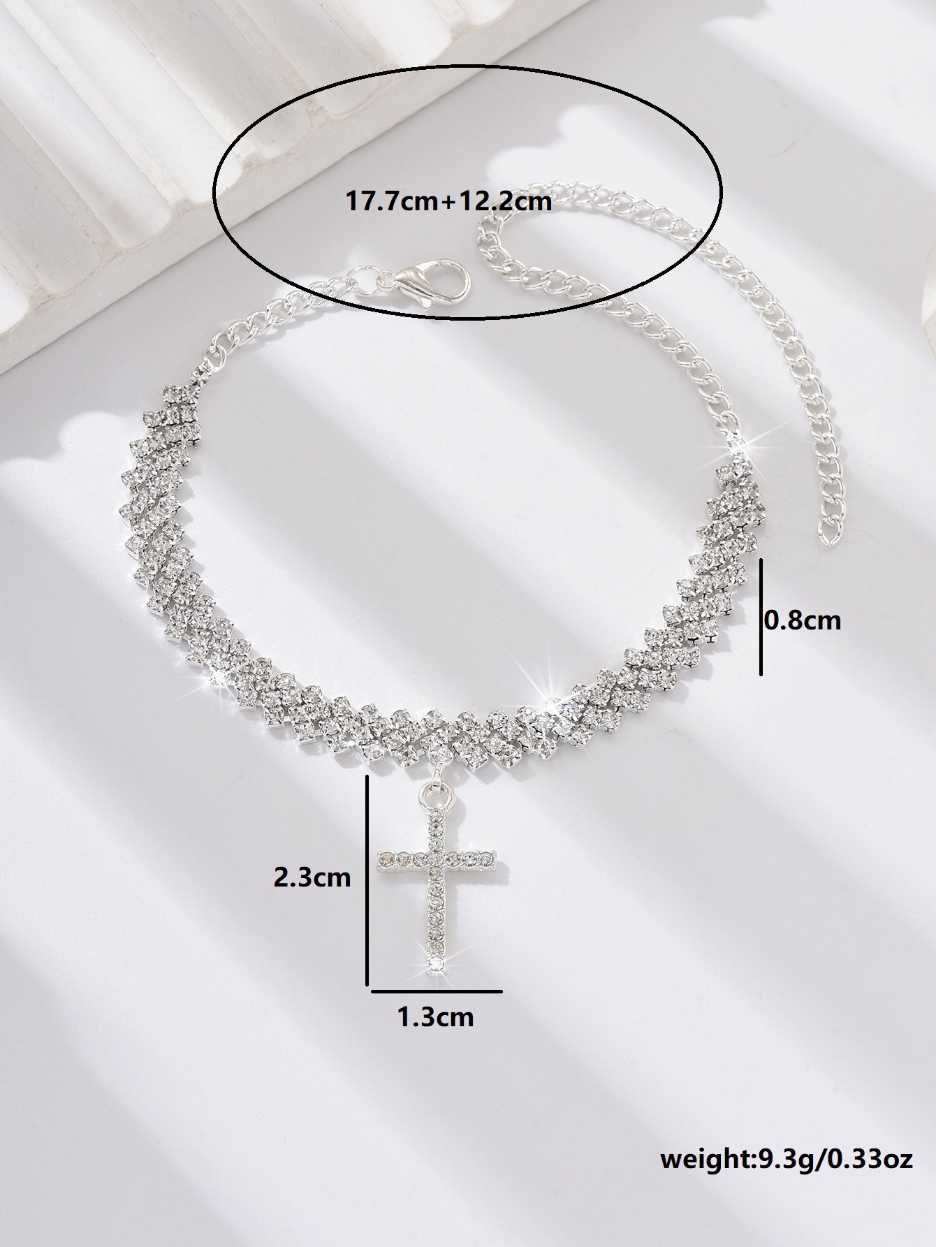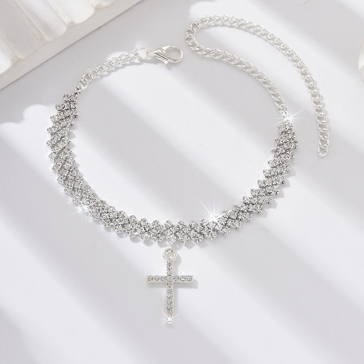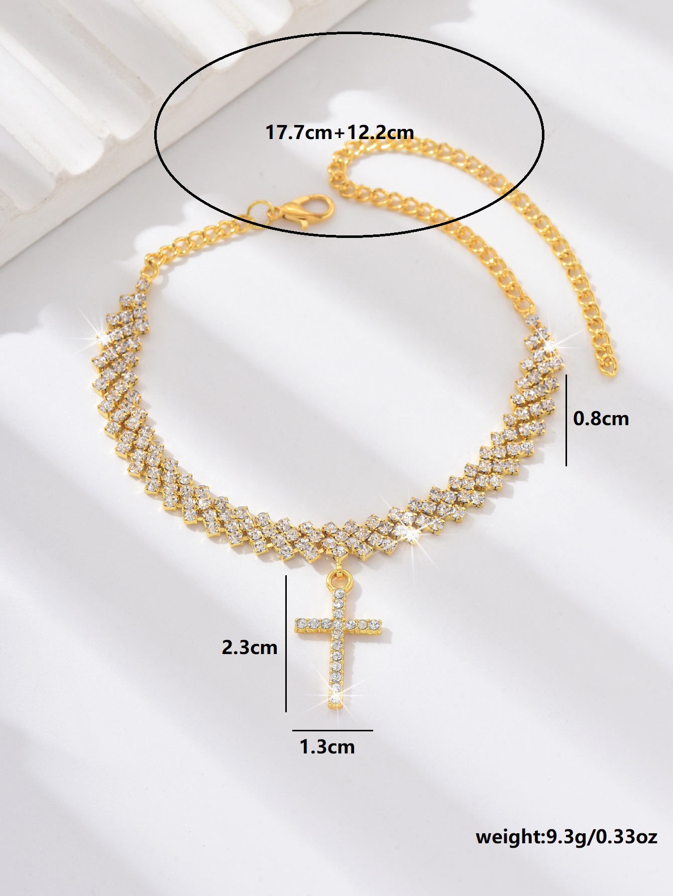 欧美热销品波西米亚时尚脚链水钻十字架高跟鞋吊坠闪亮沙滩