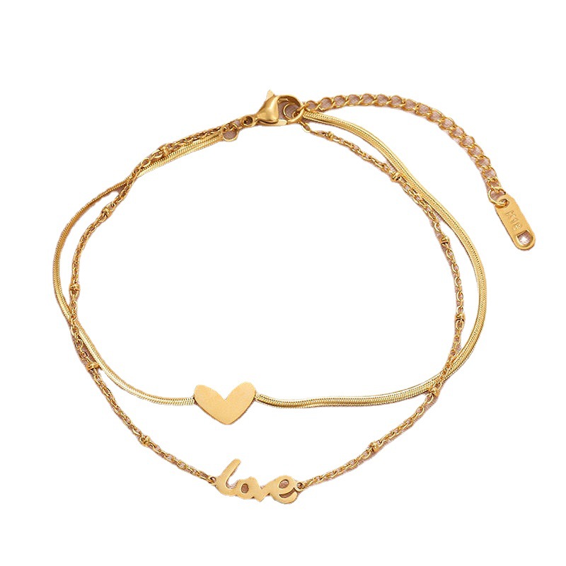 2023年新款潮流双面钛钢双层爱心脚链女时尚镀18K金百搭简约脚饰