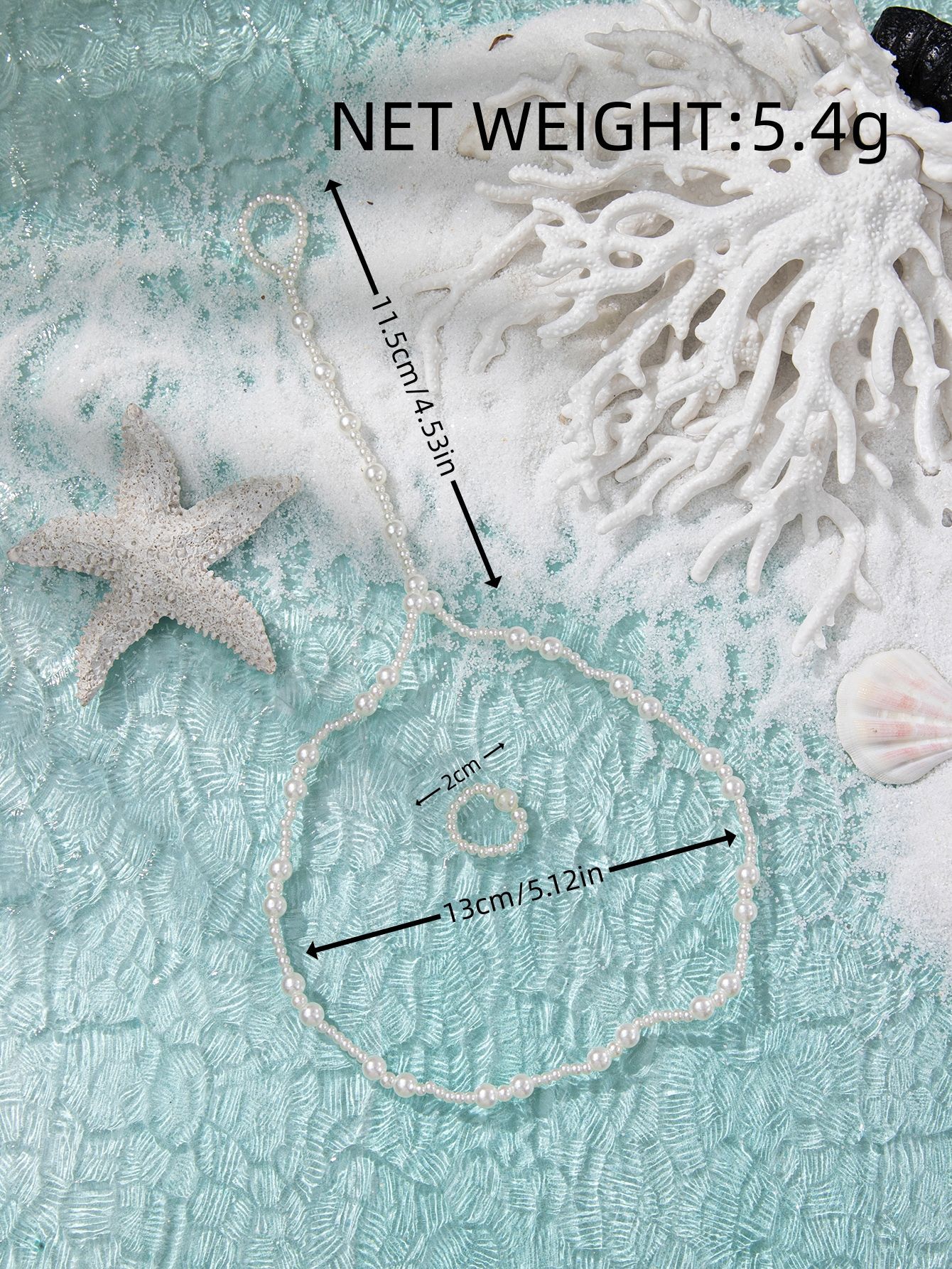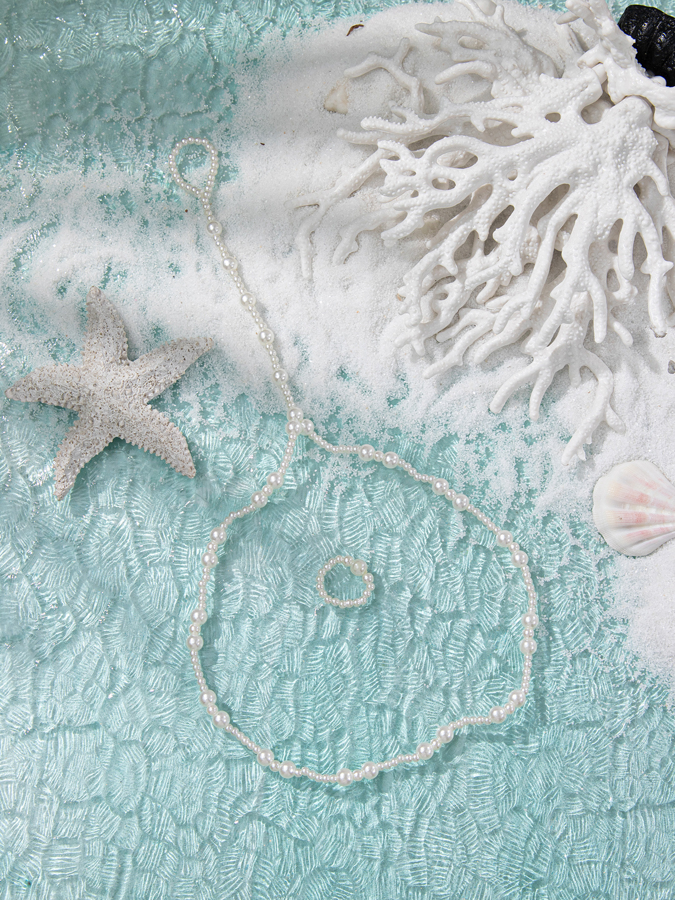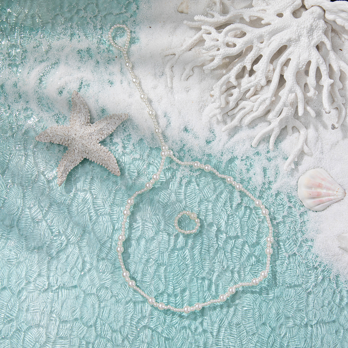 ebay速卖通欧美新款热卖时尚简约双层 沙滩脚链珍珠脚戒指两件套