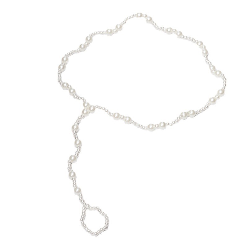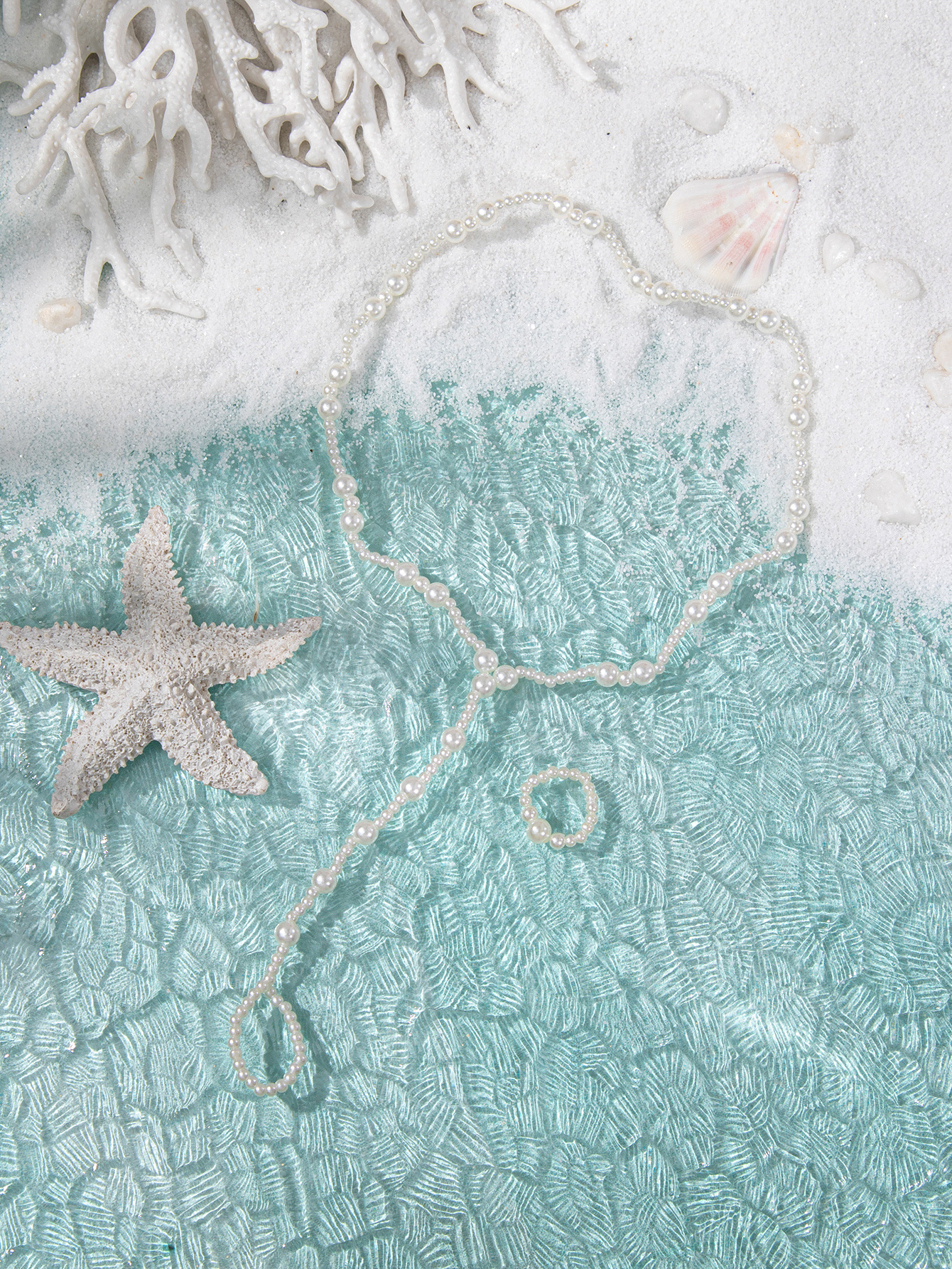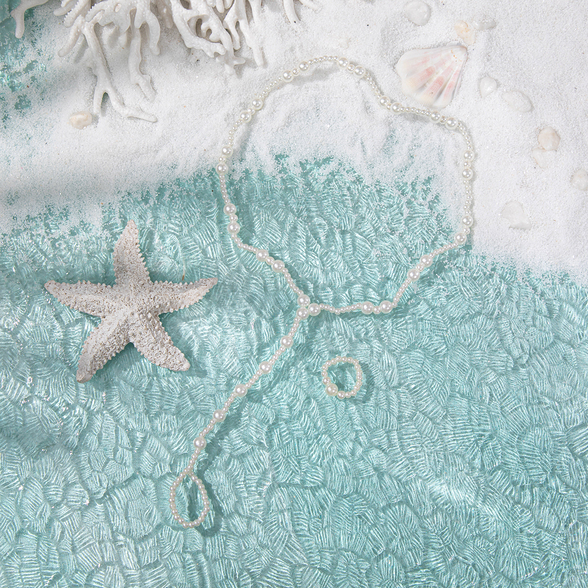 ebay速卖通欧美新款热卖时尚简约双层 沙滩脚链珍珠脚戒指两件套