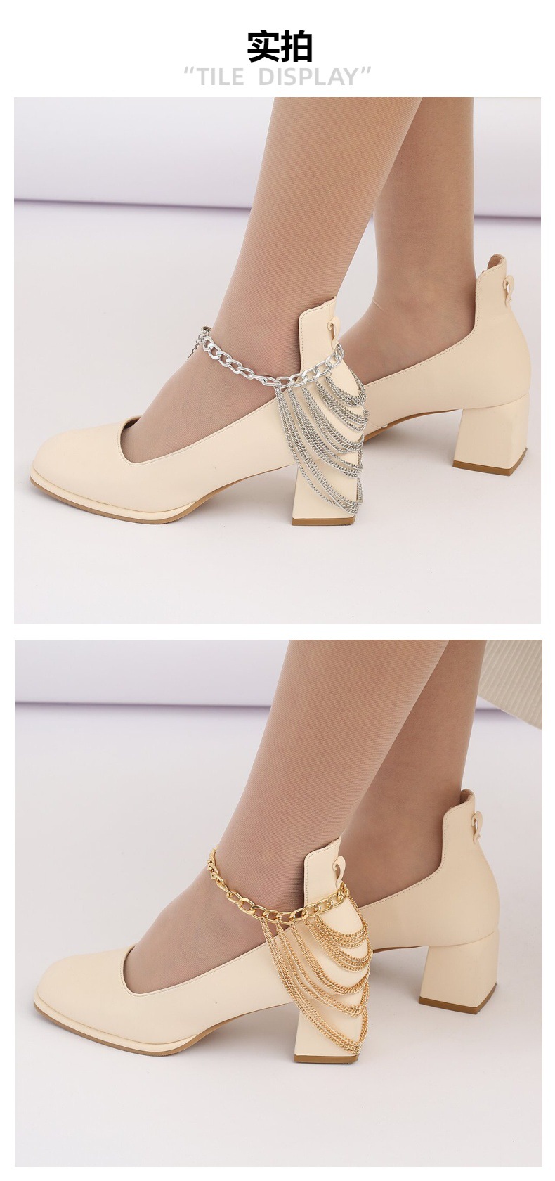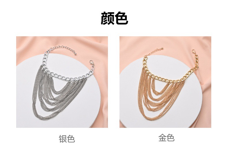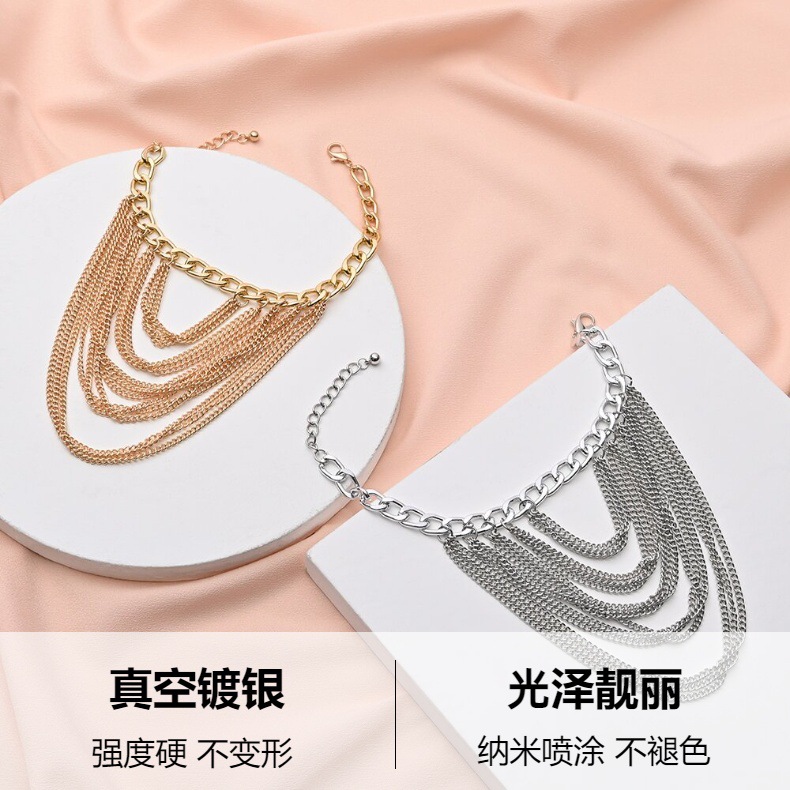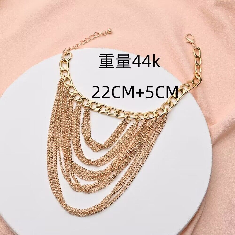 跨境欧美多层流苏个性脚链女嘻哈朋克风金属鞋链配饰厂家现货批发