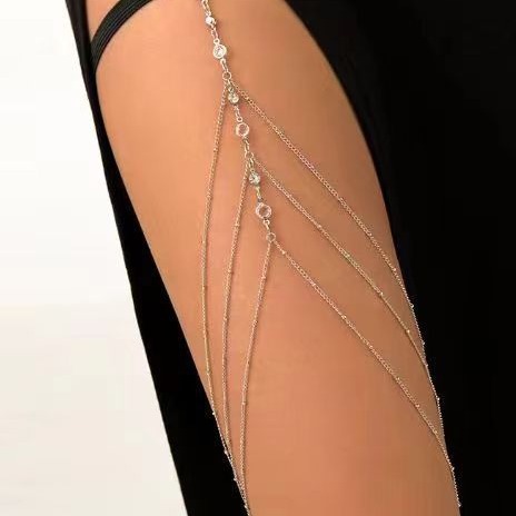 欧美跨境新款三层流苏水晶珍珠金色身体链女 夏季时尚性感沙滩腿