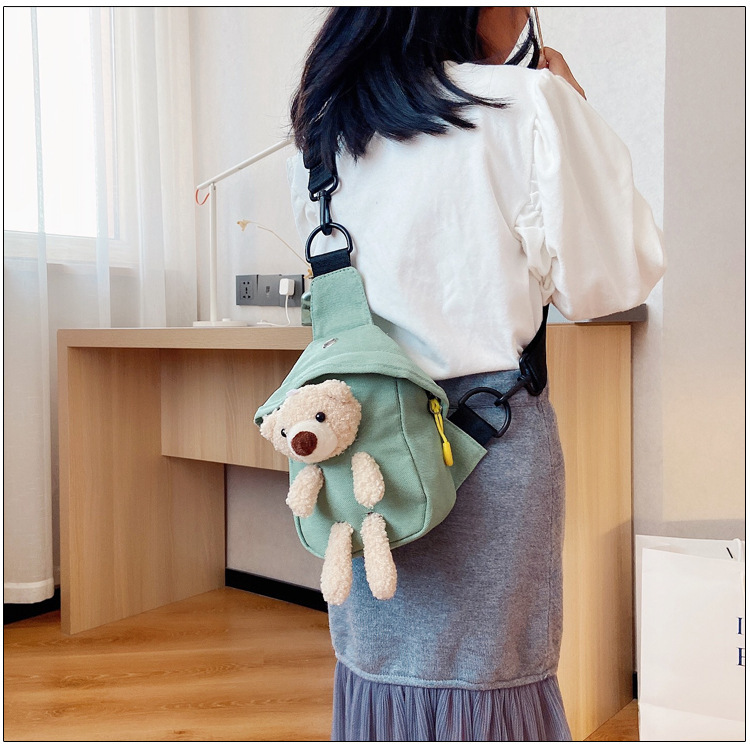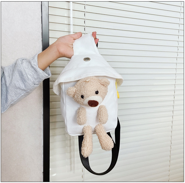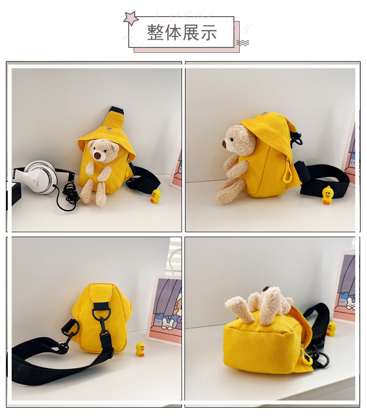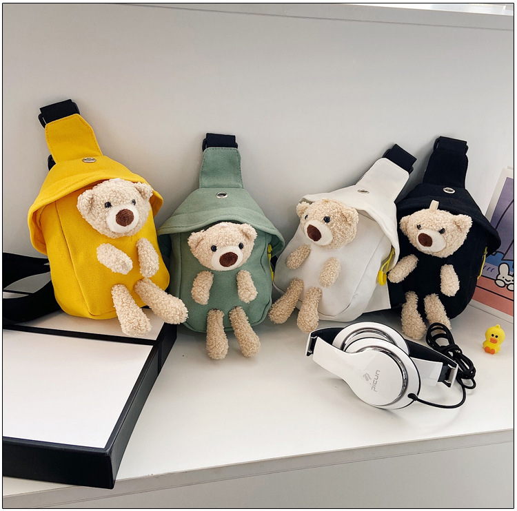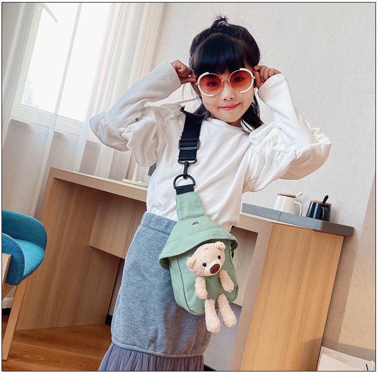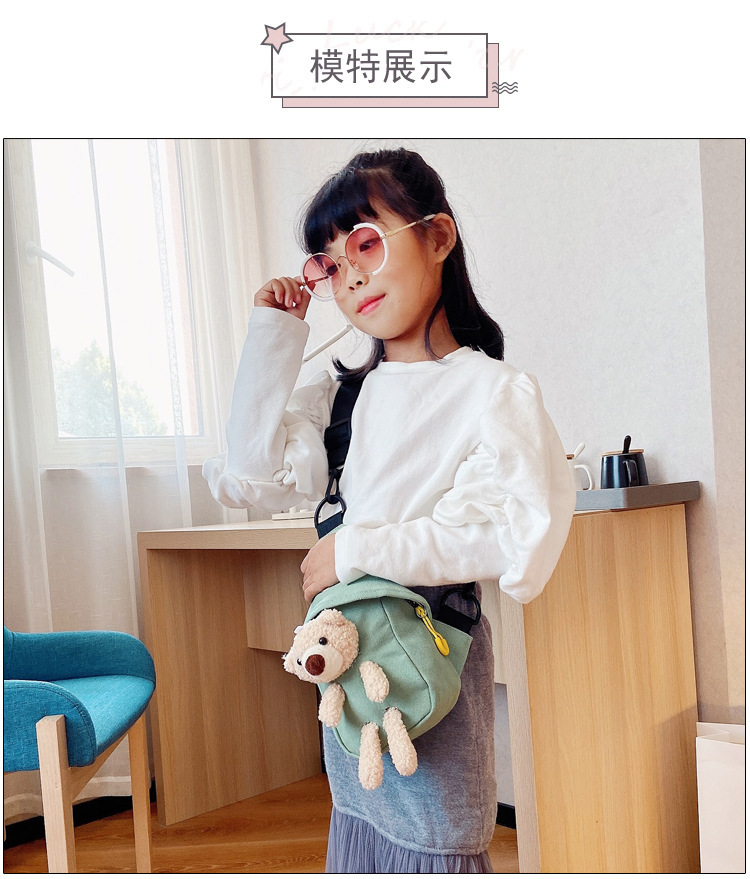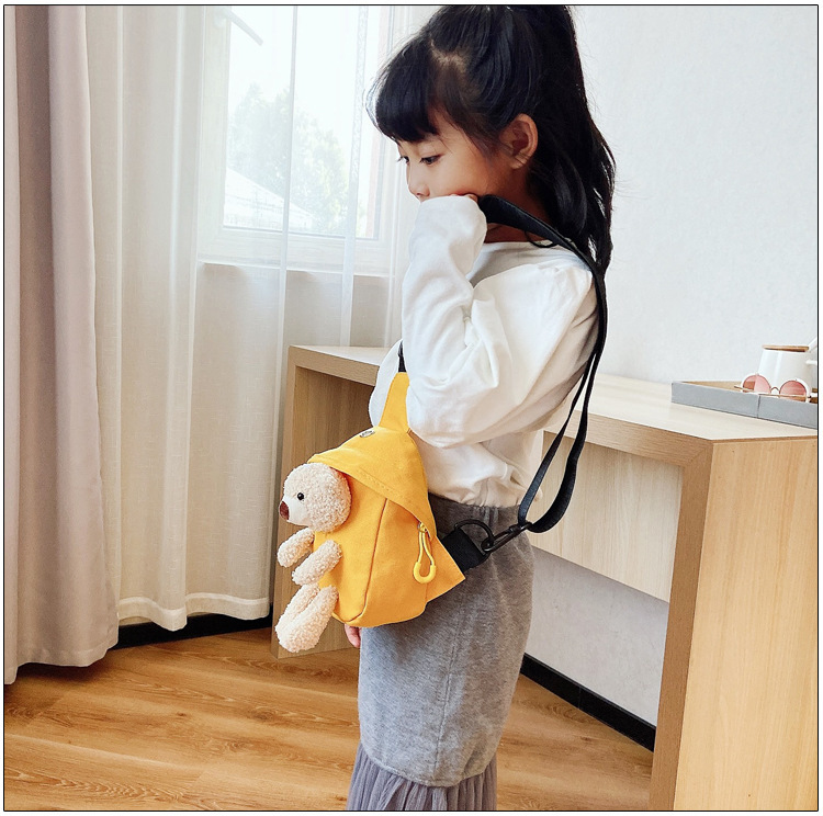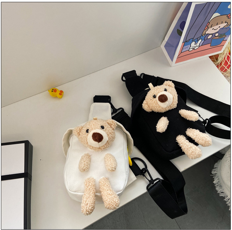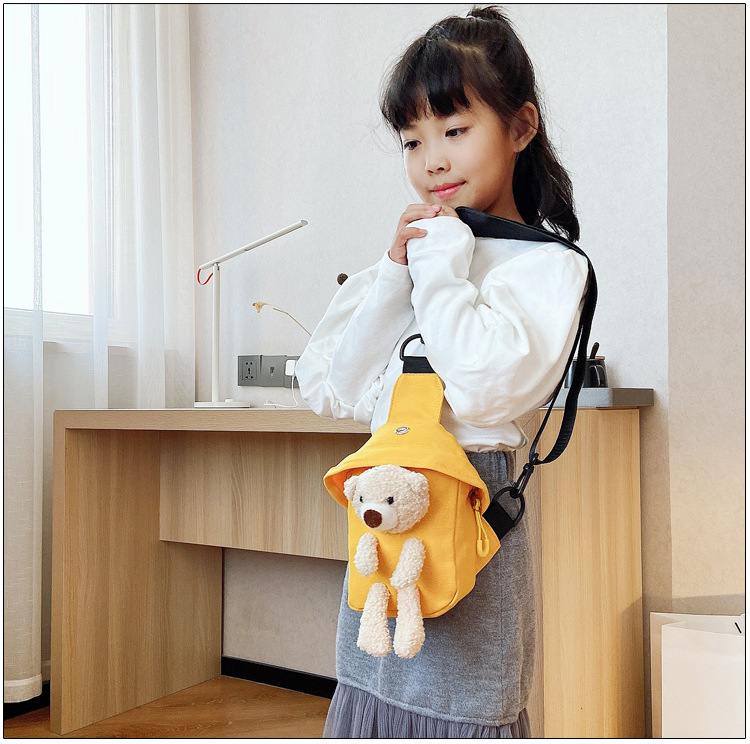 儿童包包2023冬季新款斜挎包可爱小熊胸包韩版男女童帆布包印logo