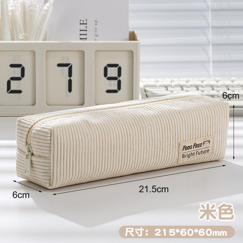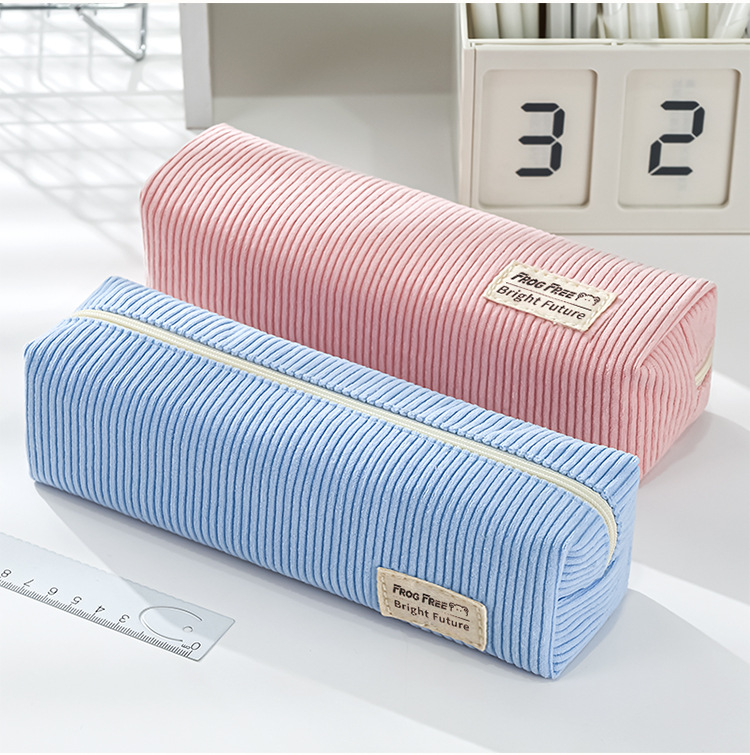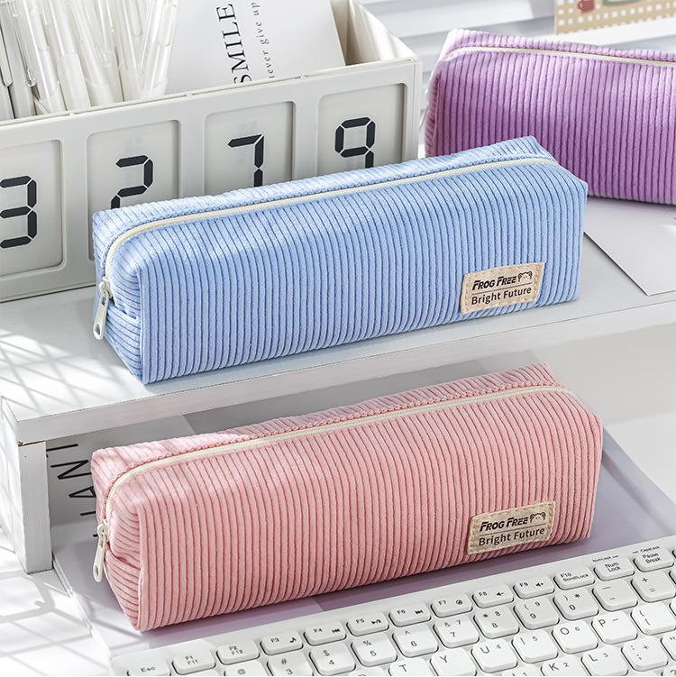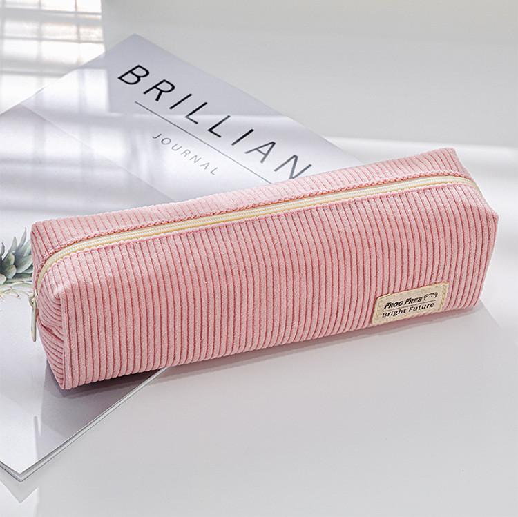 ins新款韩版灯芯绒笔袋简约可爱文具盒小众初中女毛绒文具袋定制