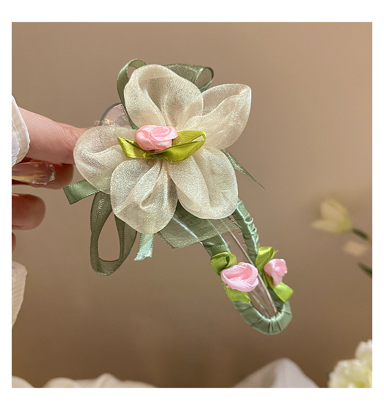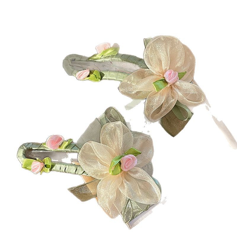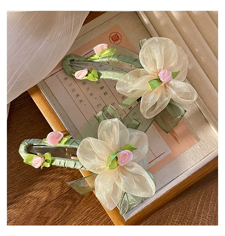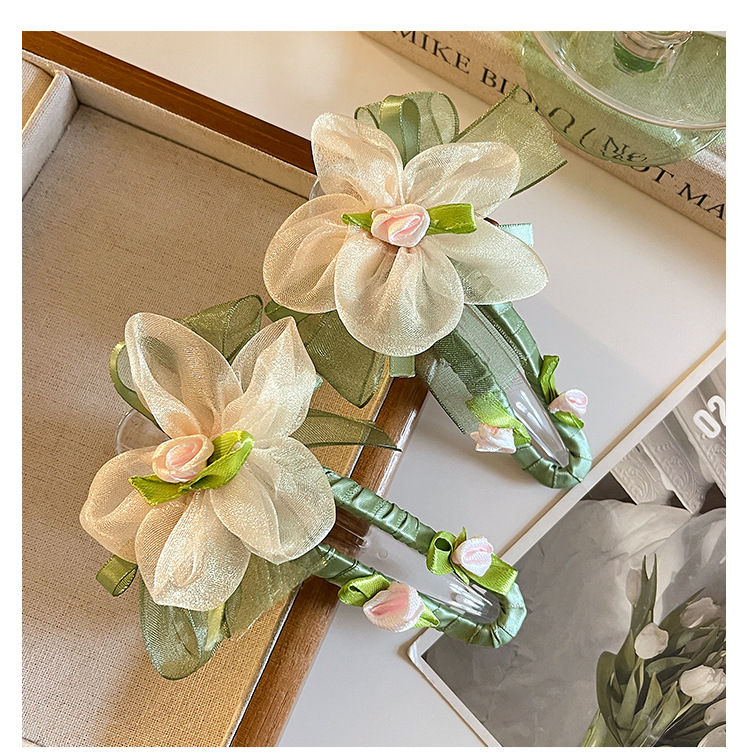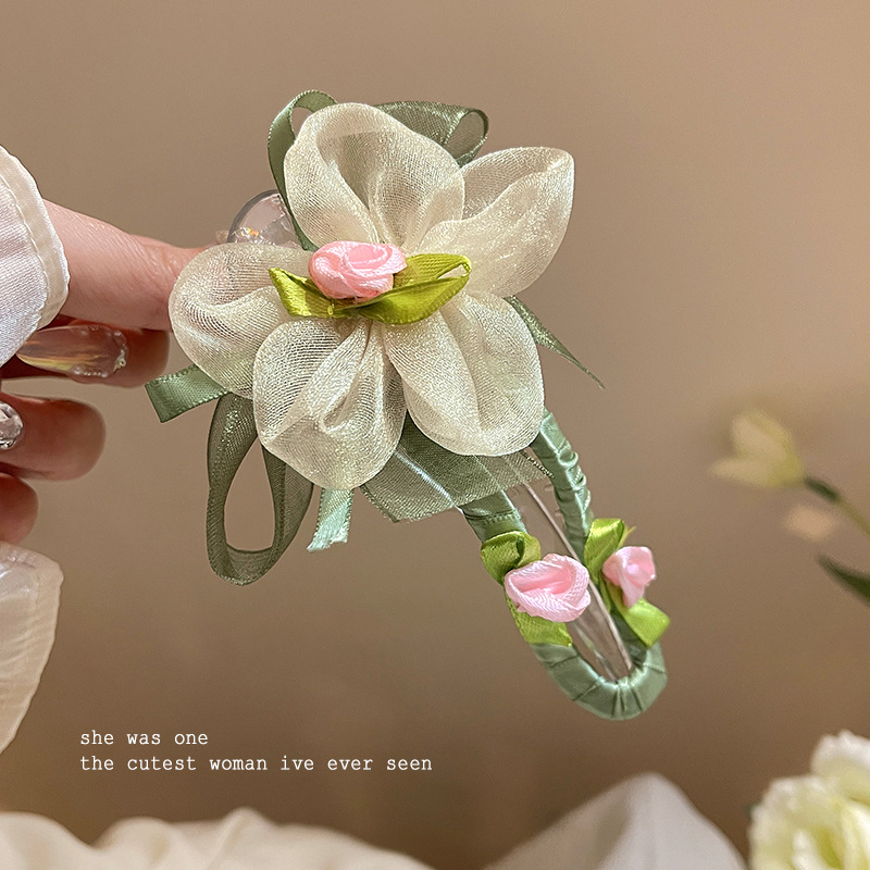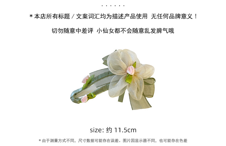 绿色网纱花朵鸭嘴夹发夹女夏季不硌头一字夹发卡后脑勺盘发抓夹子