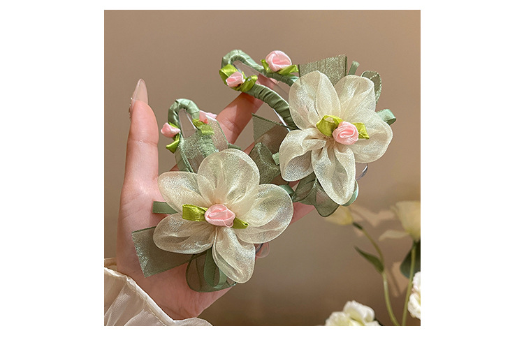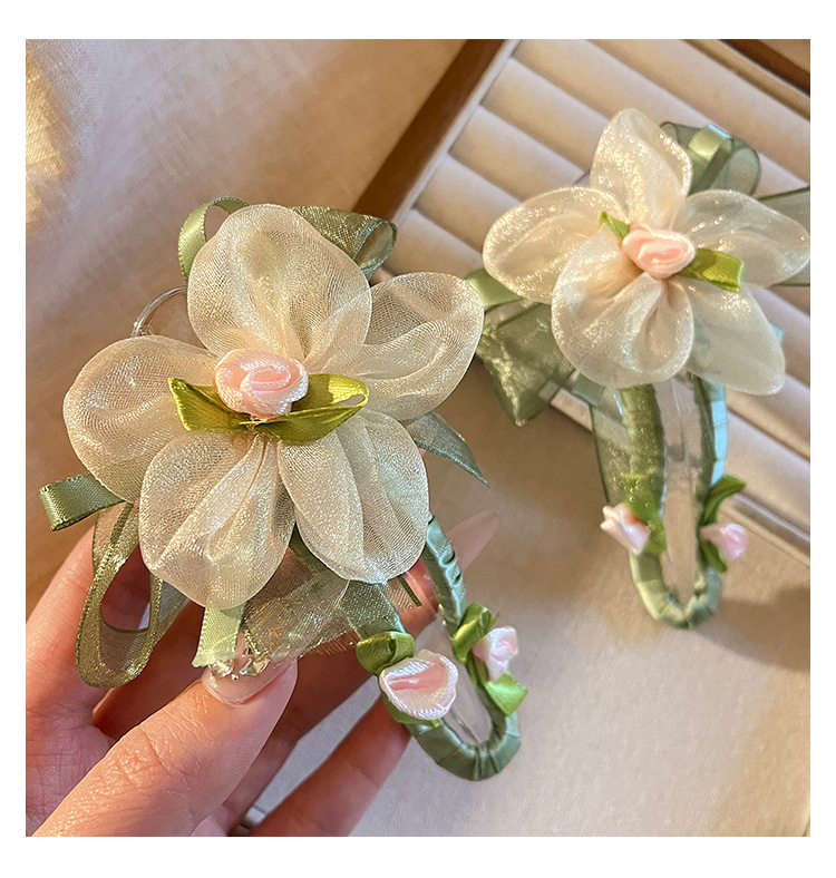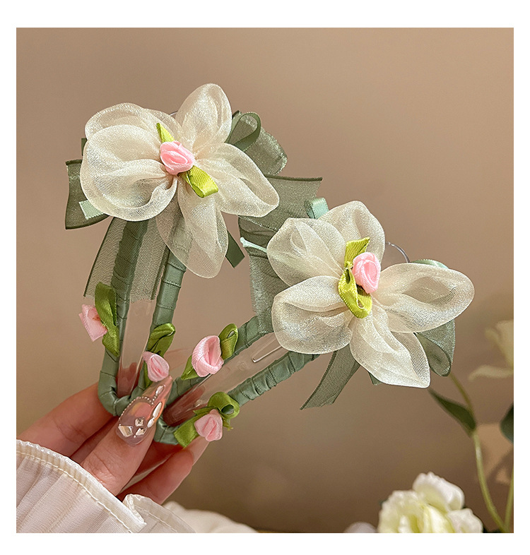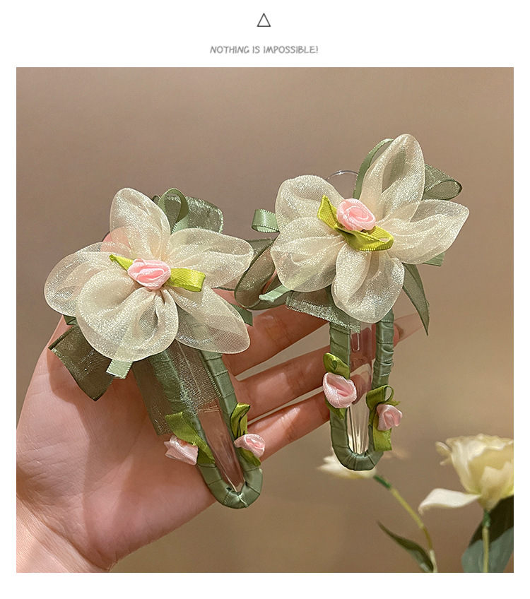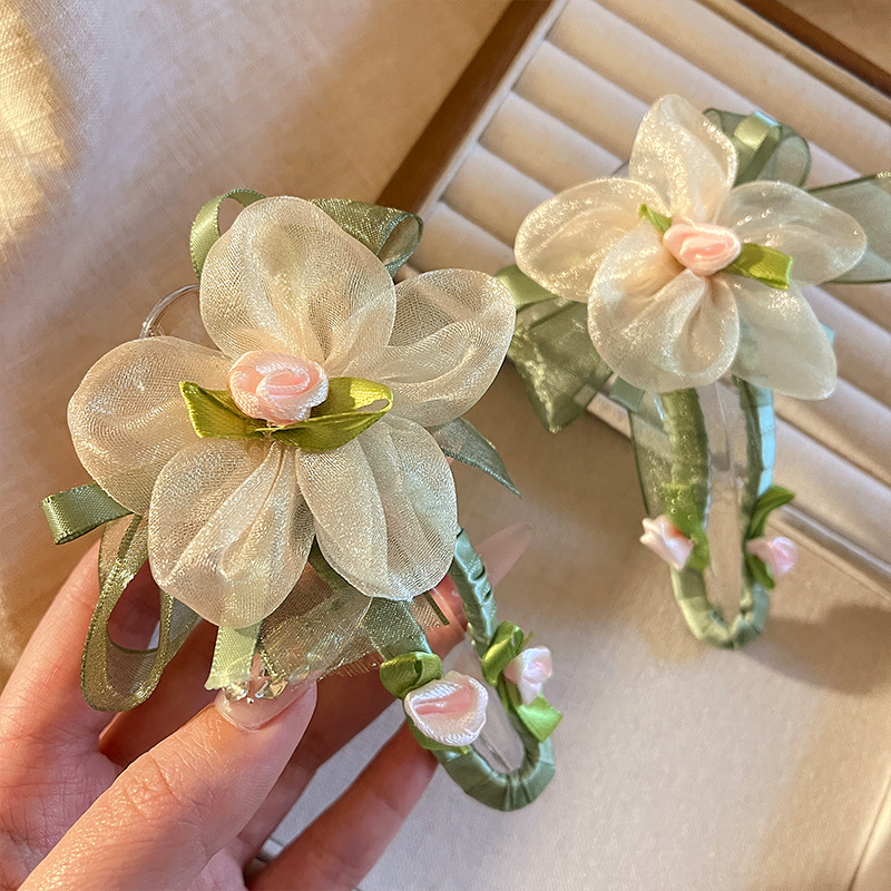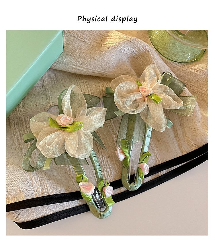 绿色网纱花朵鸭嘴夹发夹女夏季不硌头一字夹发卡后脑勺盘发抓夹子