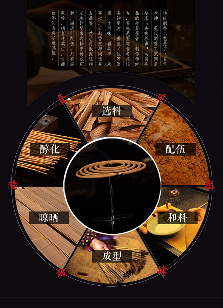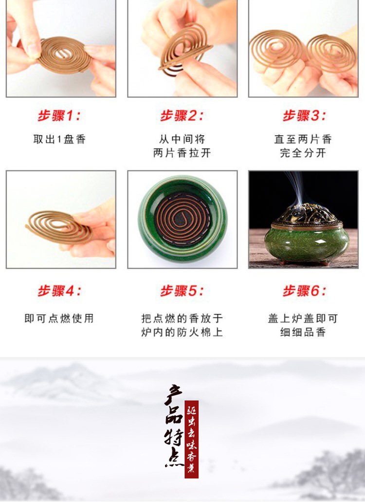 4小时120盘天然盘香檀香蚊香驱蚊香室内熏香厕所除臭香薰沉香炉