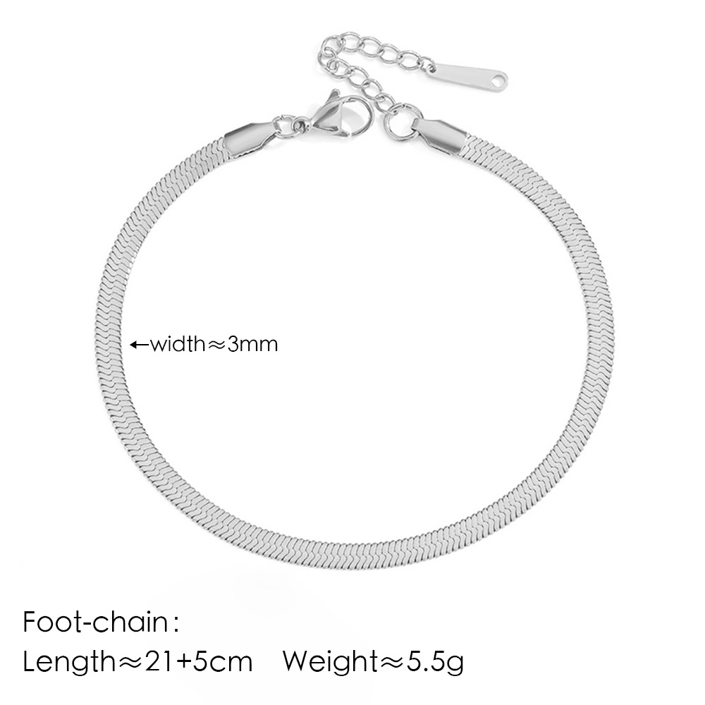 跨境出口手链脚链电镀 扁蛇刀片链脚绳不锈钢足链18K金钛钢批发女