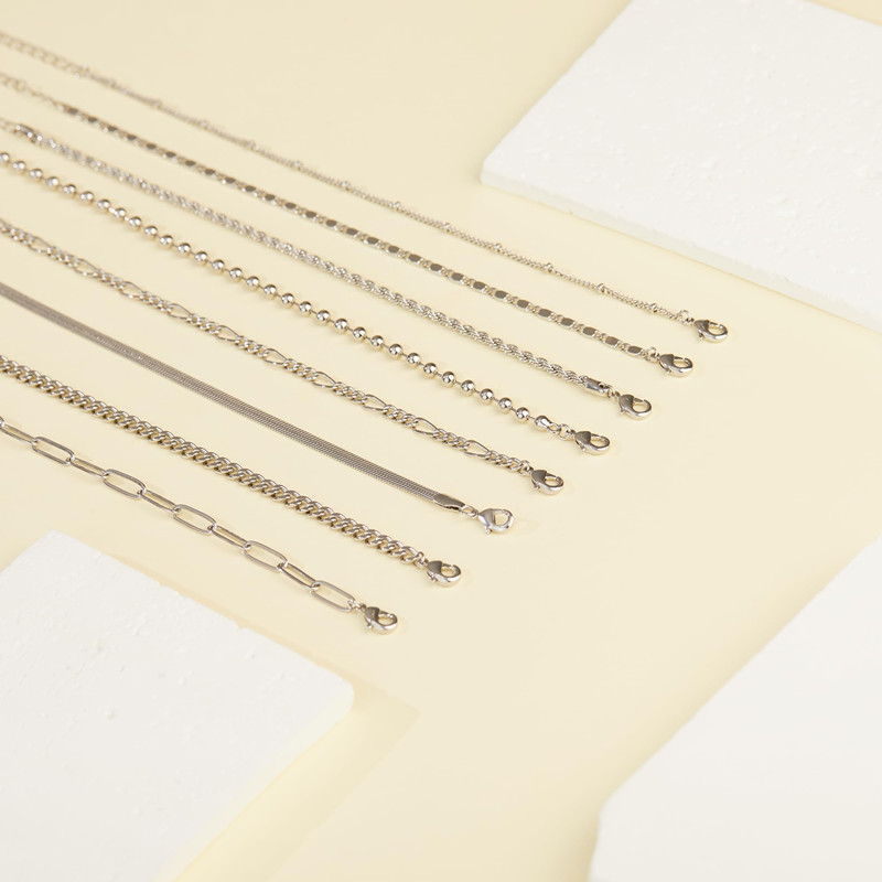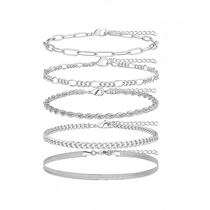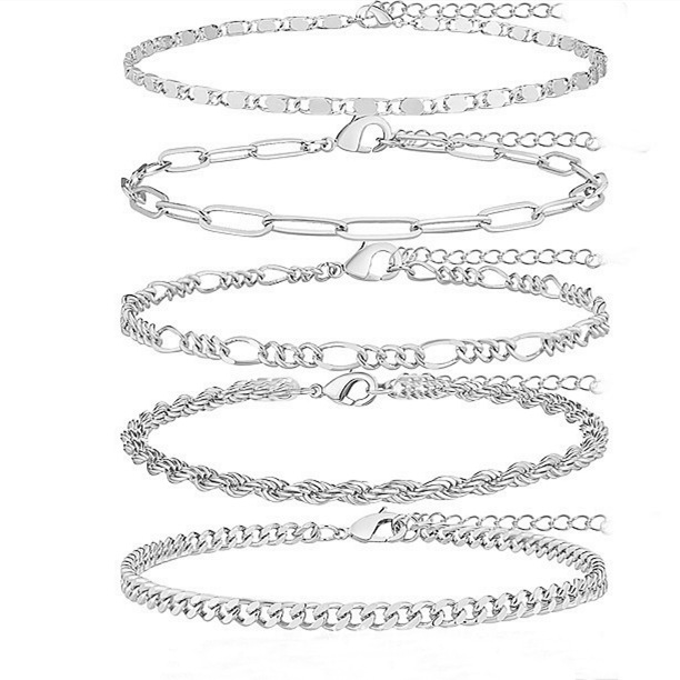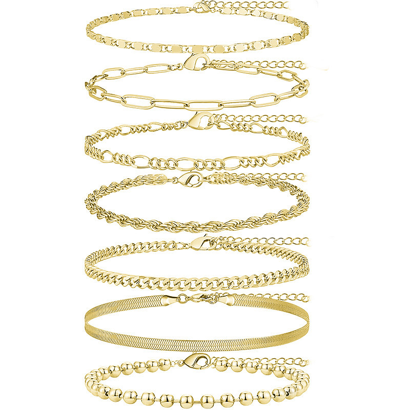 欧美跨境饰品时尚串珠蛇骨链古巴链套装脚链简约可调节脚饰七件套