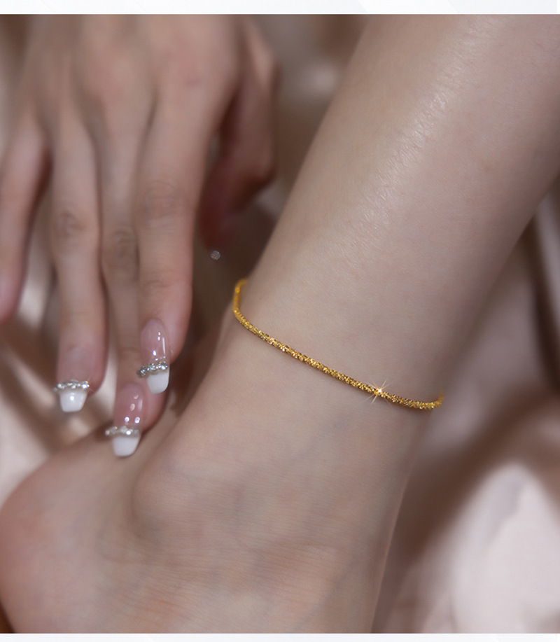 波光粼粼脚链2024年新款夏季气质轻奢小众设计感闪光满天星细素链