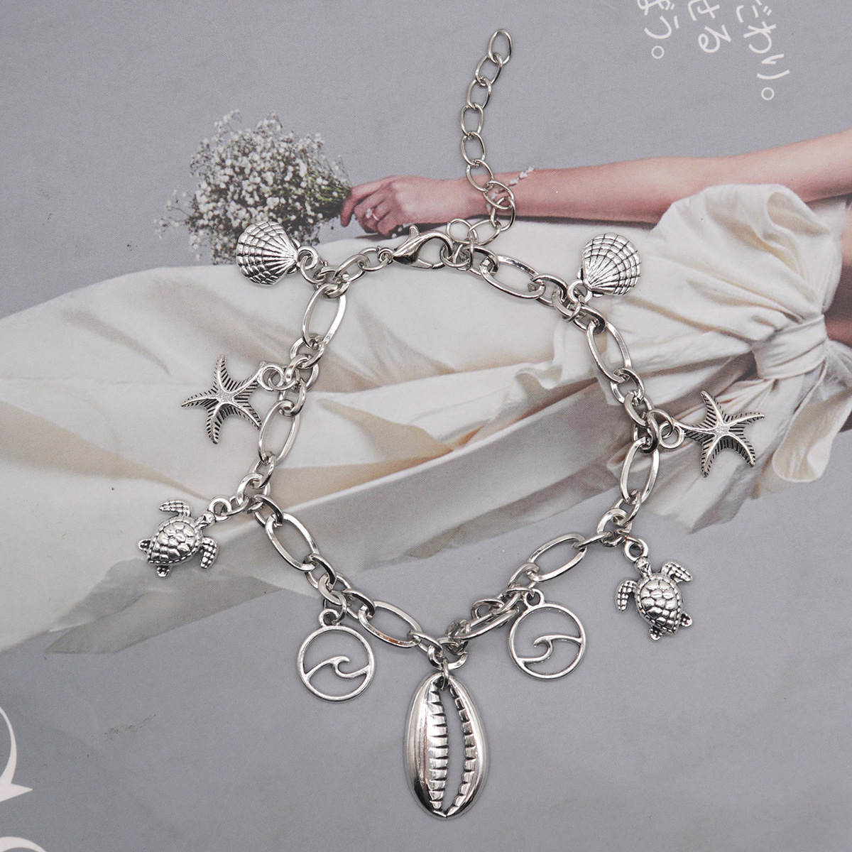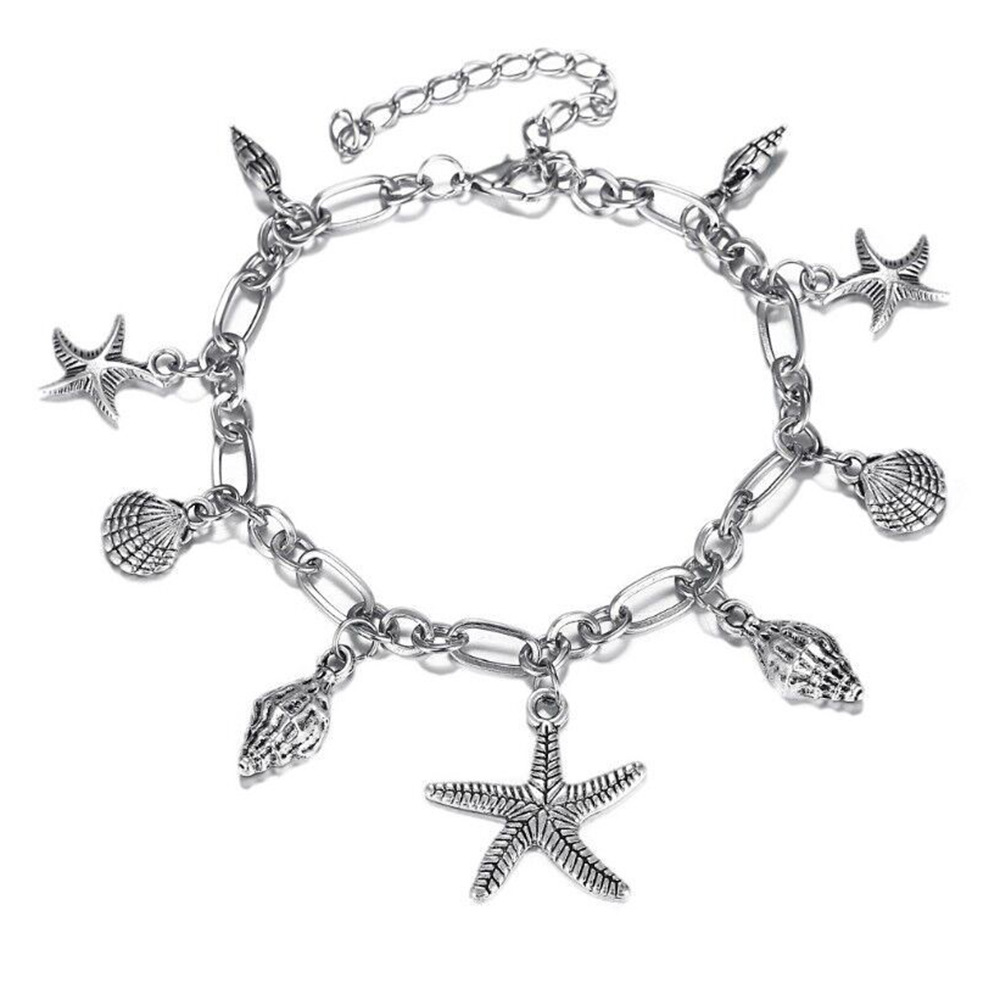 2022跨境复古百搭沙滩脚链海星贝壳海螺吊坠金属脚链女